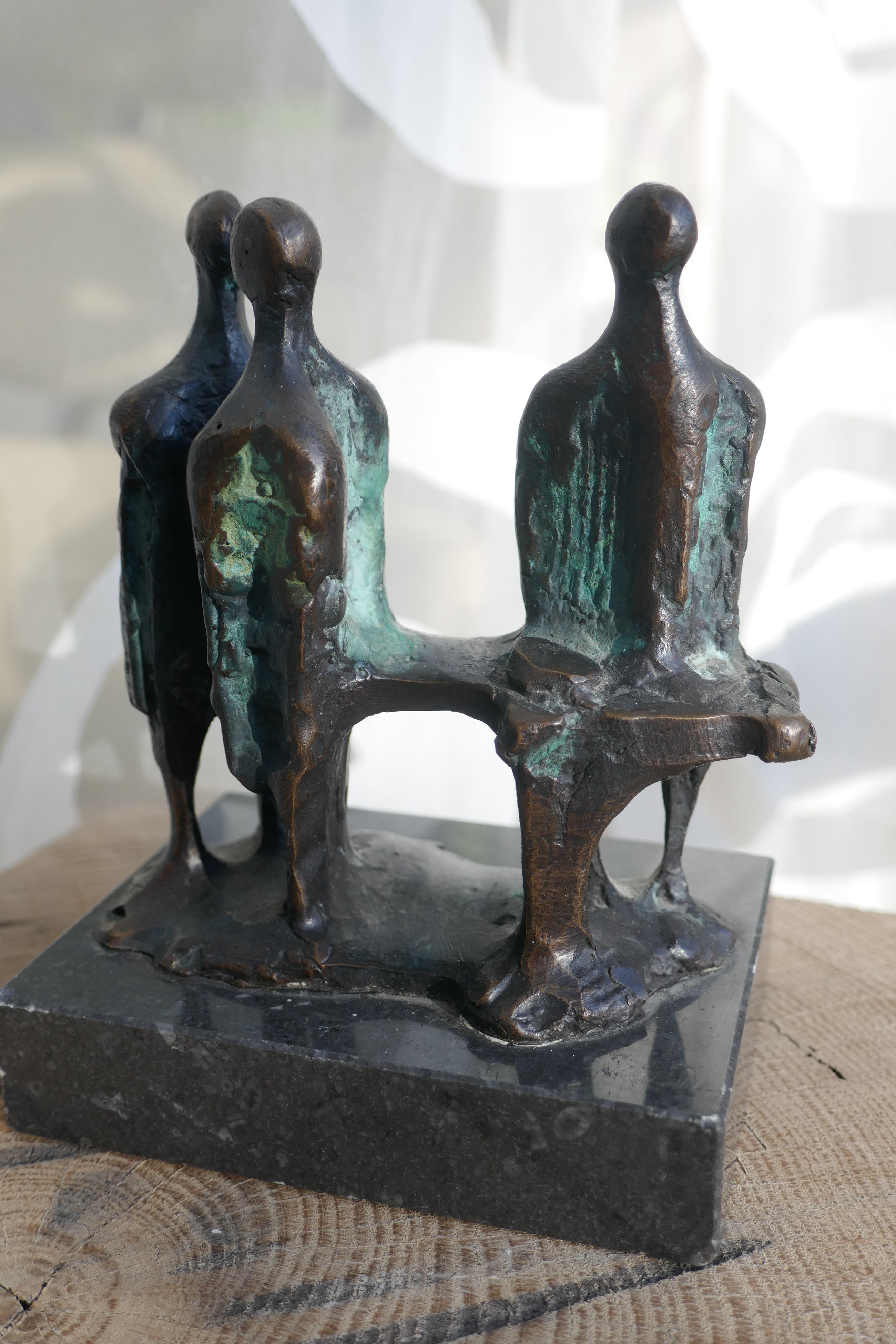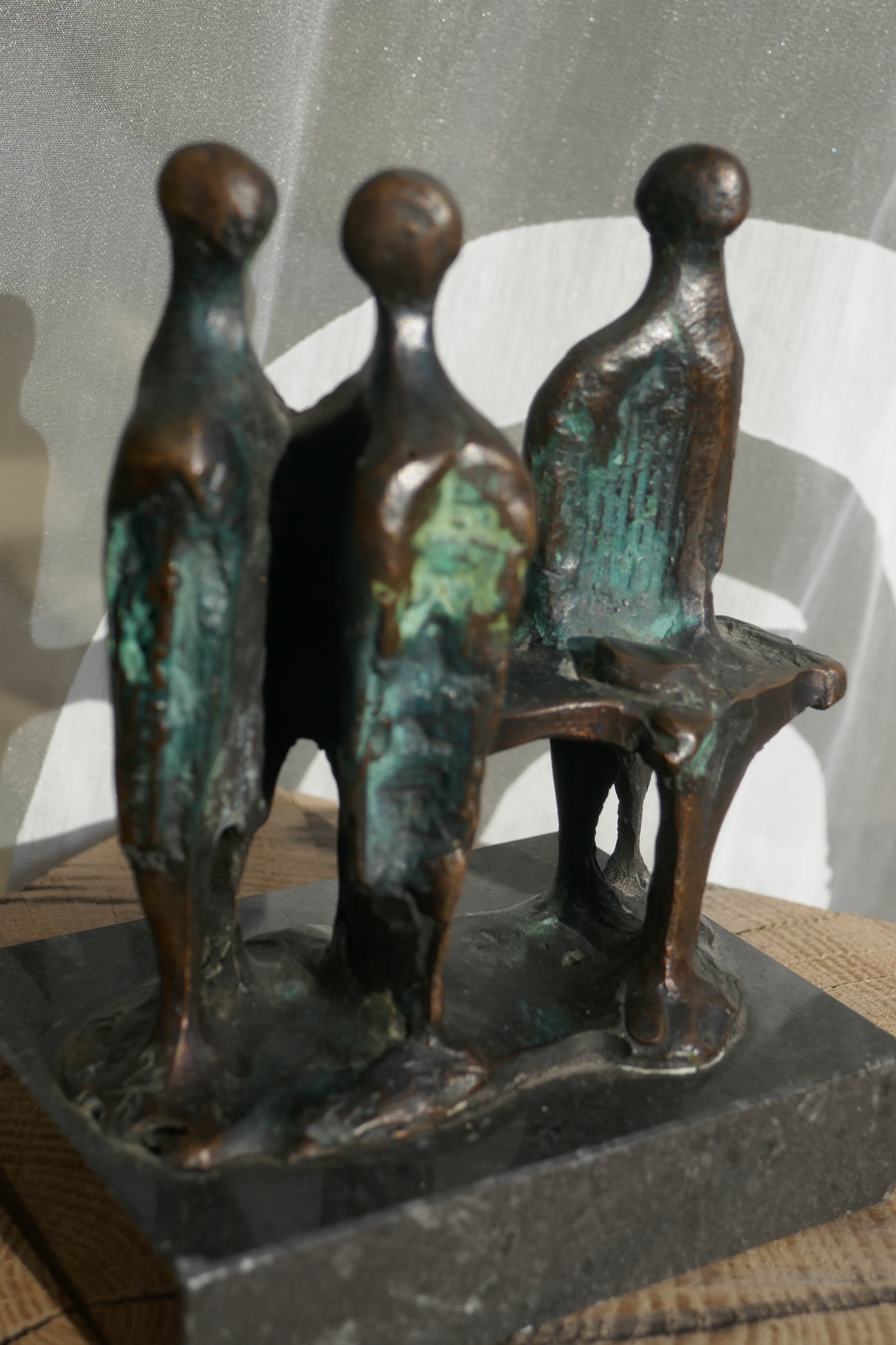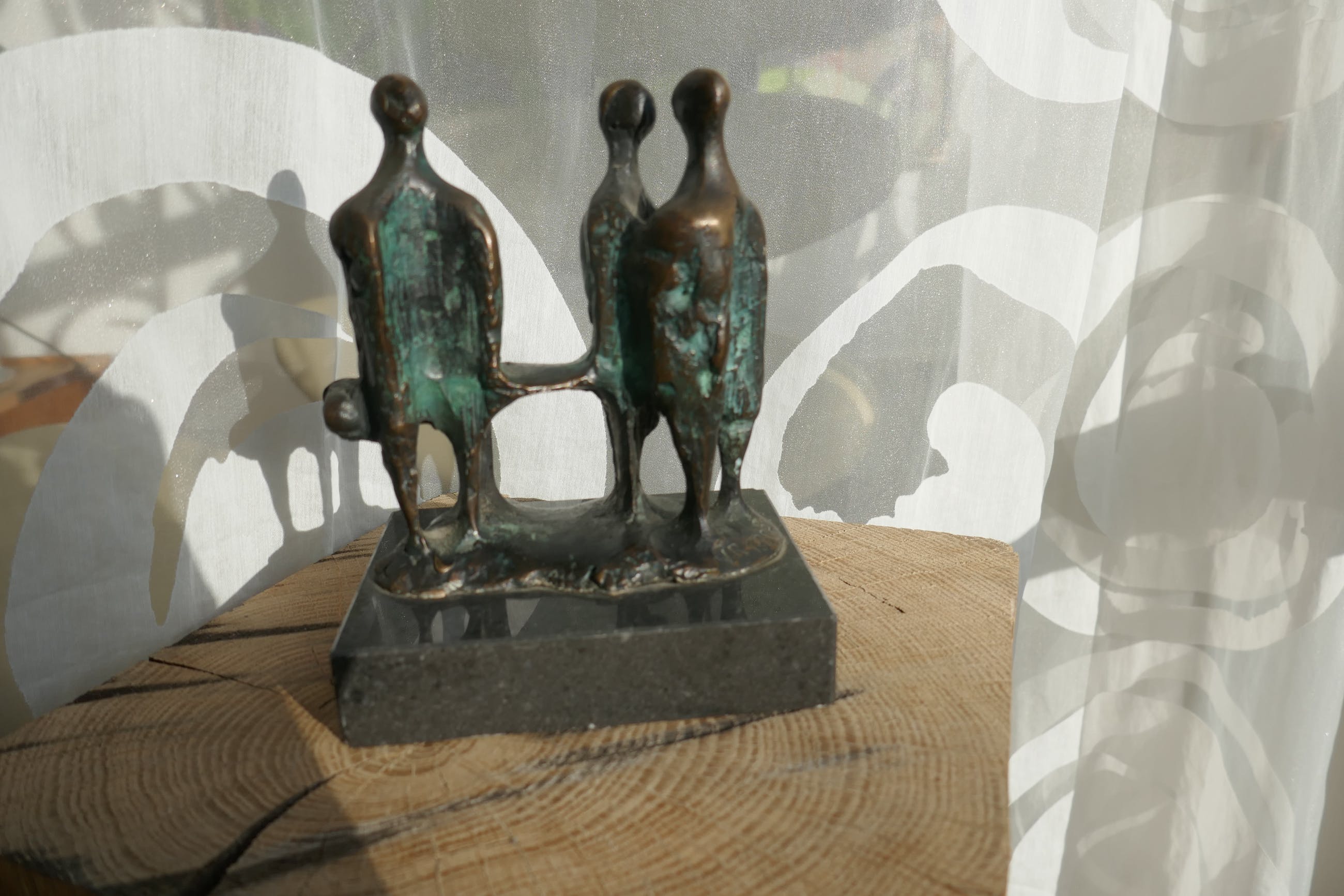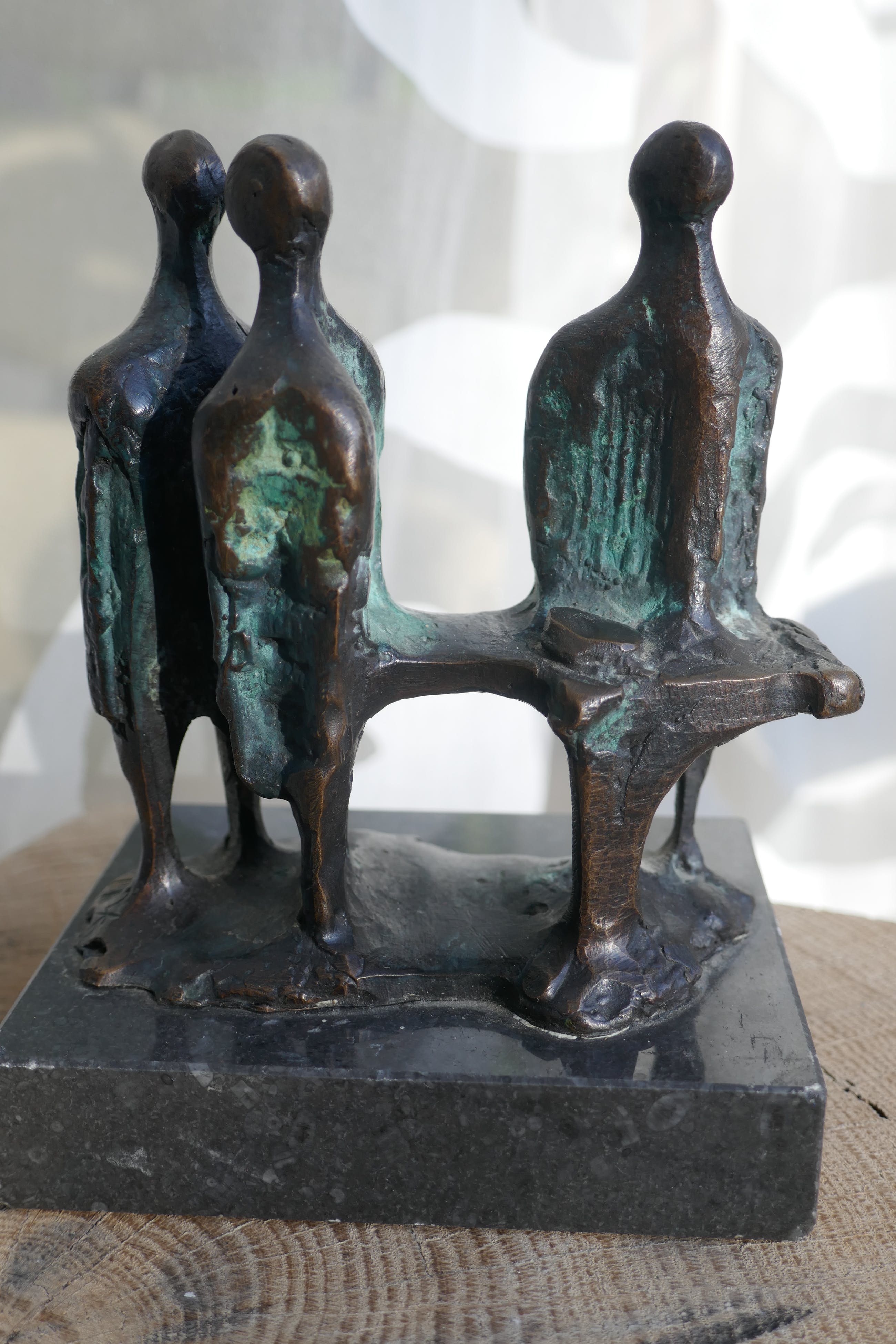 Fraai klein beeldje van bekende Limburgse kunstenaar. Het zwart marmeren voetstuk heeft lichte gebruiksschade. (Schilfertjes van hoekjes onderkant)