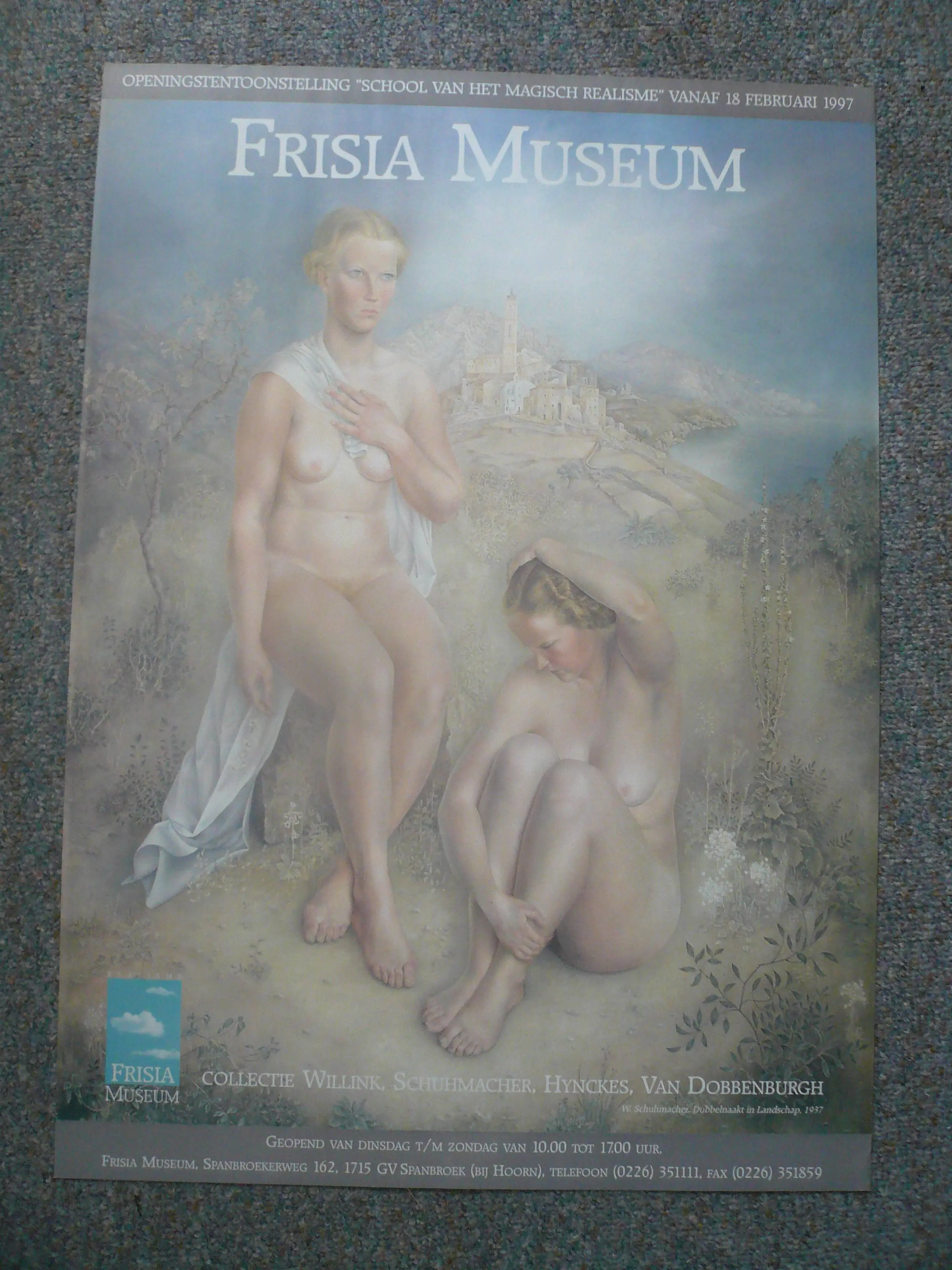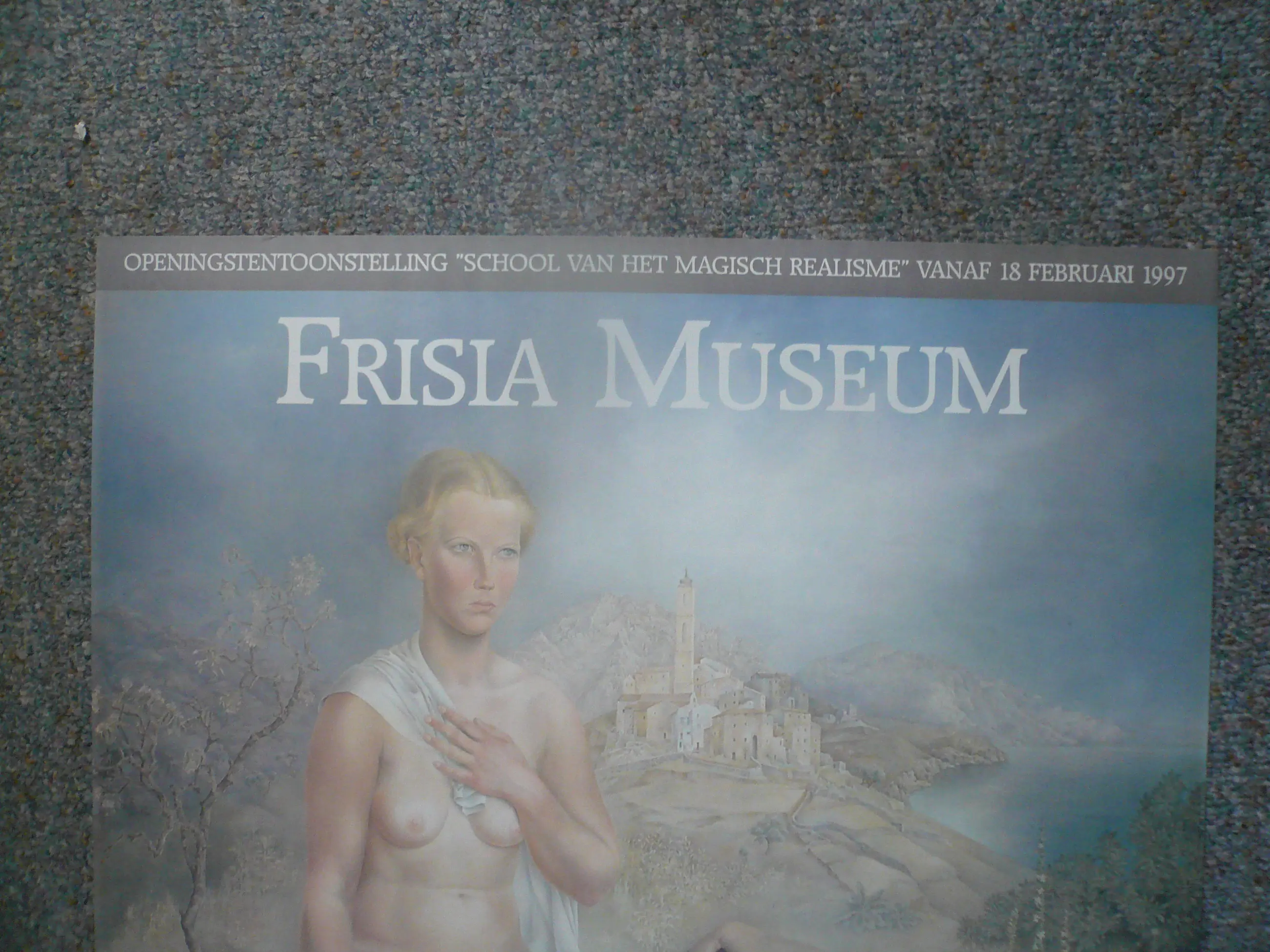 De affiche horend bij de openingstentoonstelling in het Frisia Museum van de heer Scheringa in Spanbroek. Het museum werd geopend in 1997 met de tentoonstelling: " School van het Magisch Realisme " waarvoor dus deze affiche werd gemaakt.