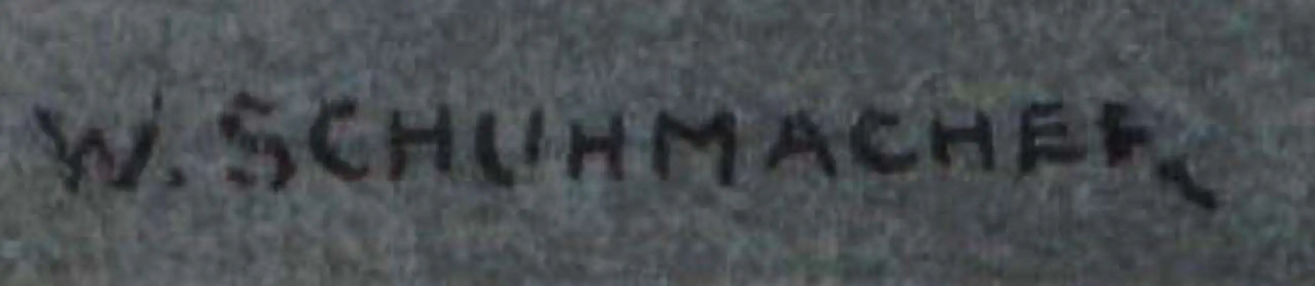 Veel van zijn motieven vond Schumacher in het Middellandse Zeegebied. Jarenlang reisde hij naar en in Italië en Spanje. Zijn schilderijen zijn zorgvuldig geschilderd, zonder een zichtbare toets. De vormen zijn strak en nauwkeurig weergegeven. Hij wordt vaak in verband gebracht met de Nieuwe zakelijkheid. Hij is verwant aan de Bergense School.