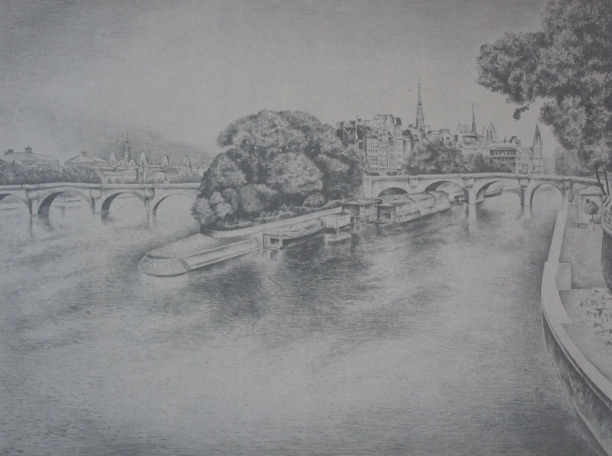 Kleurenlitho van Wim Schuhmacher uit de serie schildersprenten uit 1947. Titel: Ile de la Cite. Afmetingen blad: H48 x b63cm. Afmetingen voorstelling: H44 x b59cm. Het werk is linksonder, in de druk, gesigneerd. De authenticiteit van het aangeboden werk wordt volledig gegarandeerd. Een certificaat van echtheid kan, op aanvraag, worden gemaild.