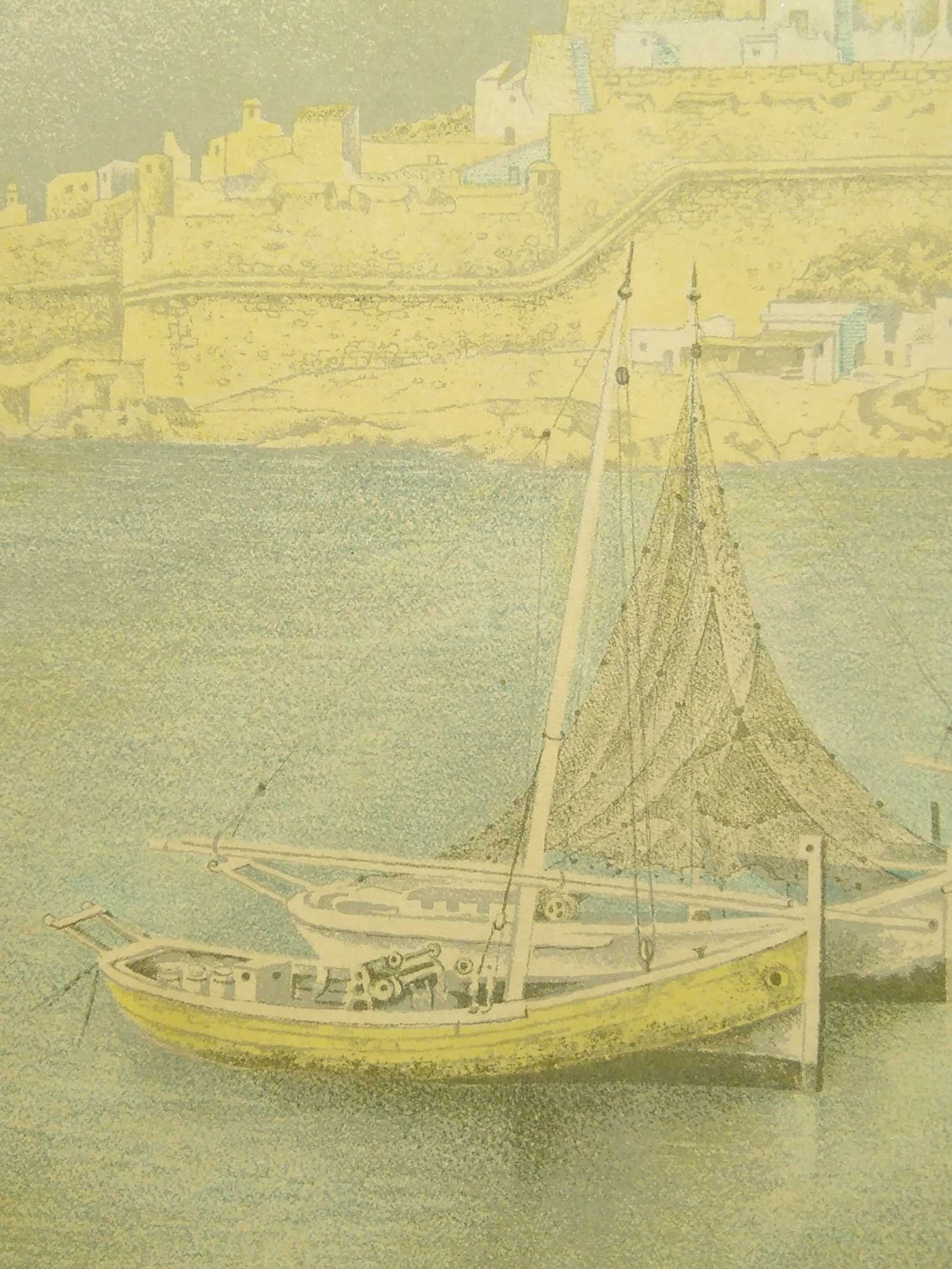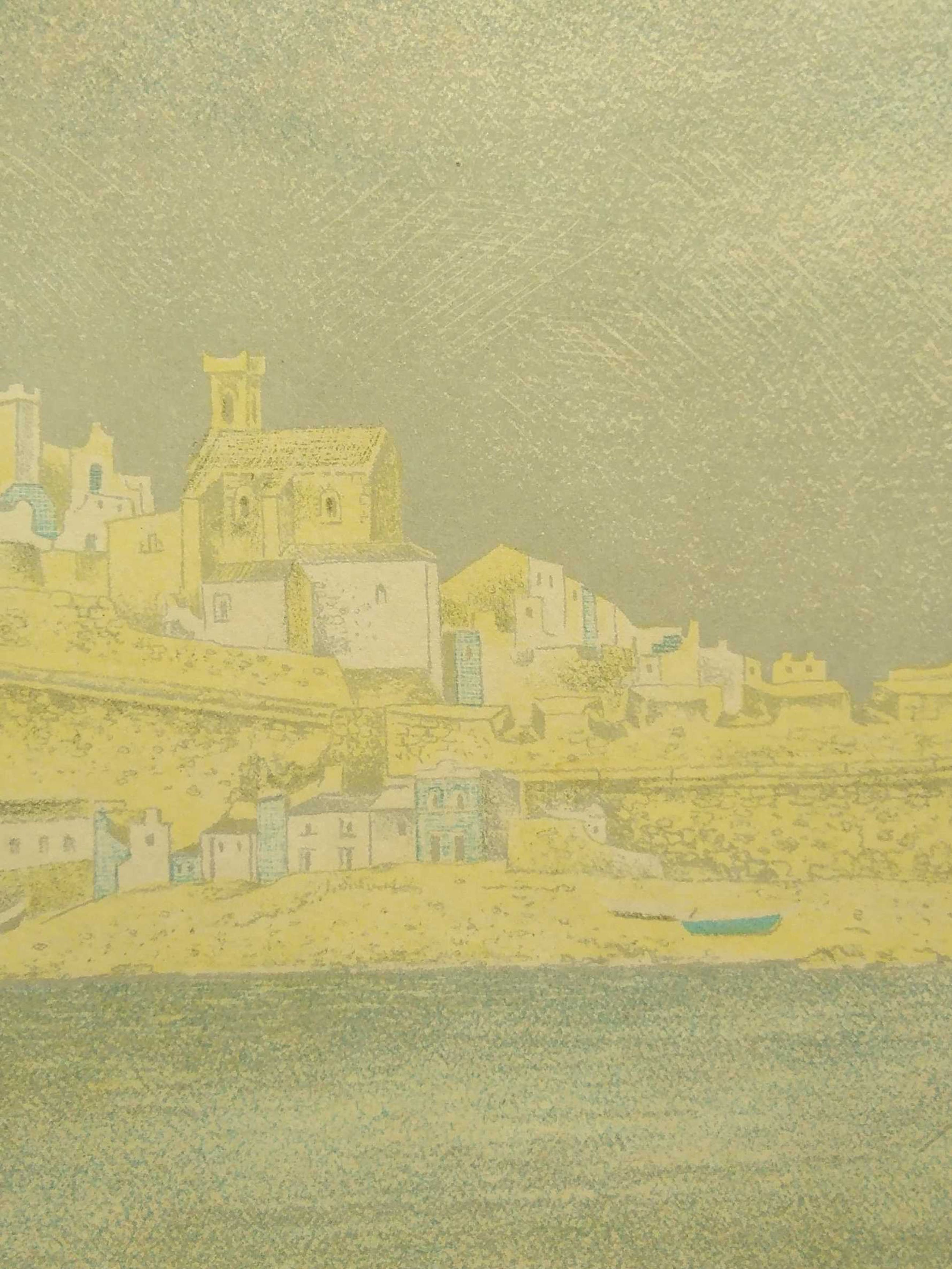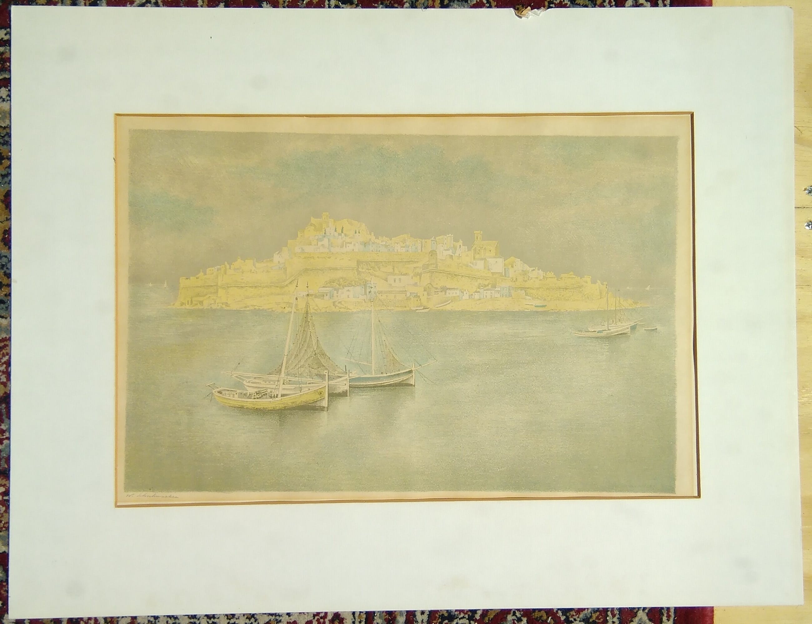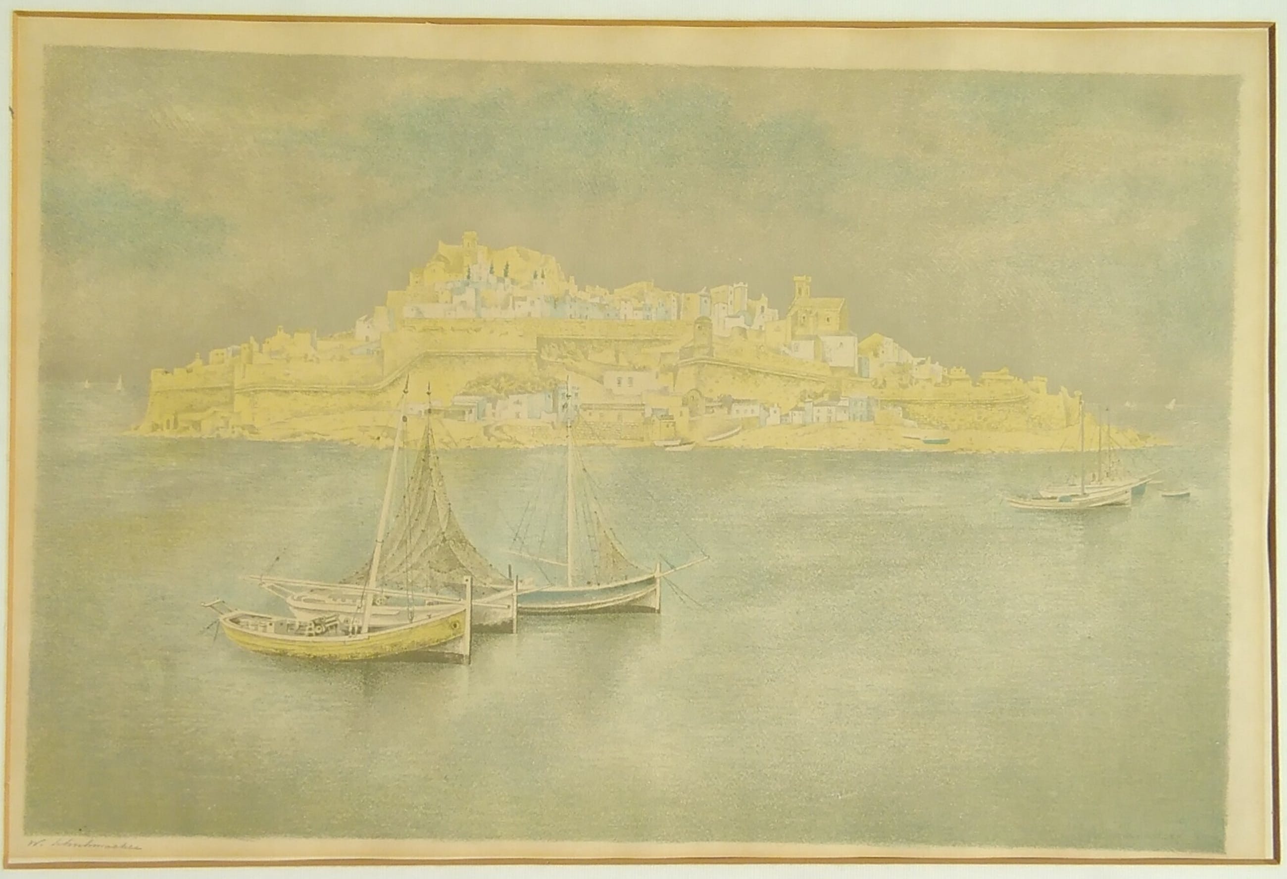 Wim Schuhmacher Lithografie Peniscola. 1947.Beeldformaat 30 x 45 cm. Bevestigd op passe-partout.