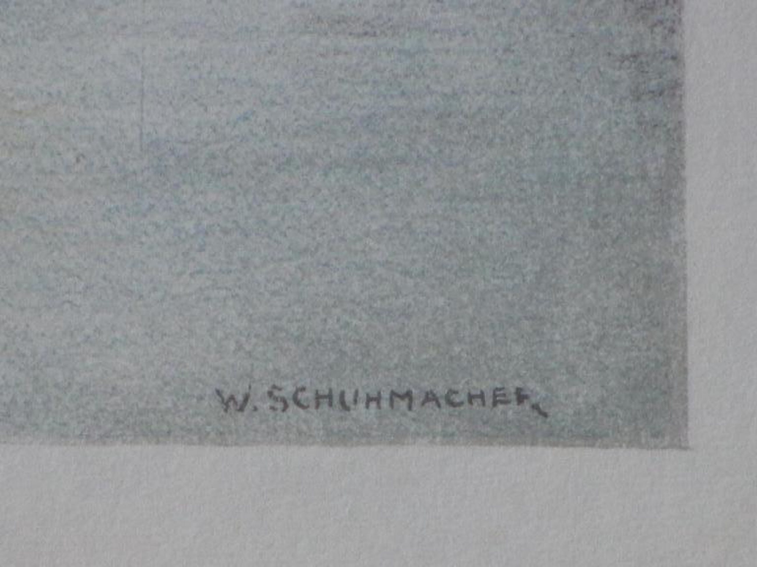 Gesigneerd in de druk r.o. 'W.Schuhmacher', gedateerd in potlood l.o. '1947'
