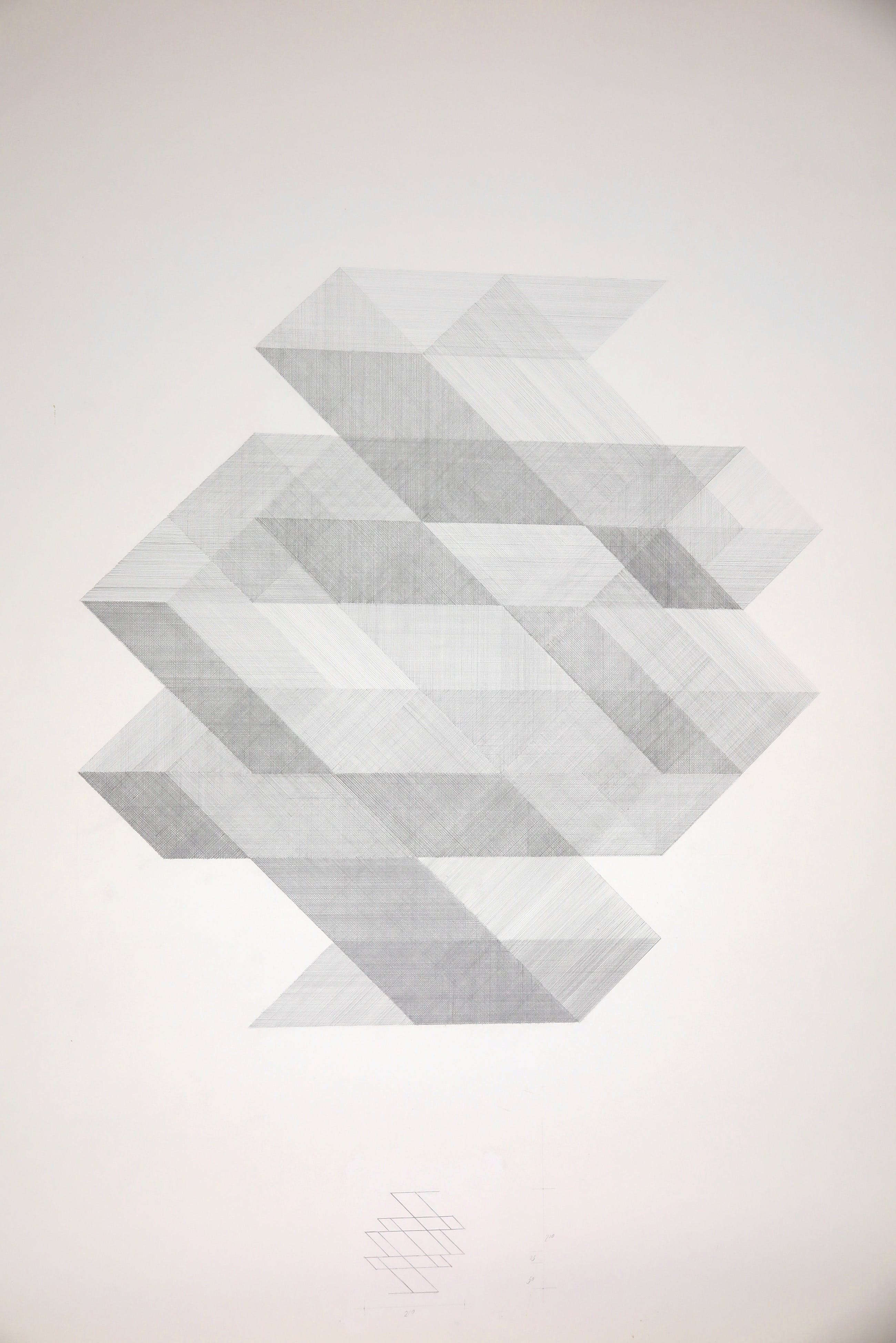 Zeer fijne lijnen tekeningen met potlood op papier.