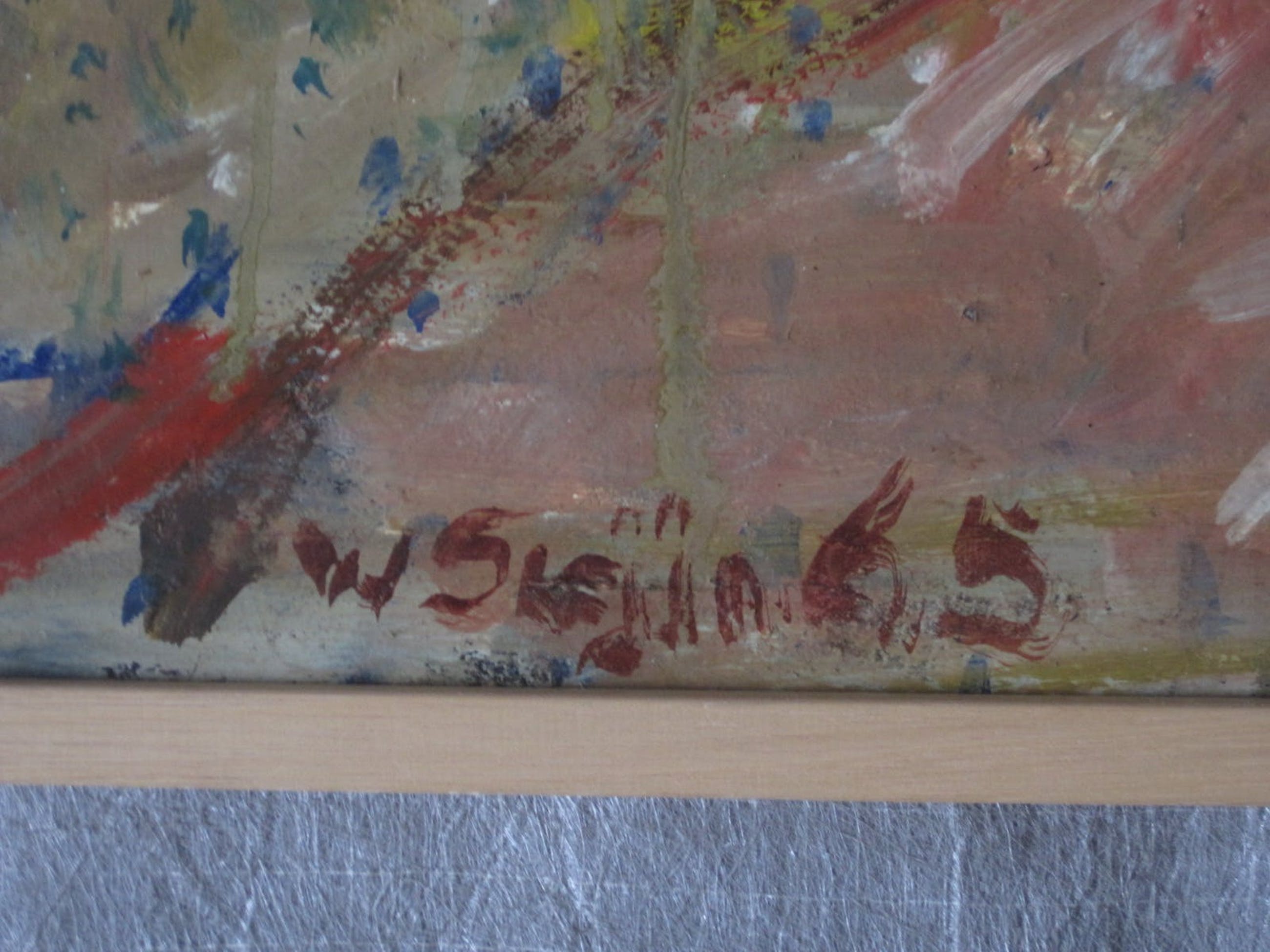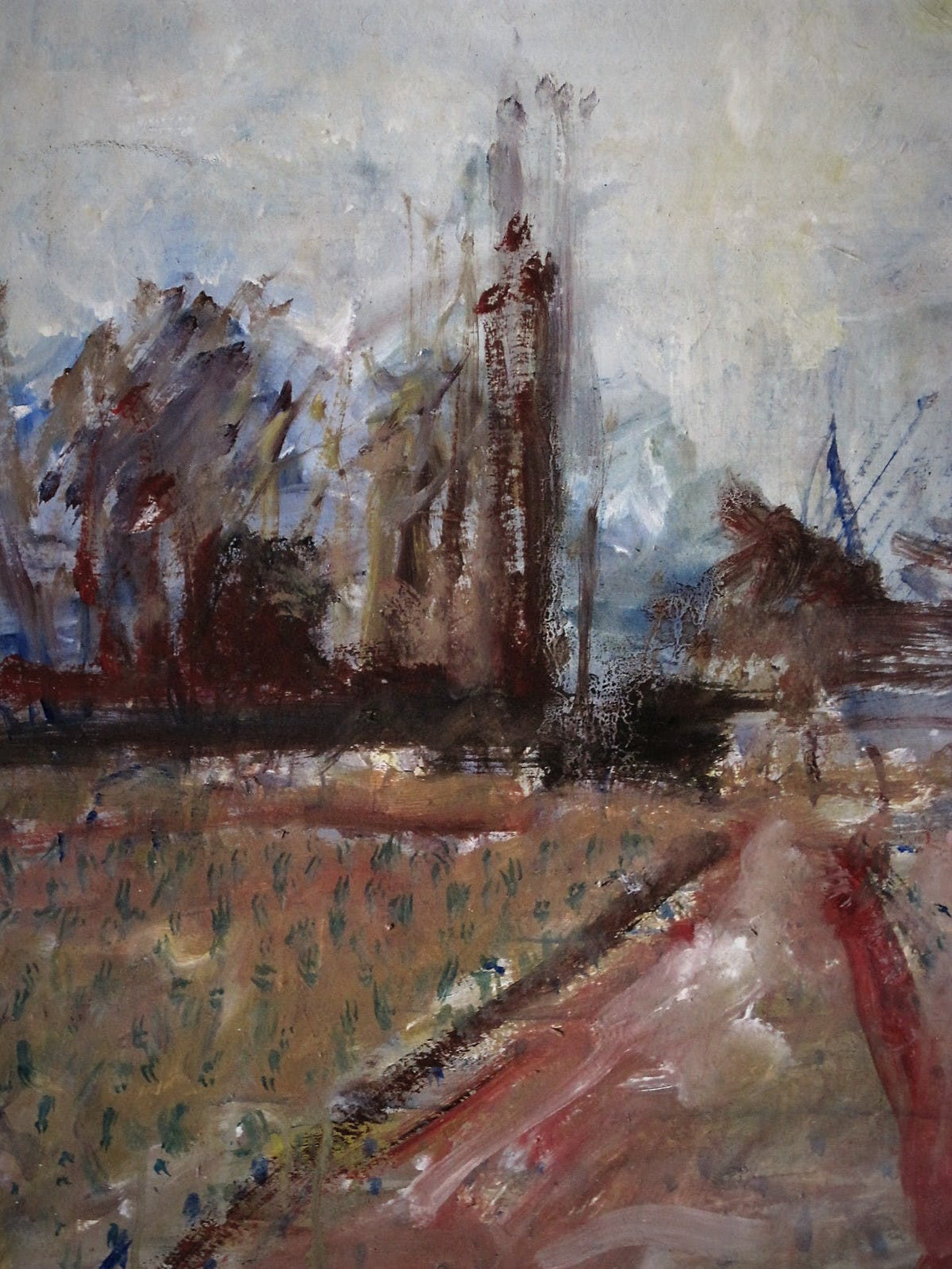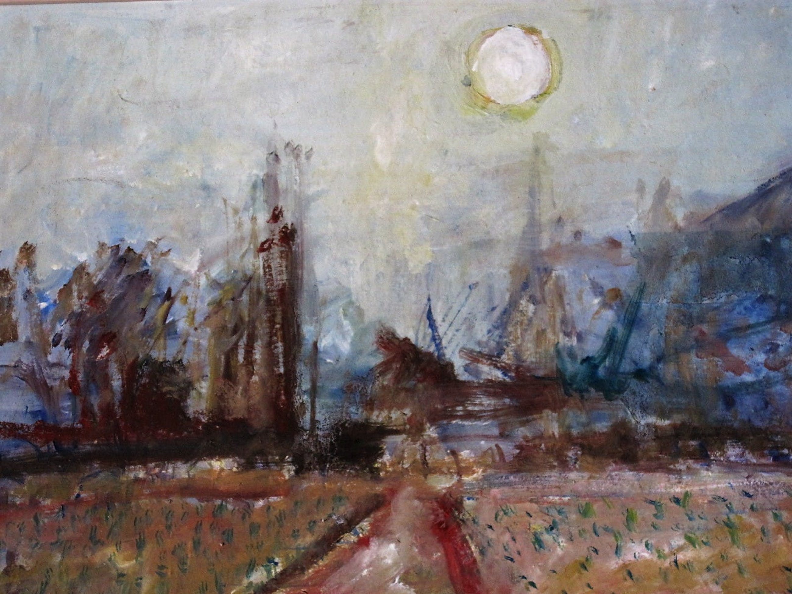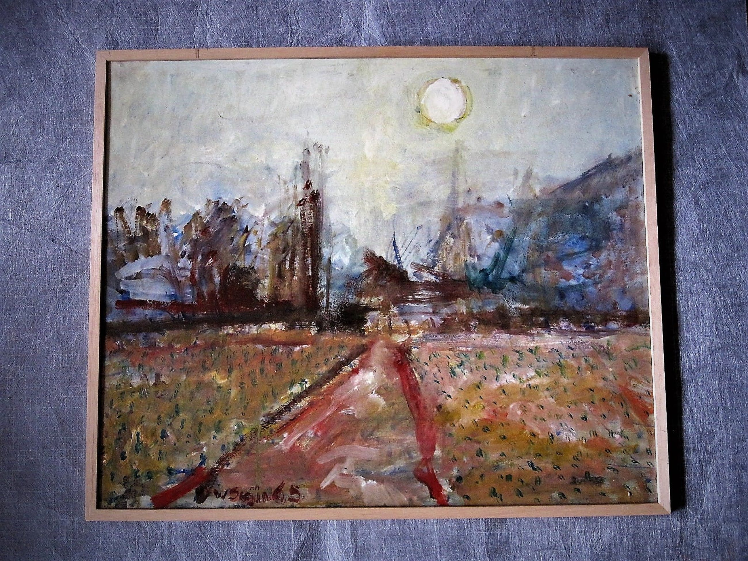 Fraai impressionistisch olieverfschilderij "treinspoor naar Hoogovens bij zomeravond", geschilderd omstreeks 1960 door de Haarlemse impressionist Wim Steyn.