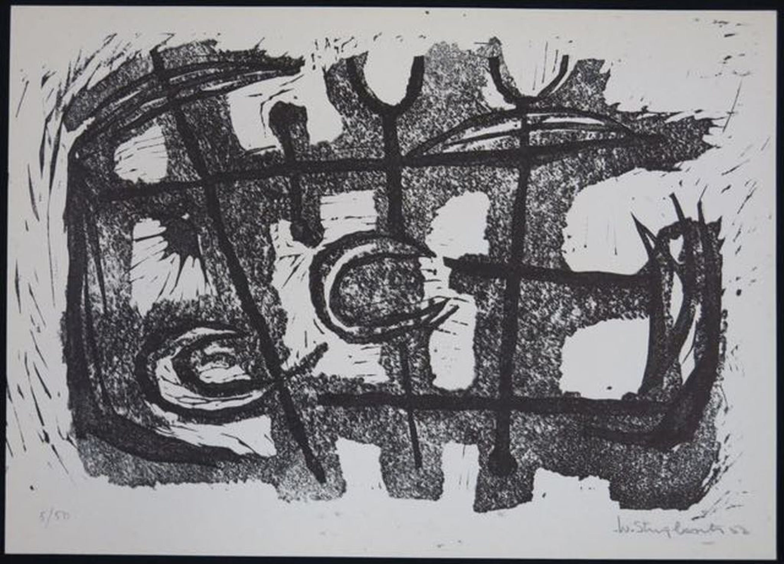 Kleine litho, uitgegeven door kunstenaarsgroep Creatie in 1952. Creatie was een Vereniging tot bevordering van absolute kunst, opgericht in 1950. Actieve leden van deze groep waren o.a. Eugéne Brands, Armando, Anton Rooskens, Wim Strijbosch en Herman van der Heide.