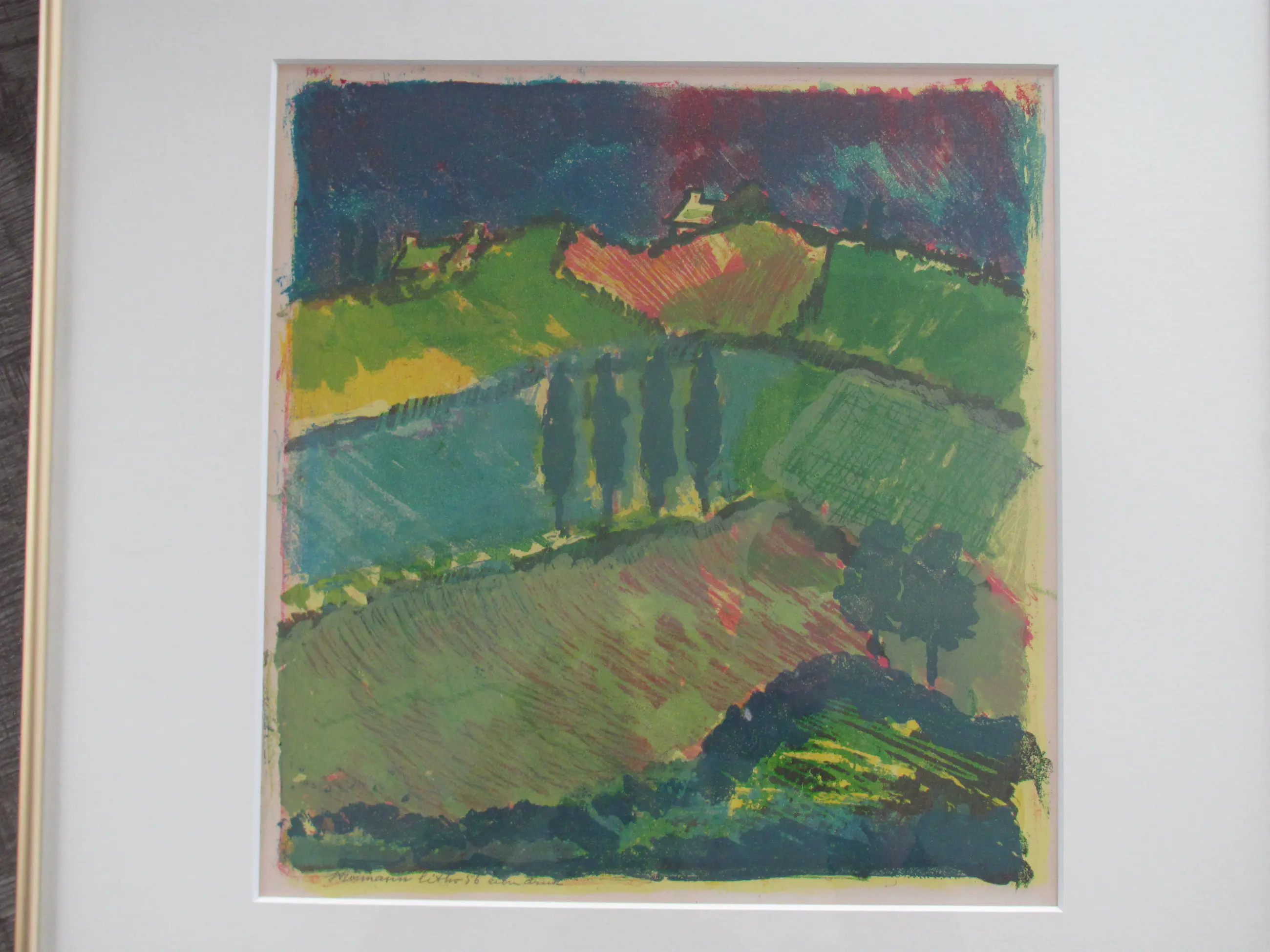 Litho van Wim Strörmann (1899-1961). Linksonder met potlood gesigneerd en gedateerd ('56). Aan achterzijde voorzien van sticker en aantekeningen van Kunsthandel van Zanten, Rotterdam.