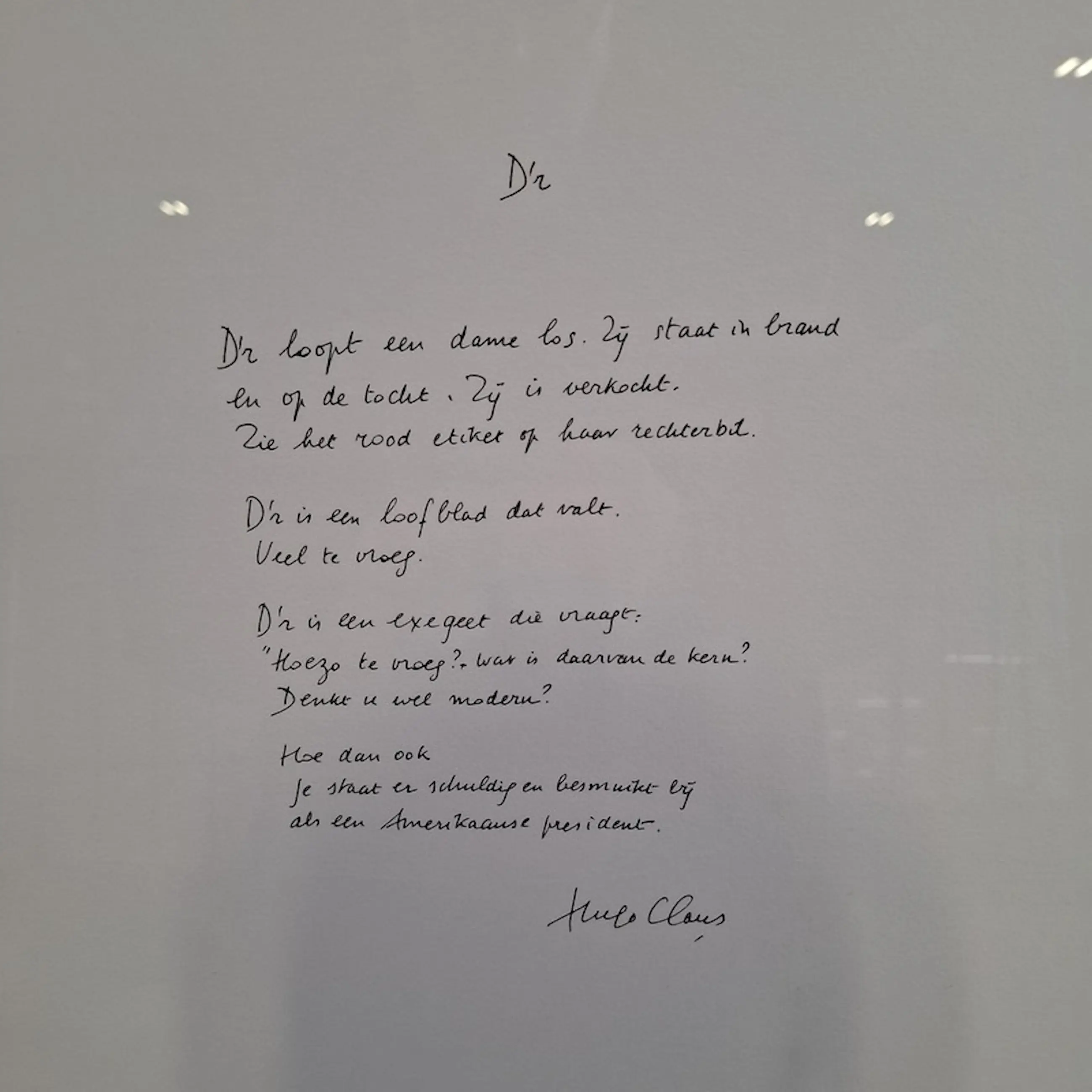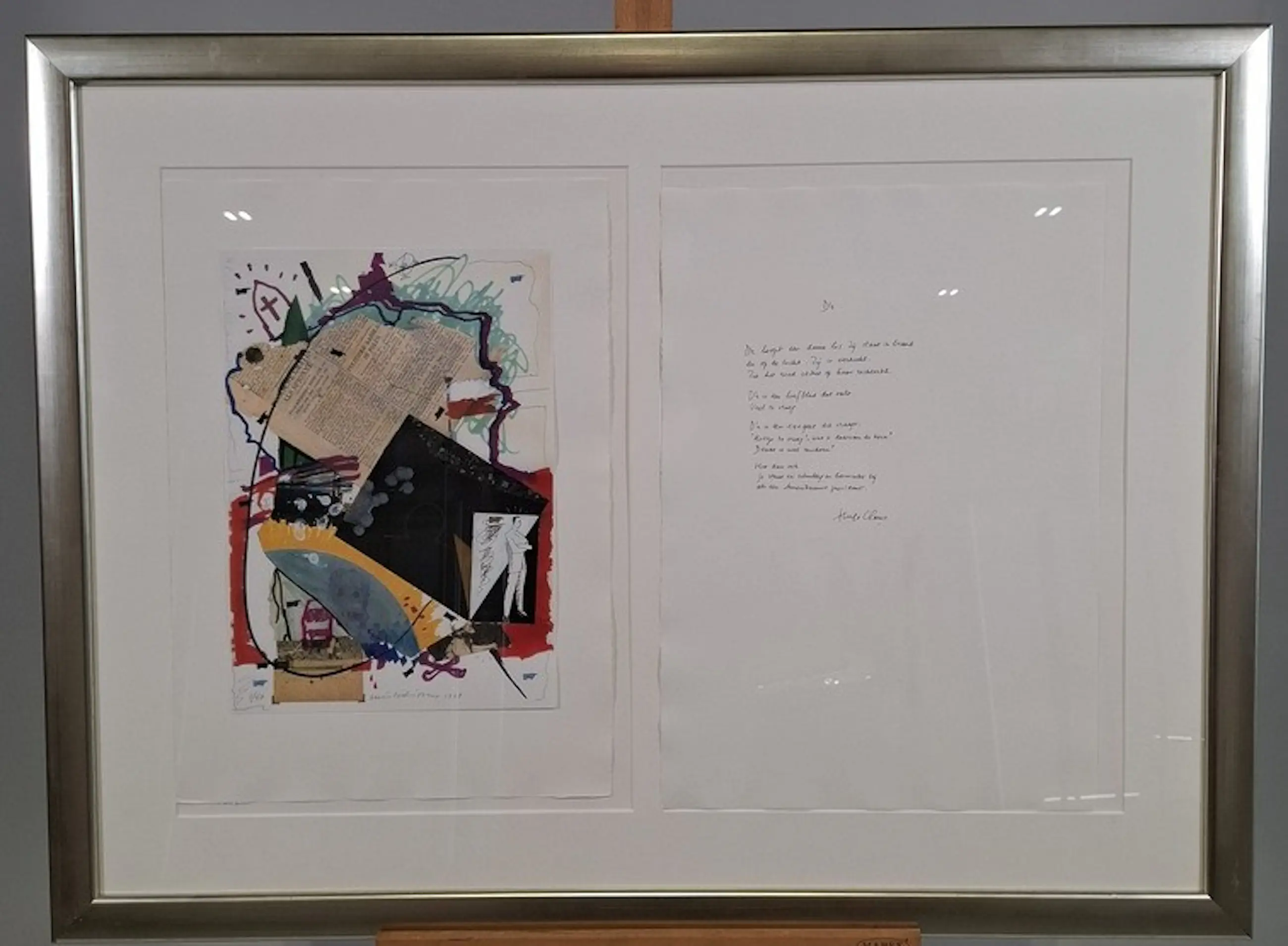 De litho en het gedicht zijn handgesigneerd door Schippers en Claus en samen ingelijst. De lijst heeft de afmetingen 108 x 1,5 x 82 cm. (l x b x h). De litho van Wim T. Schippers is 43 x 30 cm. groot en bevestigd op een vel geschept papier van 40 x 56 cm. Dit is ook de afmeting van het gedicht van Hugo Claus op geschept papier. De litho is iets verschoven.