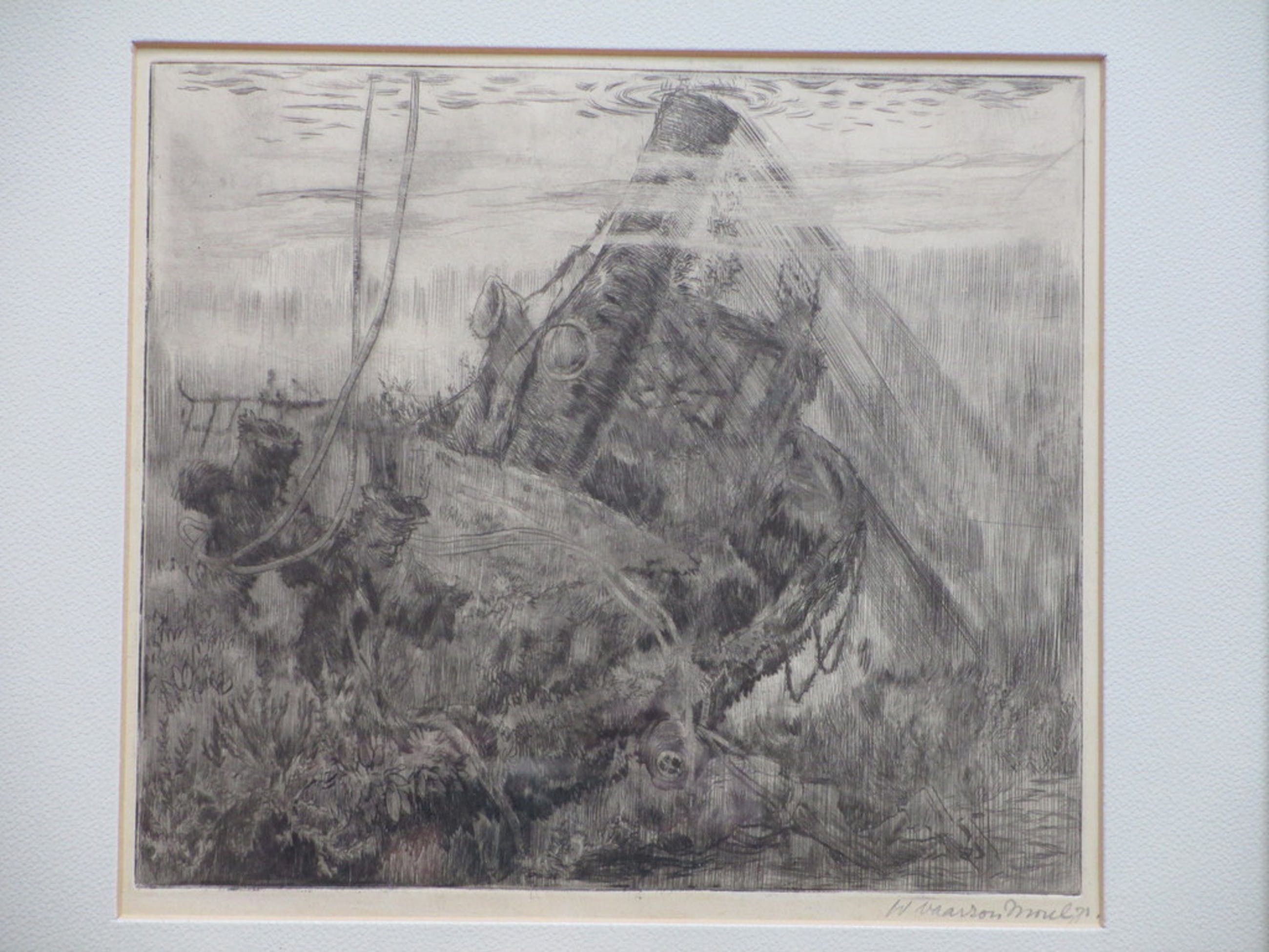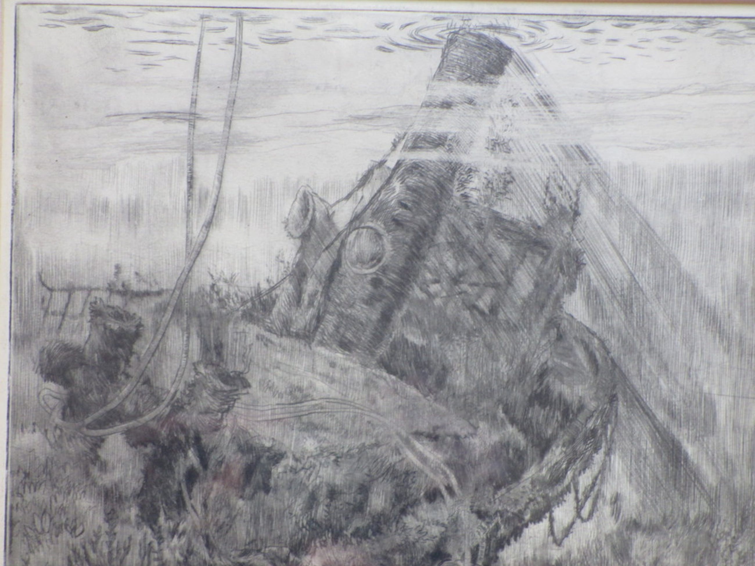 Getiteld en gedateerd op achterzijde 'Duiker bij een gezonken sleepboot' en 'voorjaar 1955'