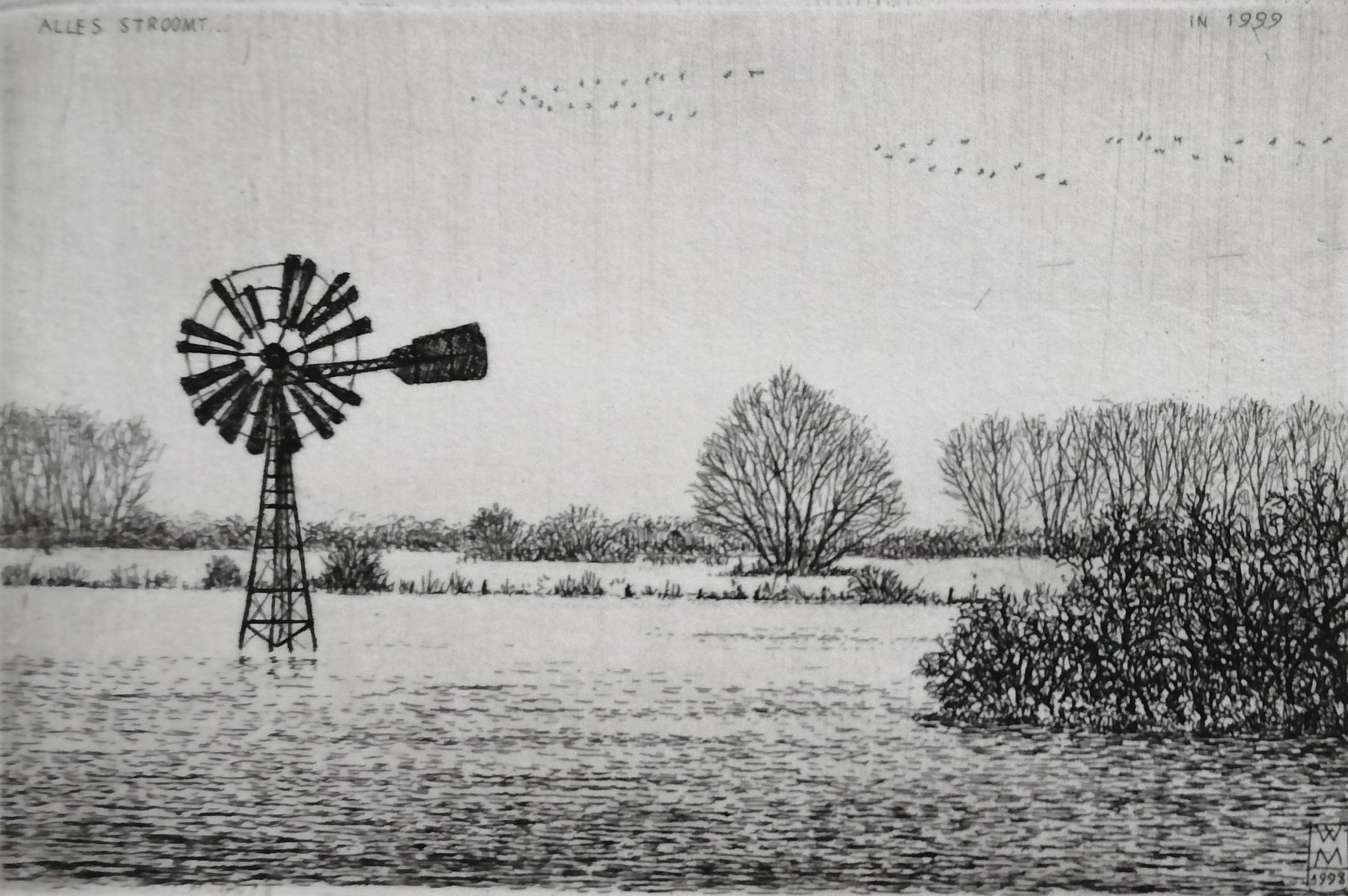 4. Windmolen Beeldmaat 7x10,5 cm. Bladmaat 14x20 cm. 1998