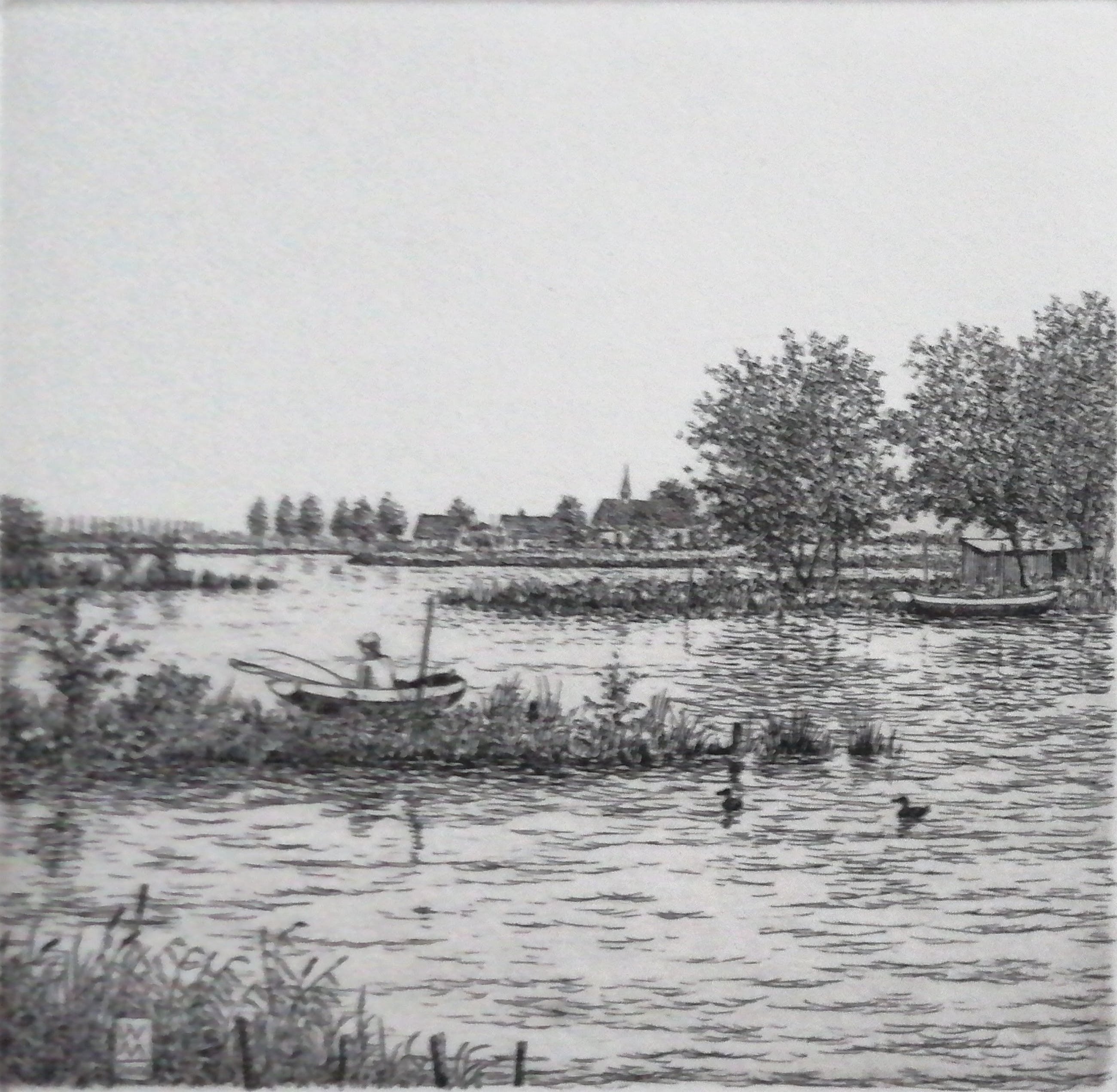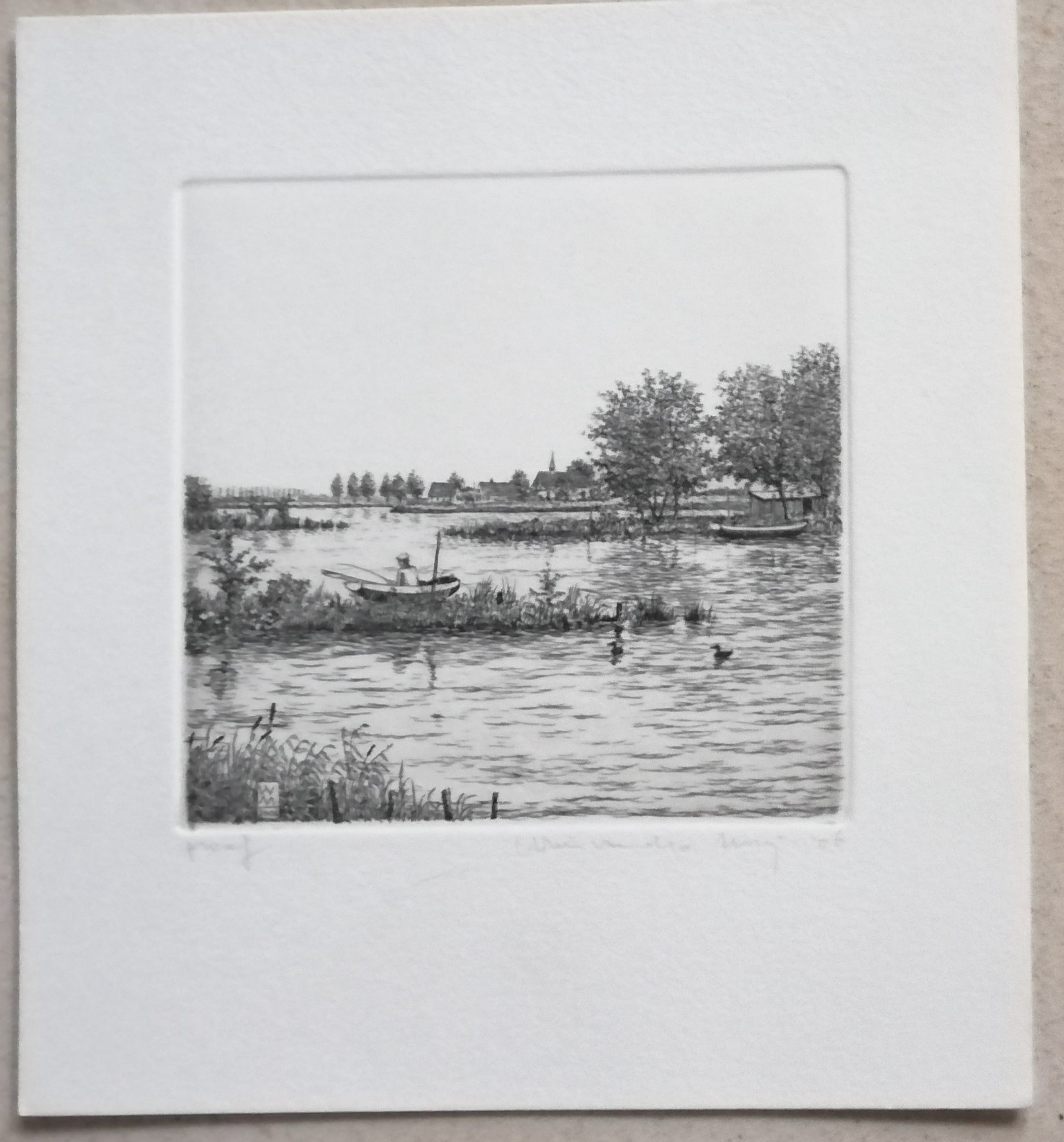 3. Visser in roeiboot Beeldmaat 11x11 cm. Bladmaat 18,5x17 cm. 2006