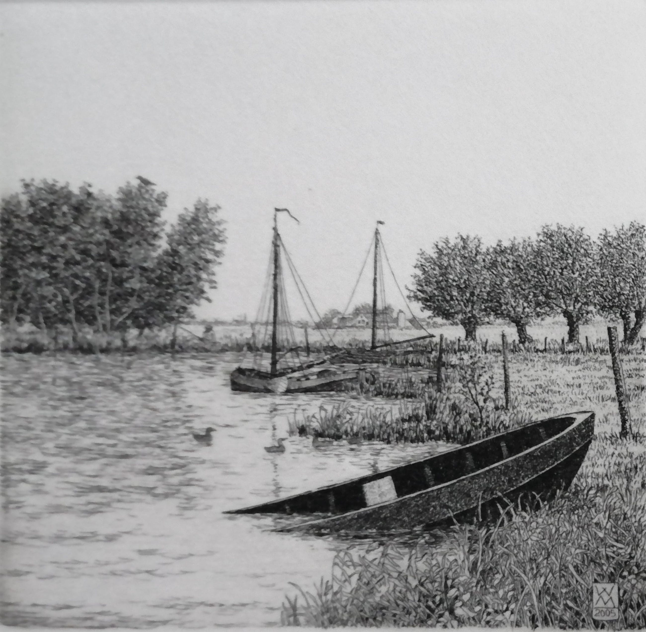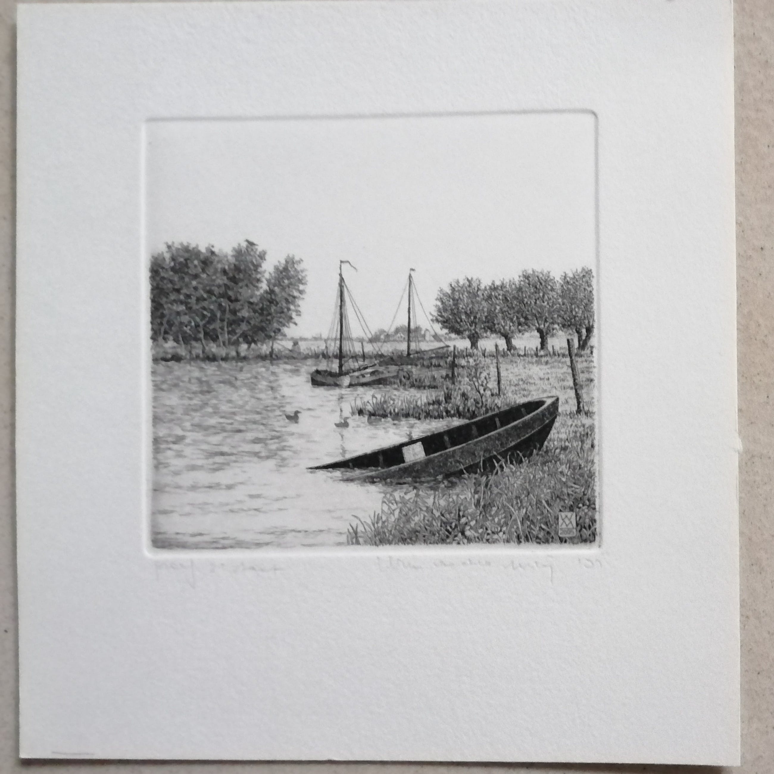 2. Plasgezicht met boten Beeldmaat 11x11 cm. Bladmaat 19x18 cm. 2005