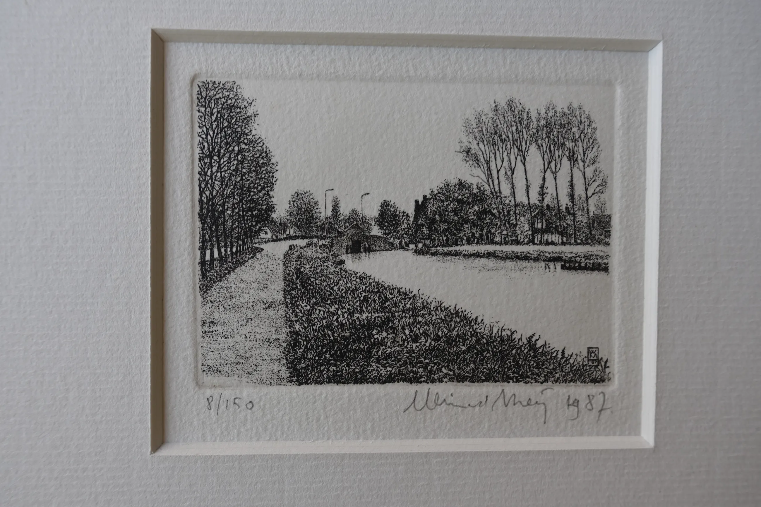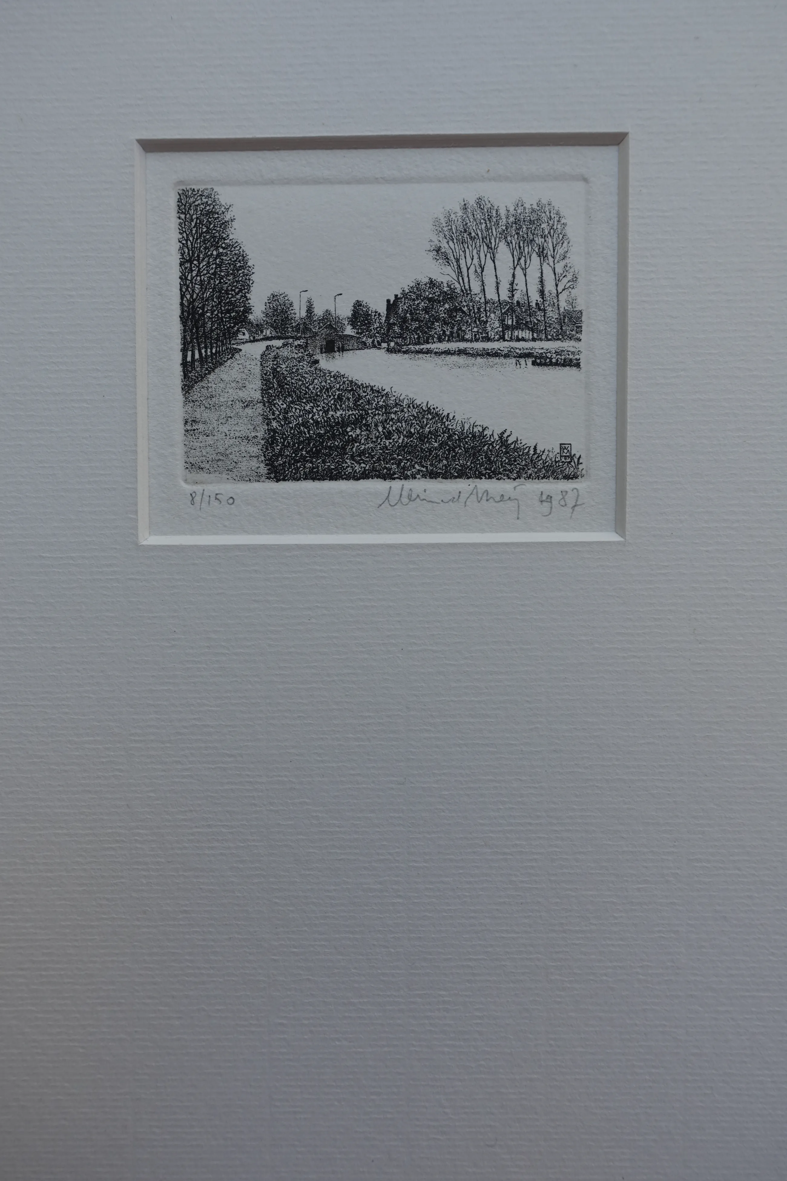 Sfeervolle lanschappelijke ets van Wim van der Meij. Voorzien van passepartout en in nieuwstaat. Met potlood gesigneerd en oplage-vermelding. Verzending gratis.