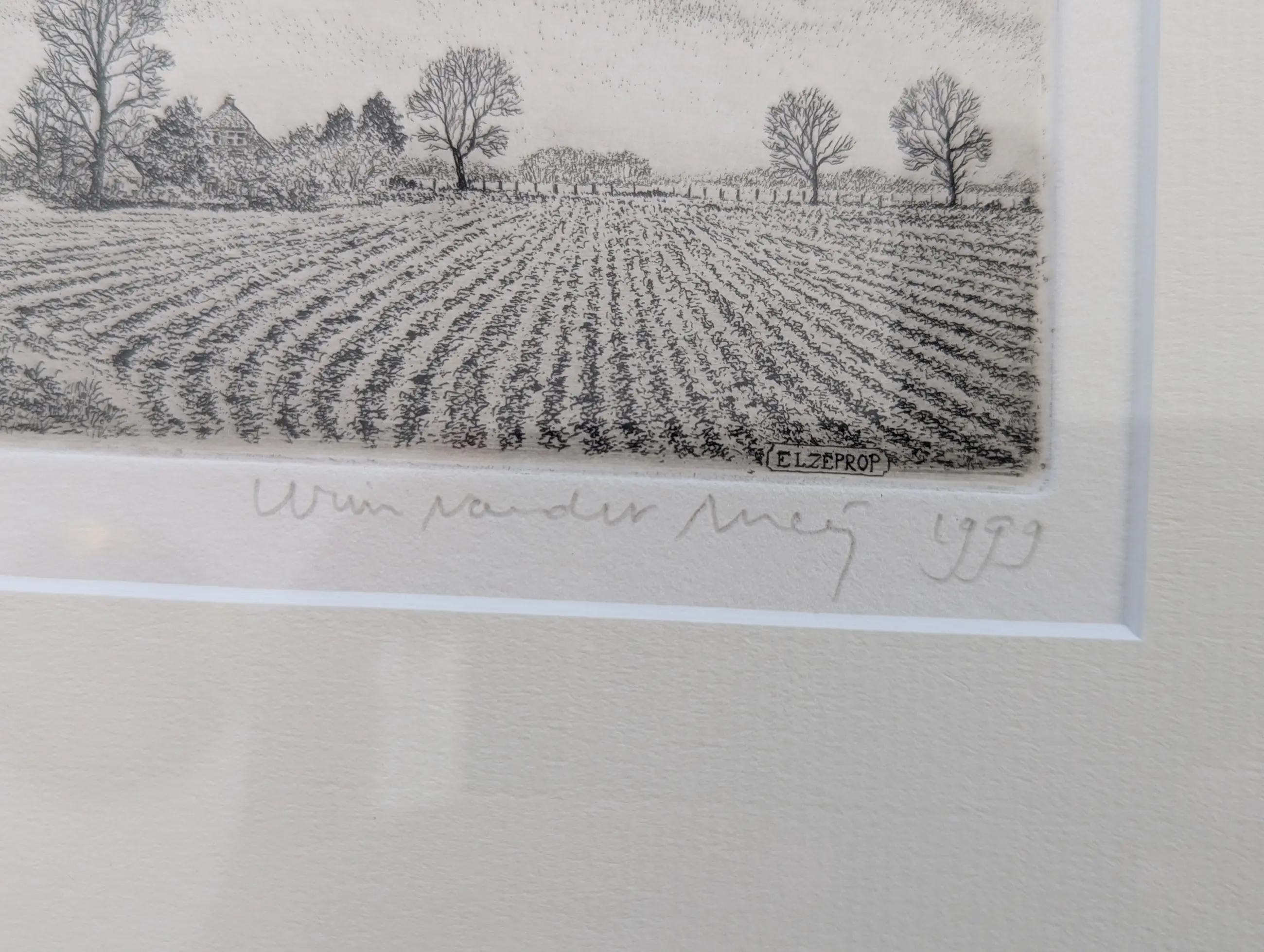 Mooie ets van een landschap, beperkte oplage en handgesigneerd. Keurig ingelijst.