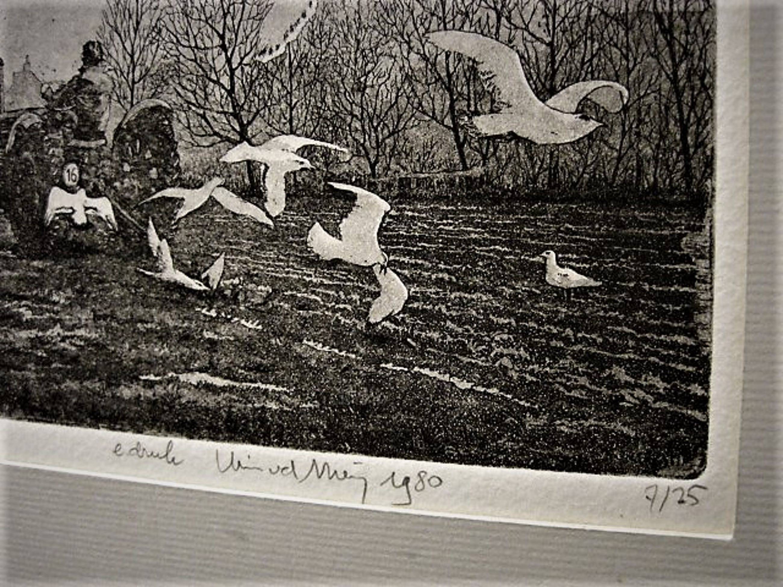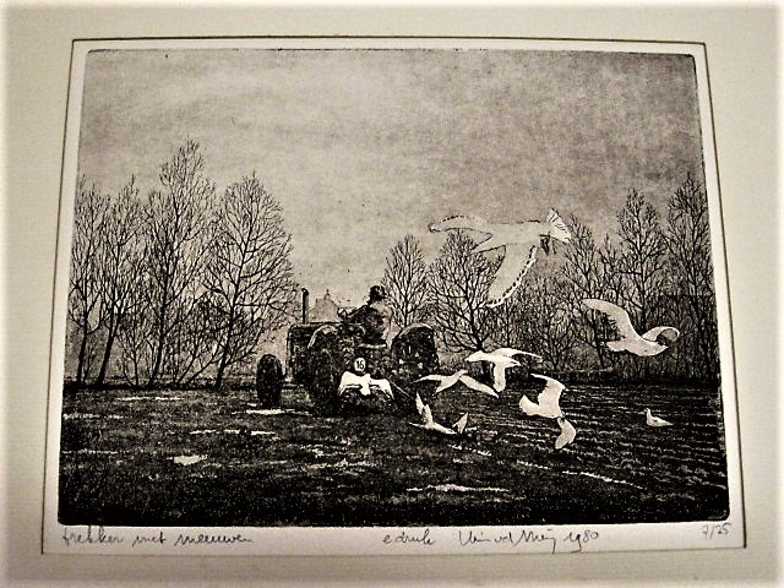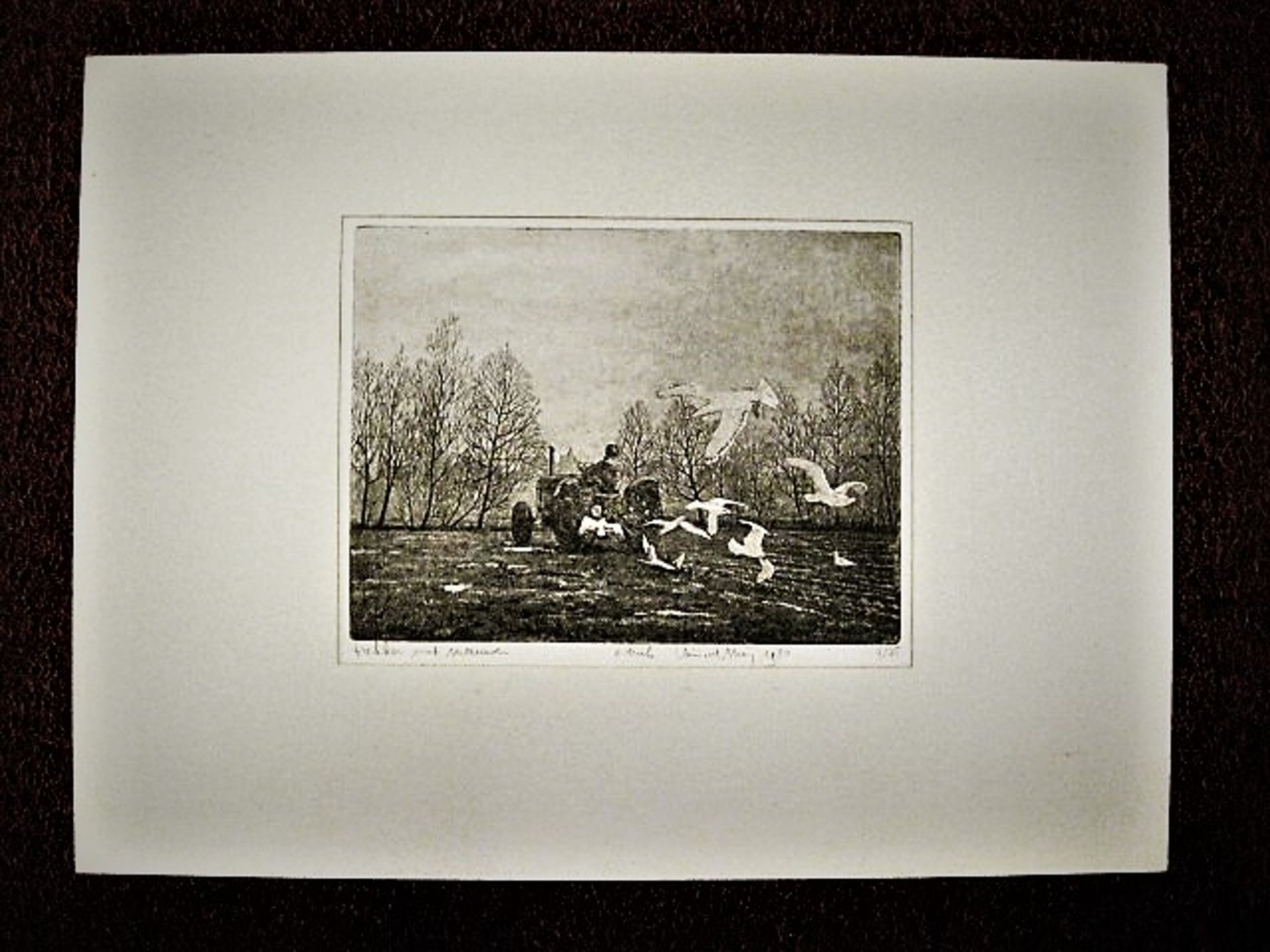 Trekker met meeuwen - gesigneerde ets - 1980 - oplage 25 ex.Ets