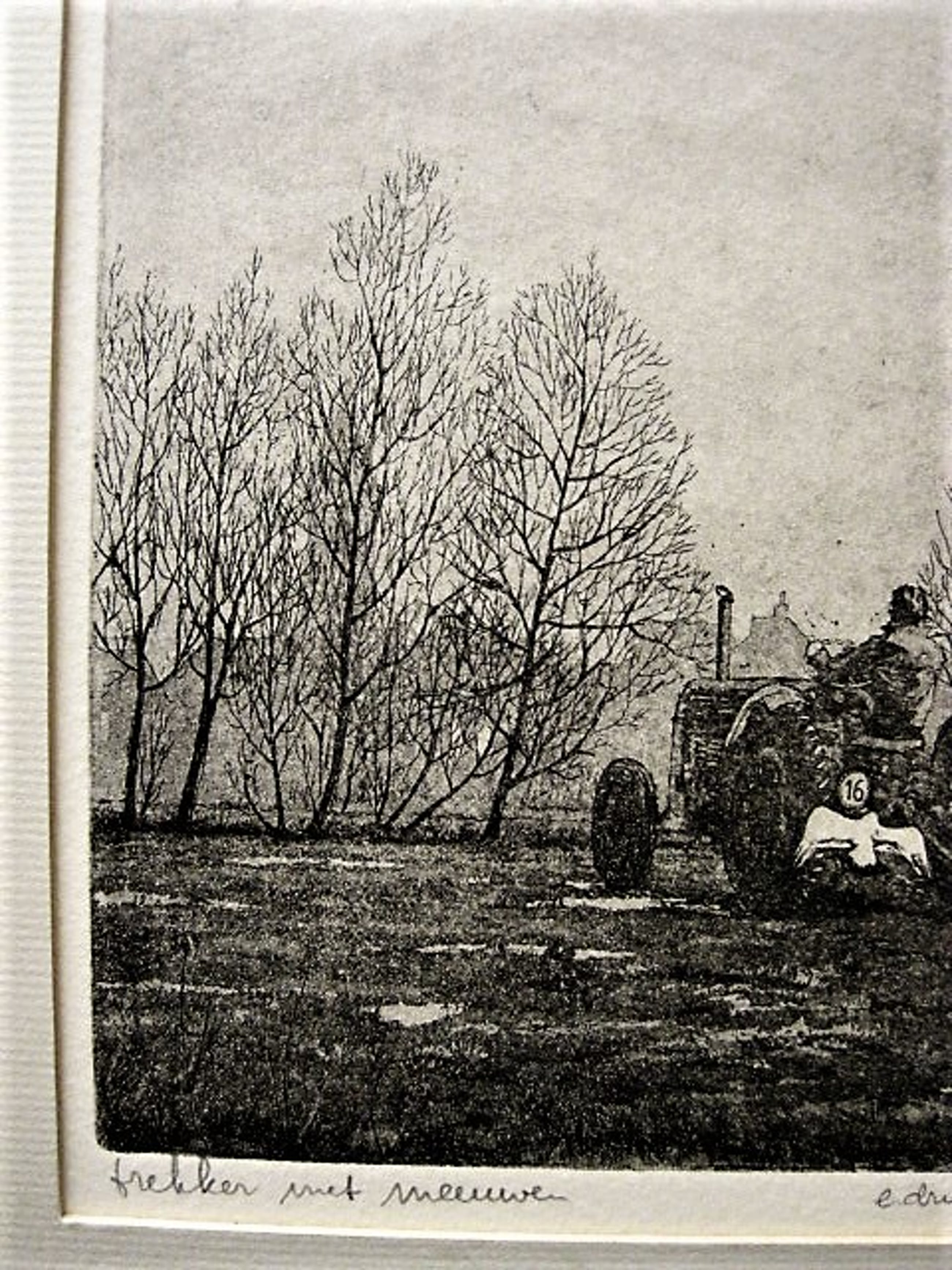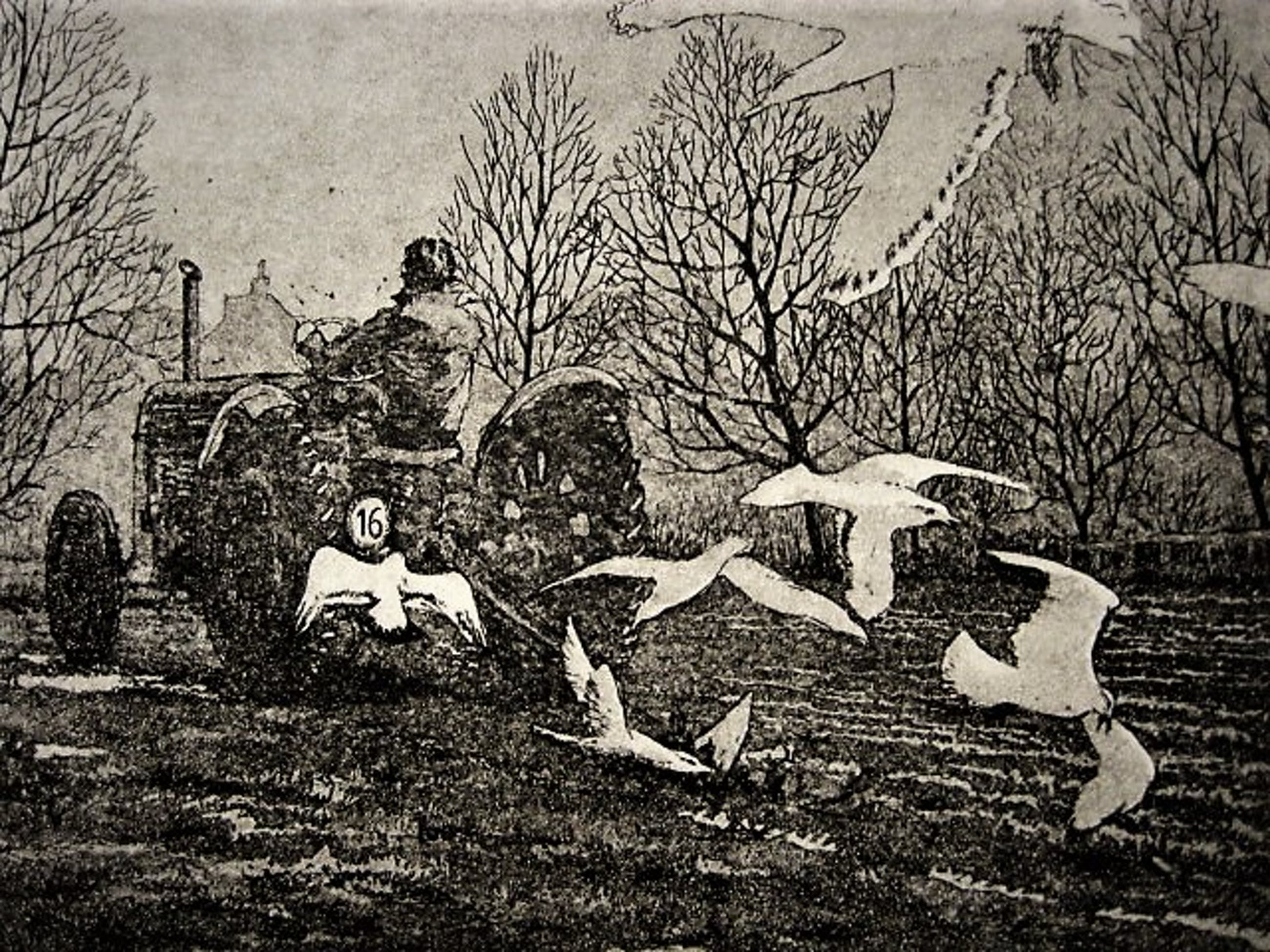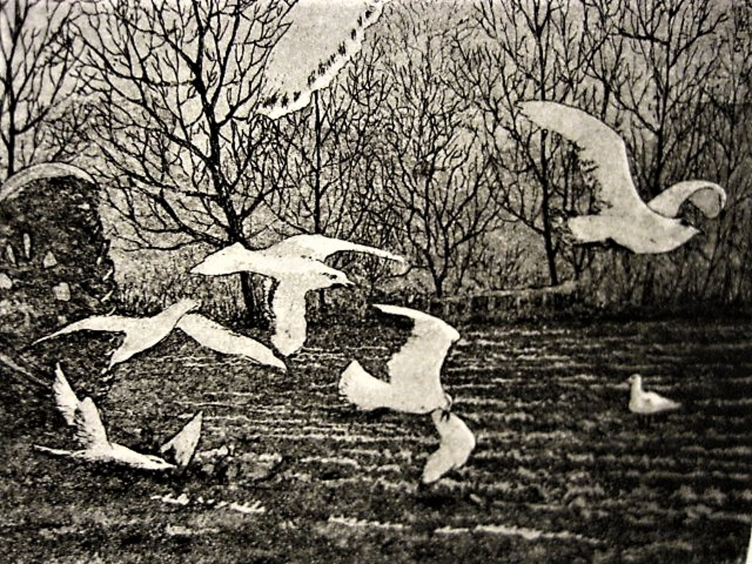 Trekker met meeuwen - gesigneerde ets - 1980 - oplage 25 ex.Ets