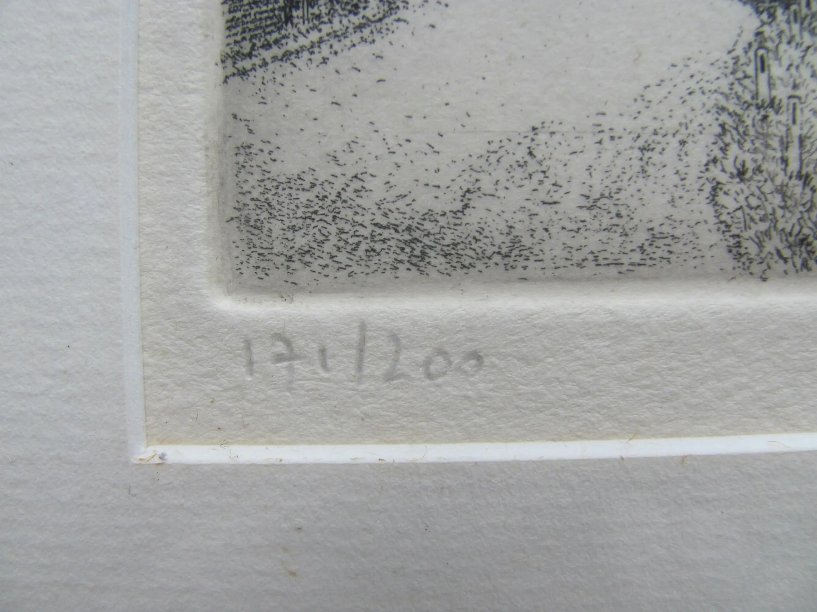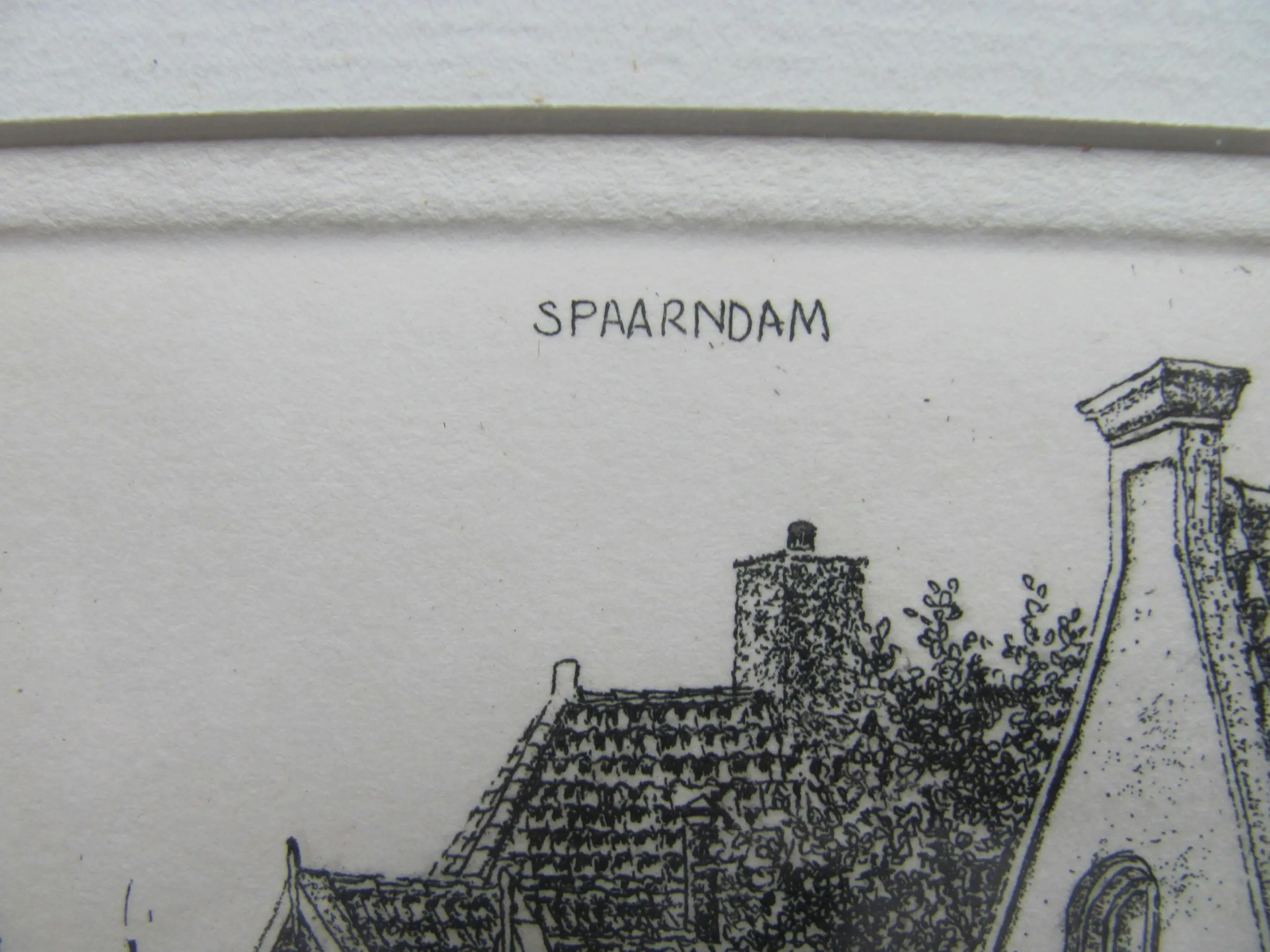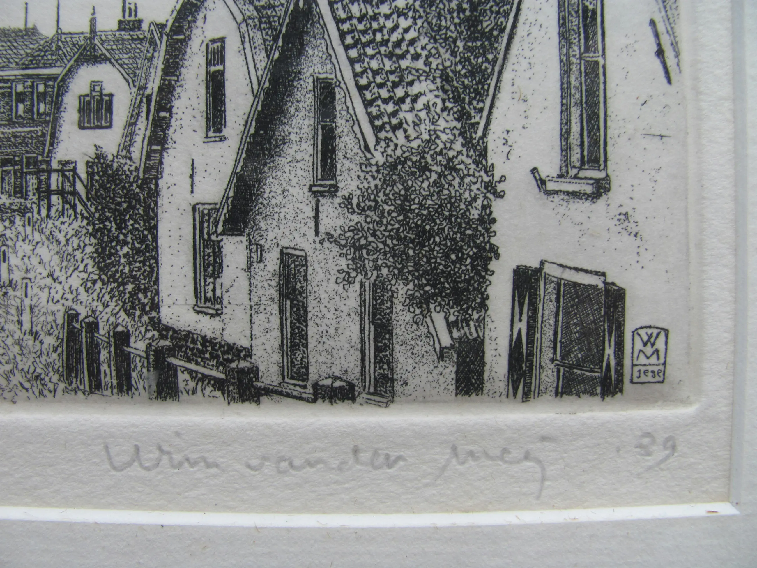 Ets van Wim van der Meij. Rechtsboven in de plaat getiteld: Spaarndam. Linksonder met potlood genummerd: 171/200 Rechtsonder met potlood gedateerd 1989 In het midden met potlood gesigneerd: Wim van der Meij. Rechtsonder in de plaat ook monogram.