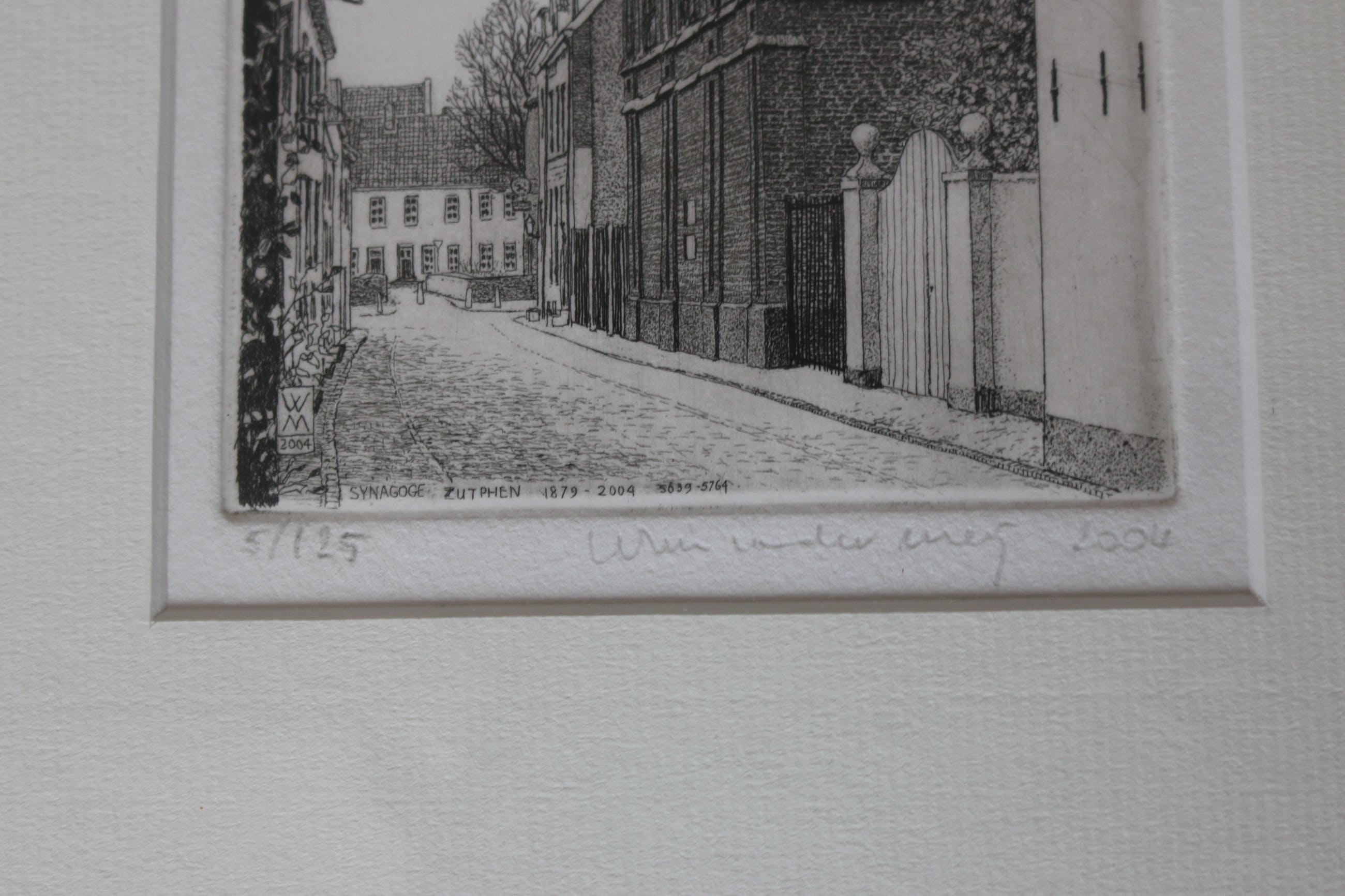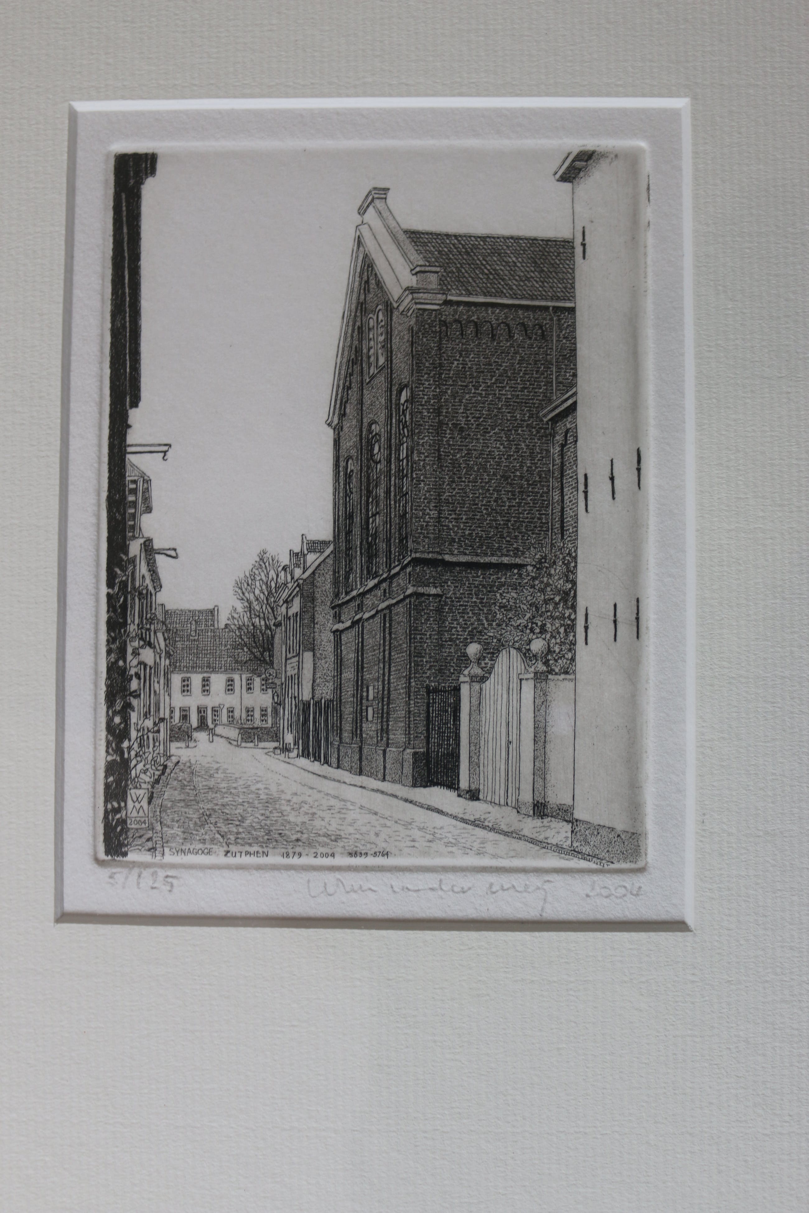 Een ets uit 2004 van de Synagoge ( gebouwd in 1879) in de Dieserstraat te Zutphen