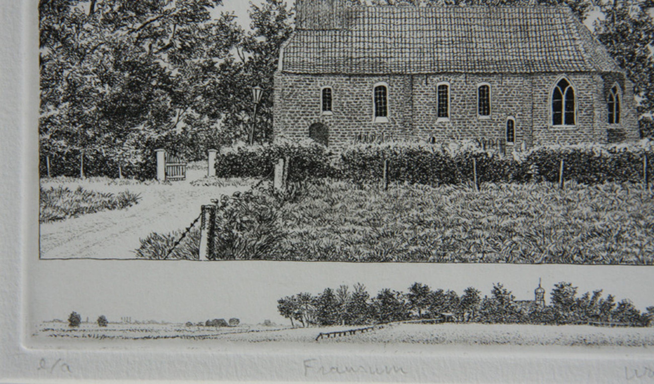 Bijzondere 2-in-1 ets uit 1990 in passe partout, afm. 30 x 24 cm, beeld 12,5 x 17,5 cm.
