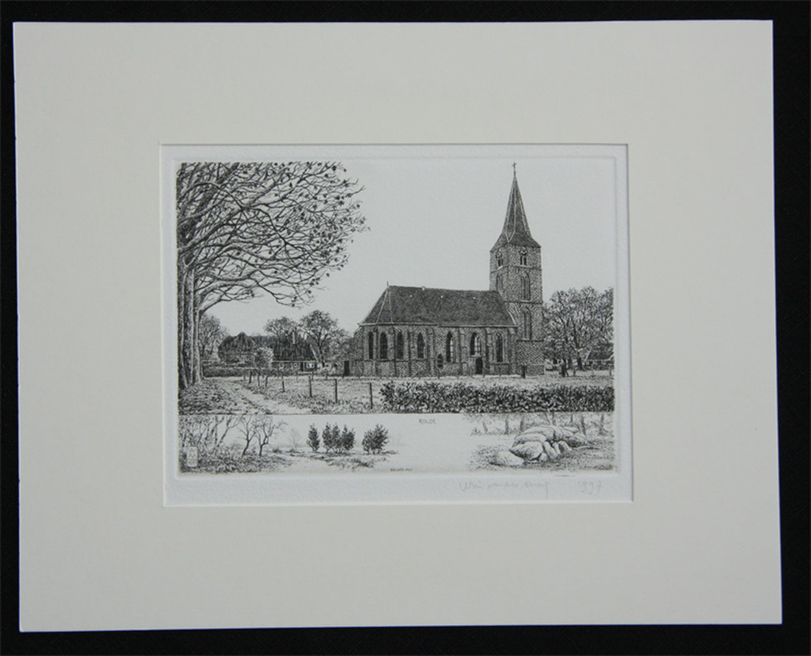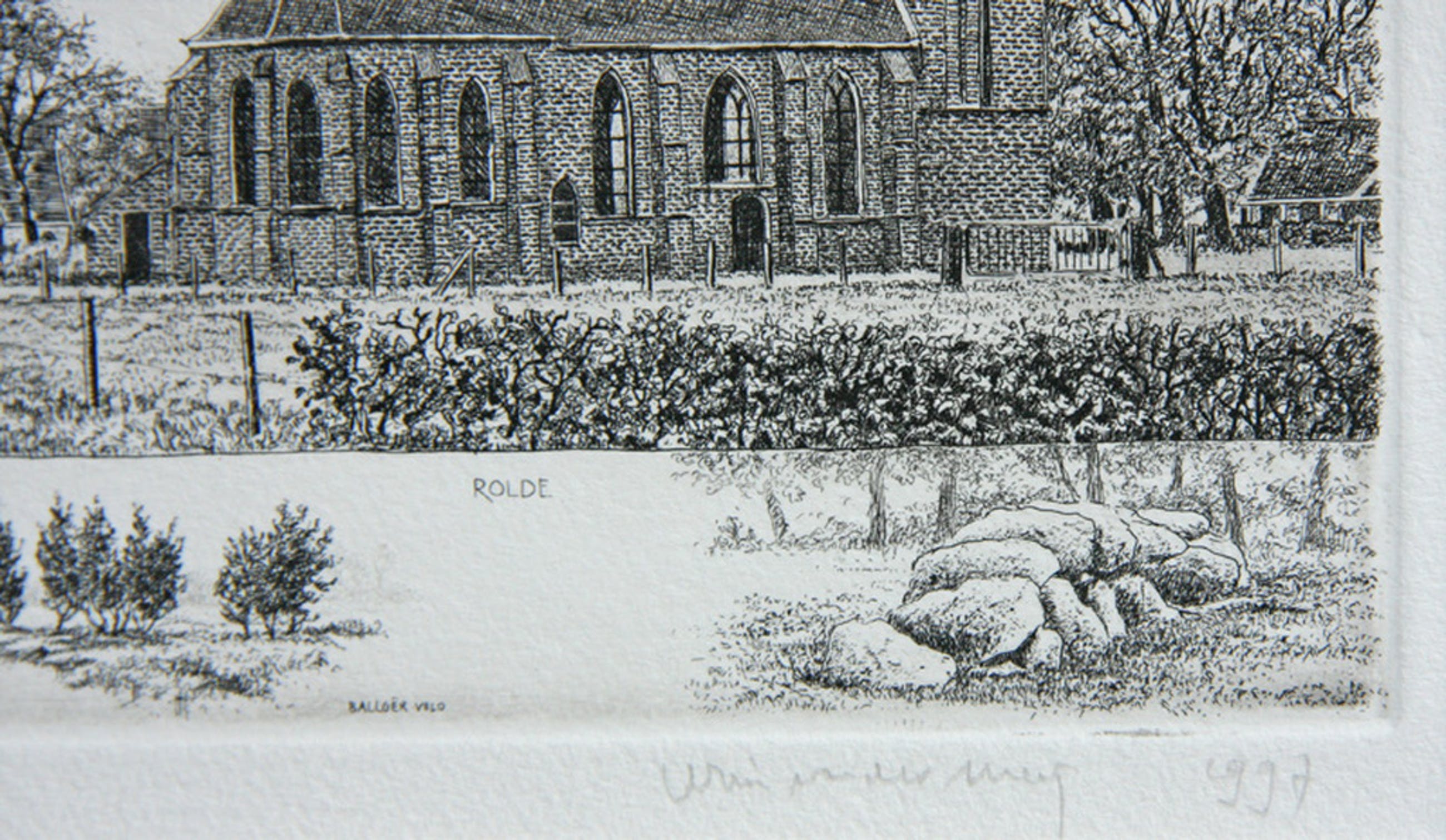 Bijzondere 2-in-1 ets uit 1997 in passe partout, afm. 30 x 24 cm, beeld 12,5 x 17,5 cm.