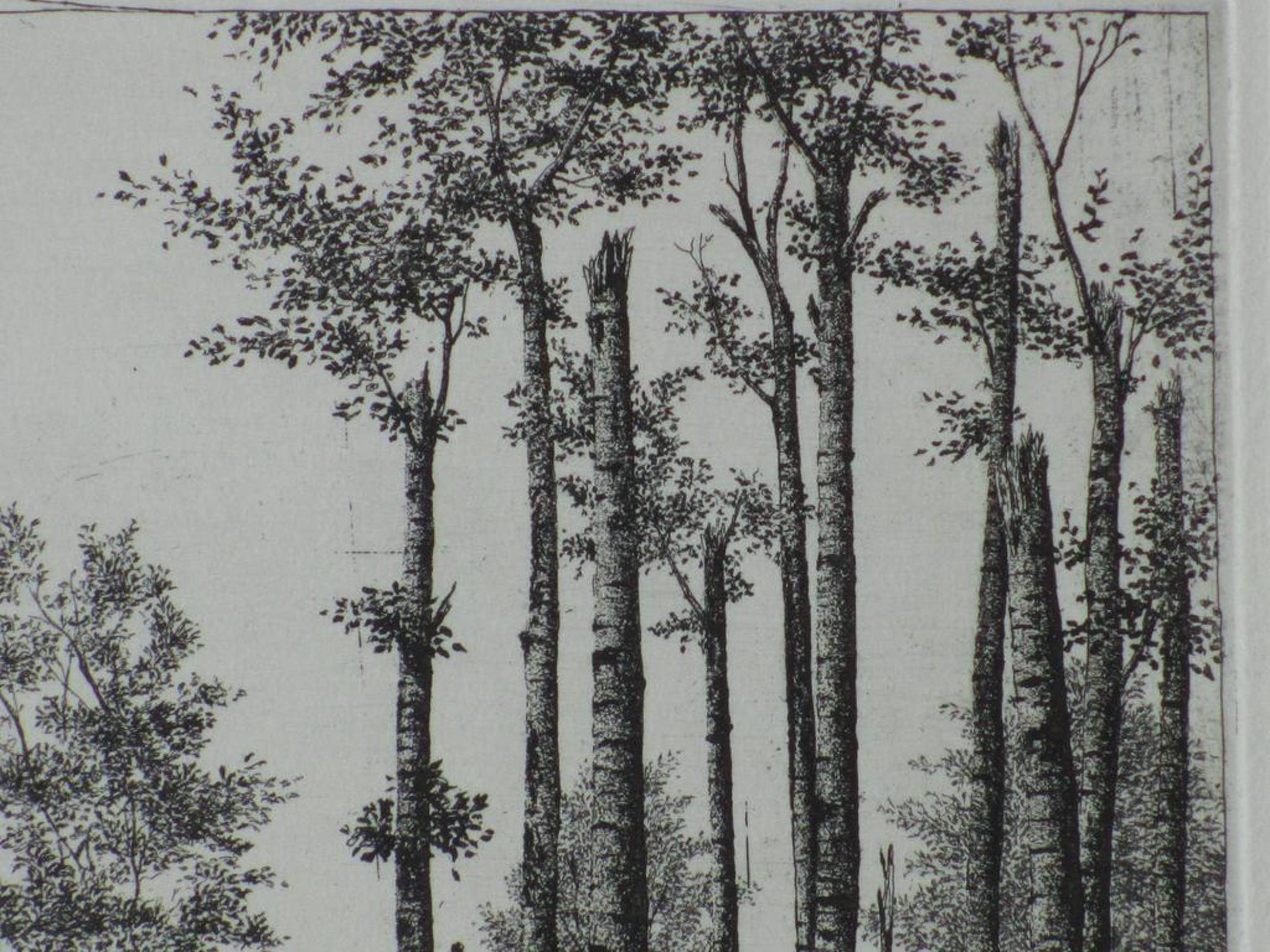 Ets onder passepartout, beeldmaat 11x19,5, bladmaat 20x27, p.p.maat 35x28