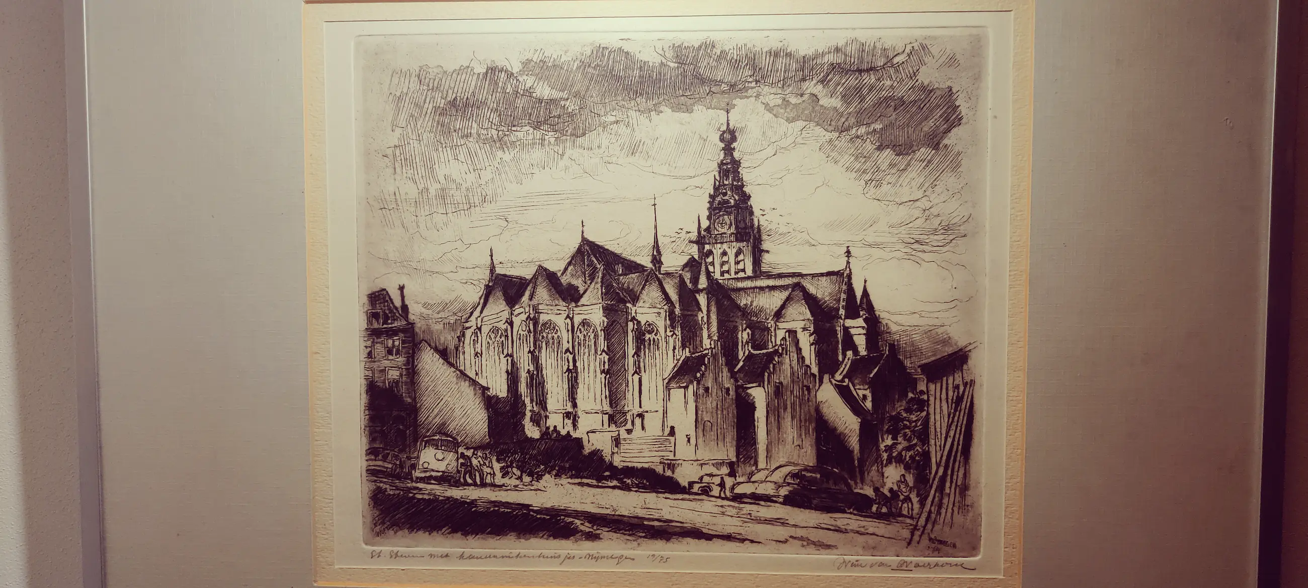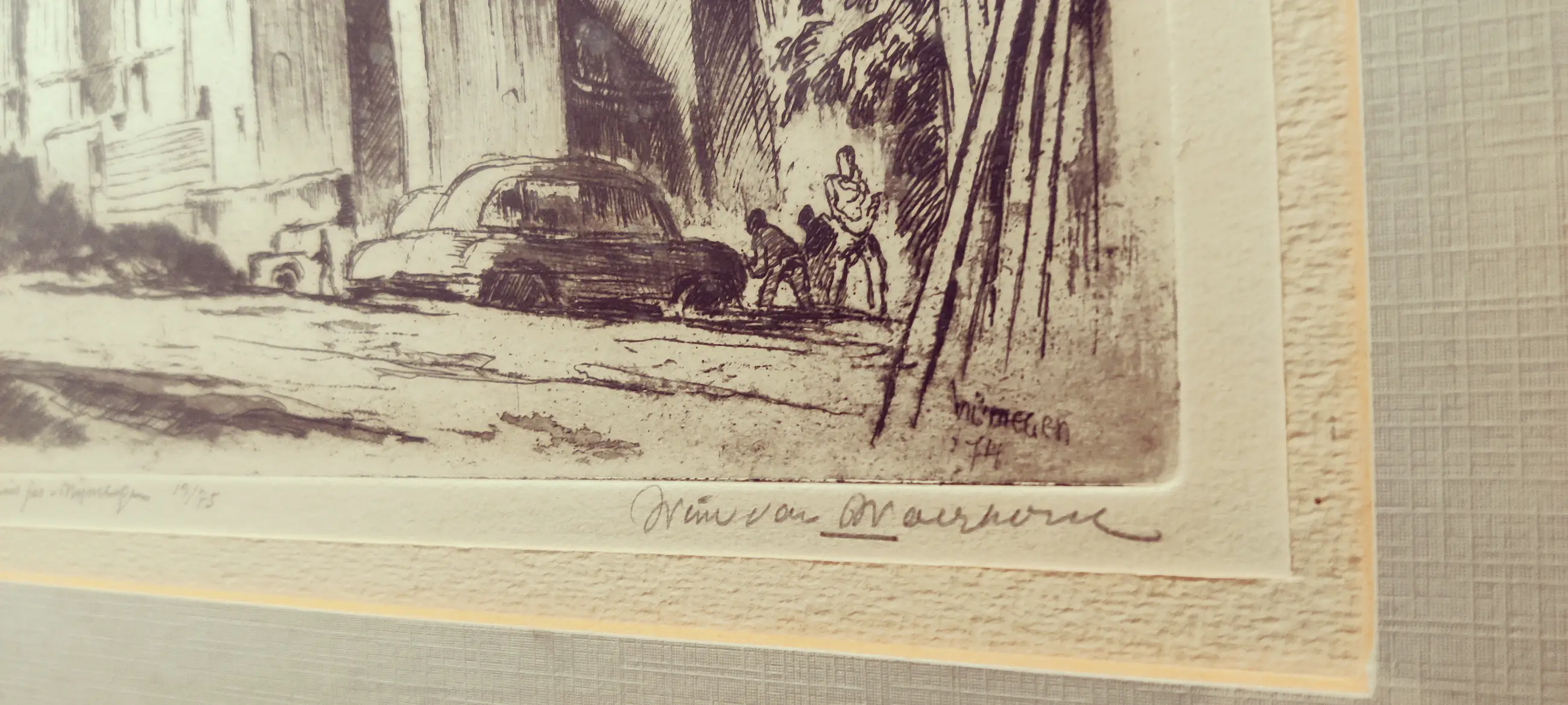 Prachtig mooie pen-tekening van Wim van Woerkom - de bekende kunstschilder uit Nijmegen.