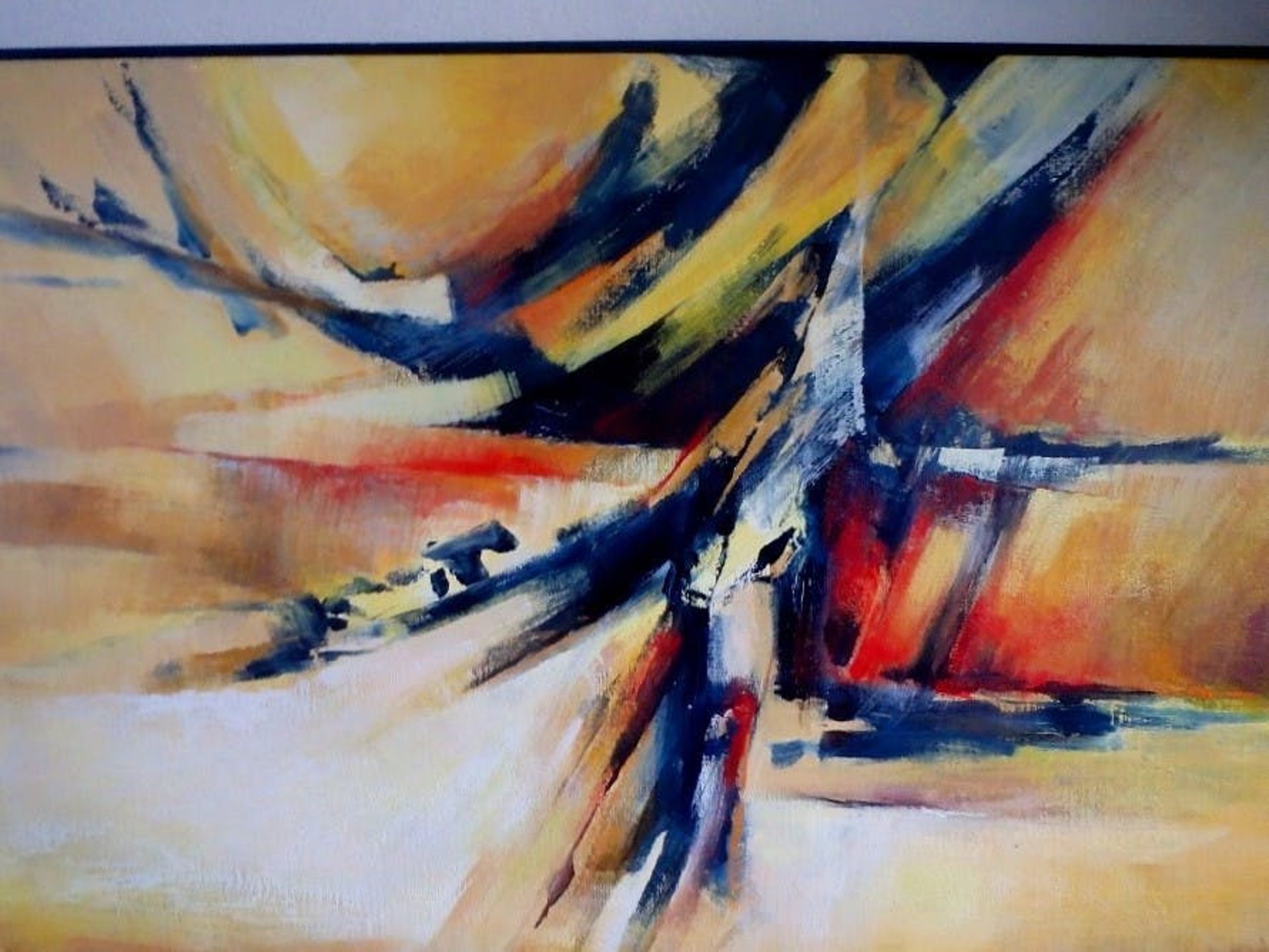 Olieverf / acryl op doek 100x120, rechtsonder gesigneerd Wim Vellekoop, geschilderd ca. 2000, in eenvoudige lattenlijst.