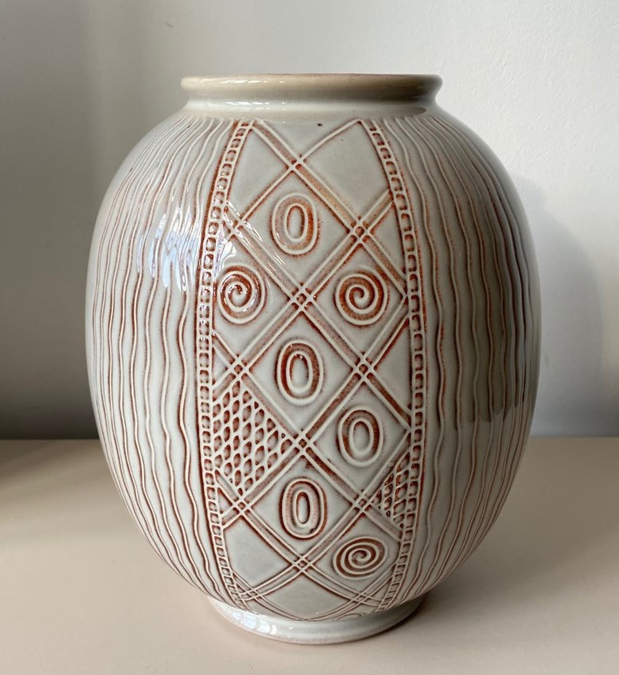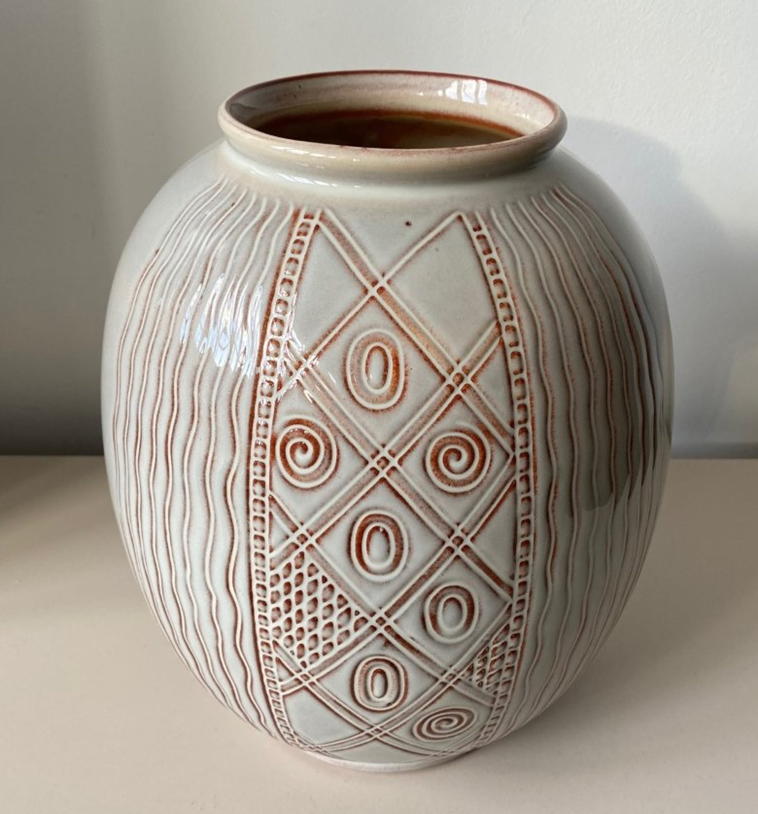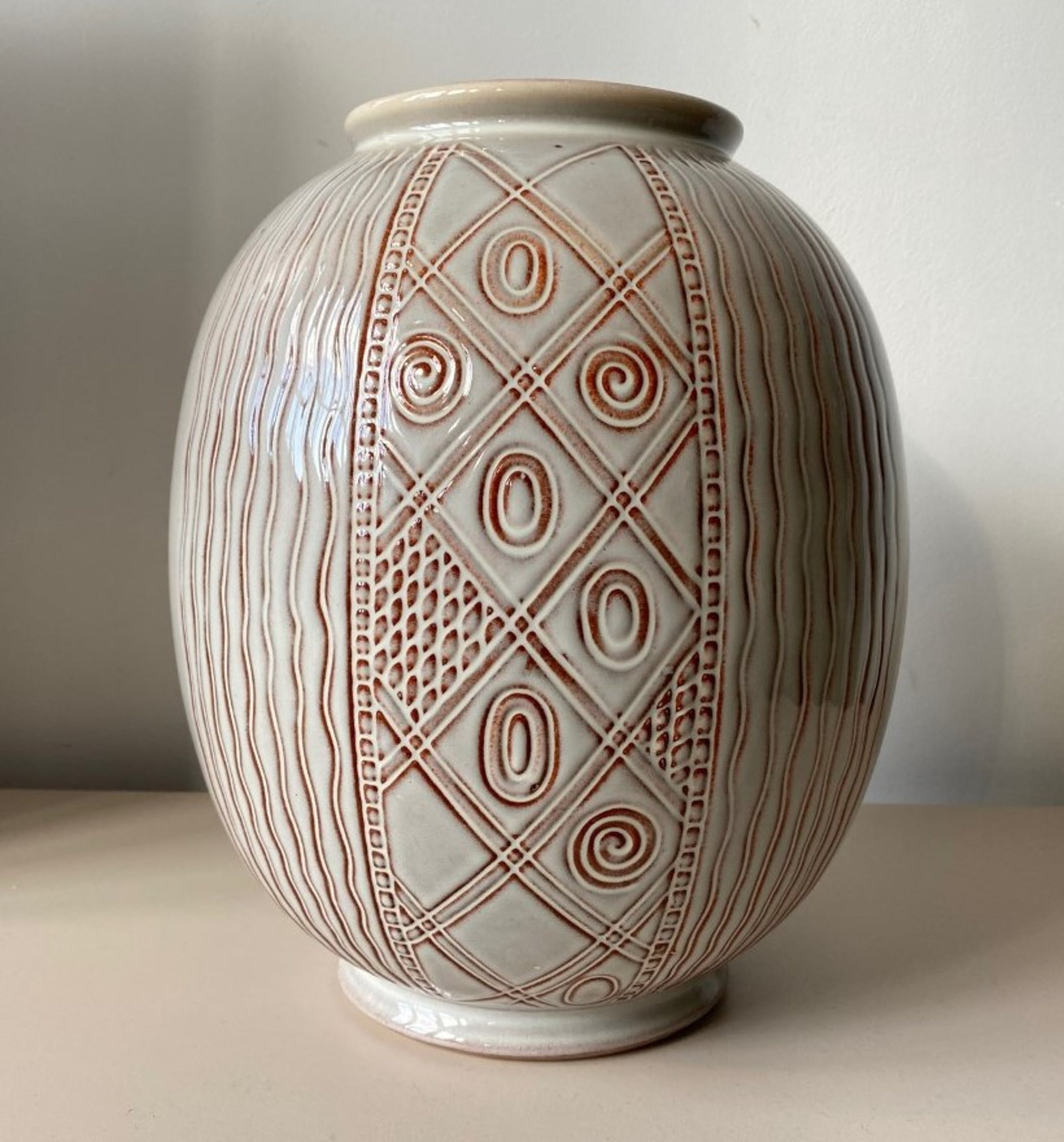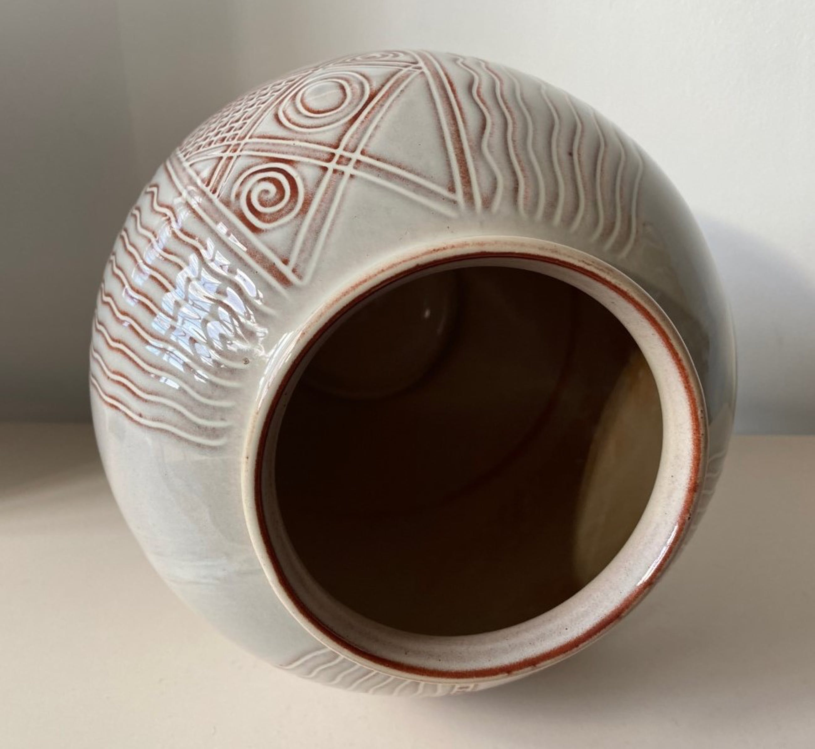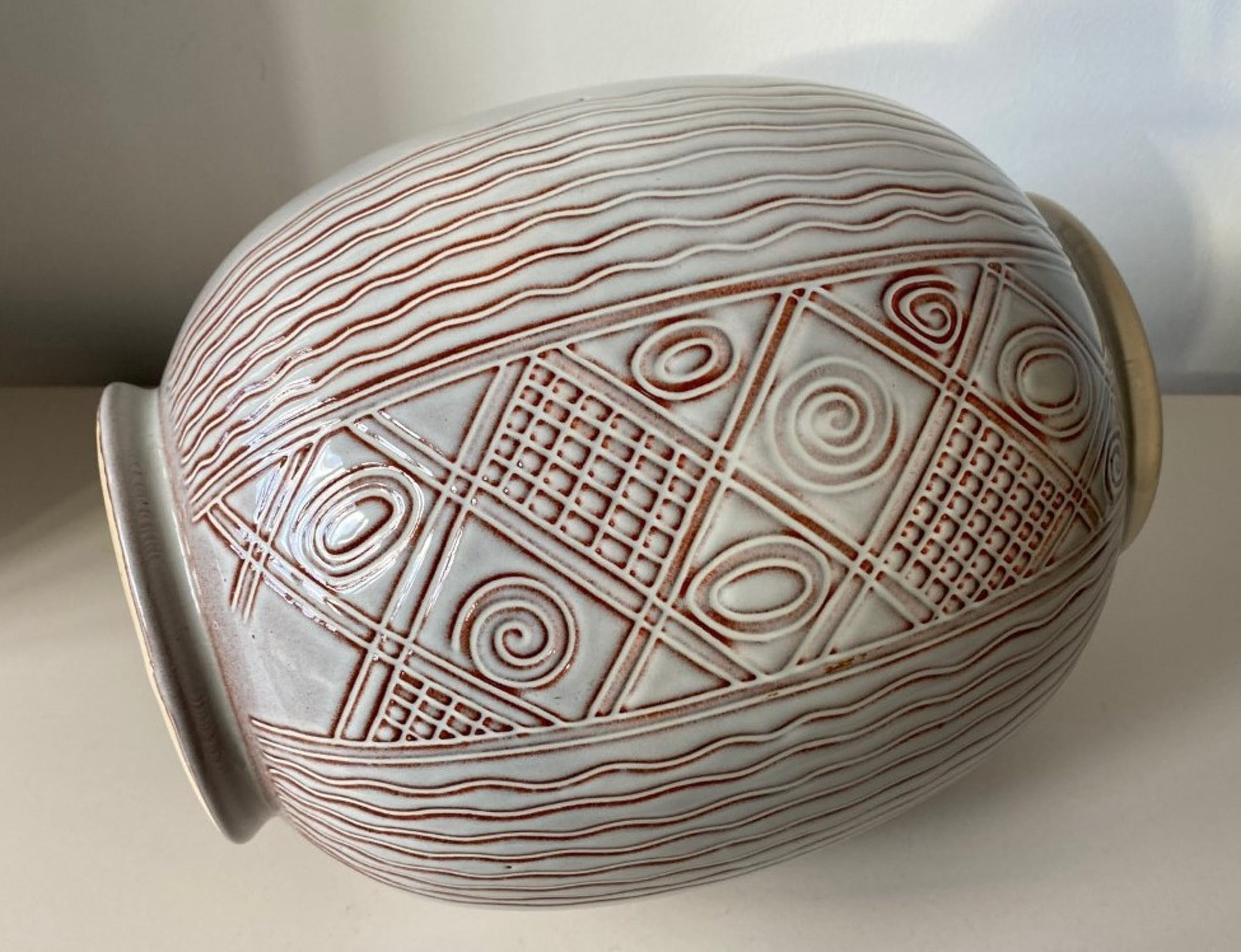 XL vaas model V7 ontwerp Wim Visser uitgevoerd bij kunstaardewerk atelier van De Sphinx in Limmen. In perfecte onbeschadigde conditie en voorzien van ingedrukt merk V7.