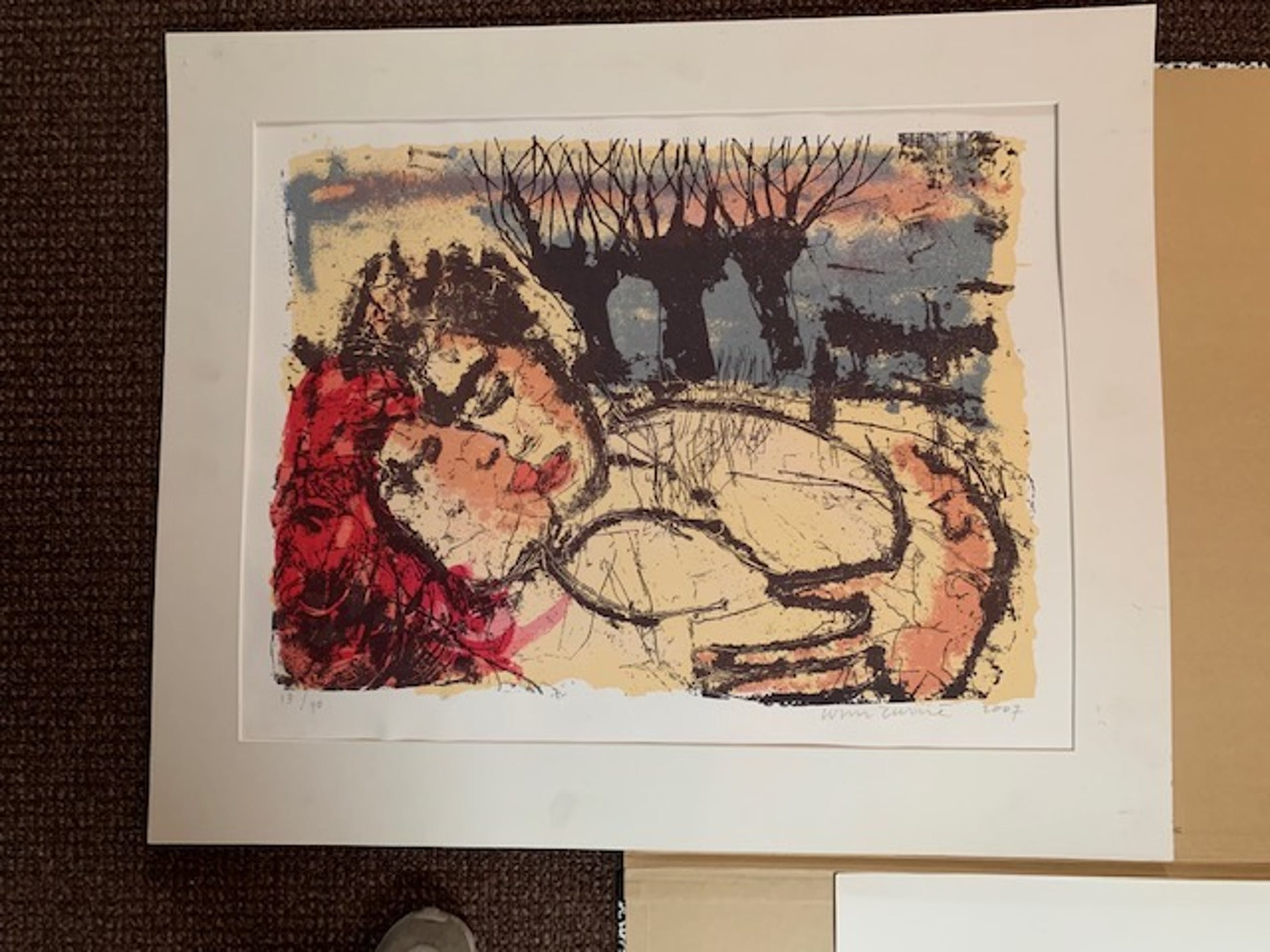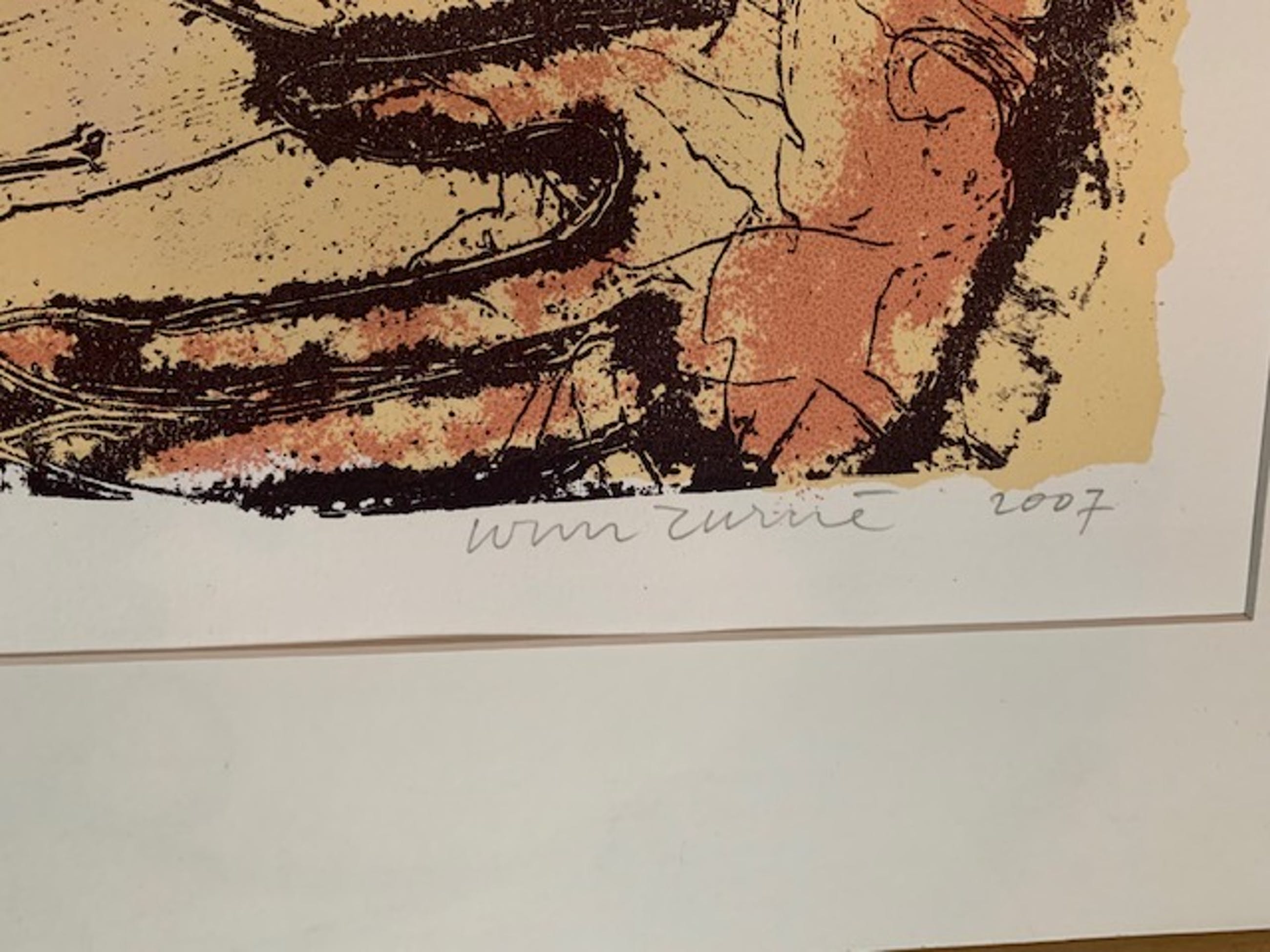 Wim Zurné is de meester van de gemengde druktechnieken. Een prachtig werk De Kus - Gesigneerd en genummerd: 13/40. Het werk kan worden opgehaald bij de eigenaar of kan aangetekend worden verzonden.