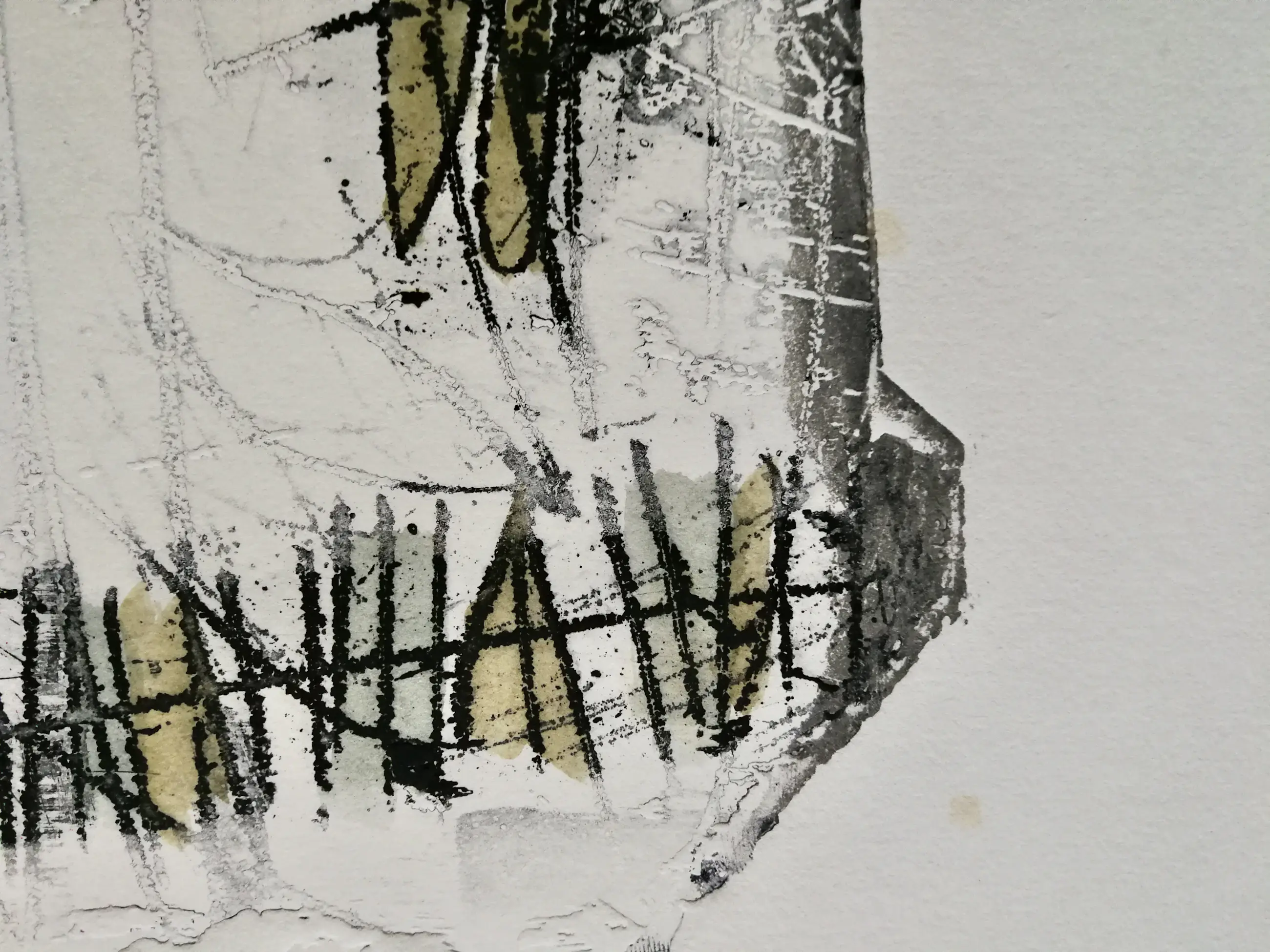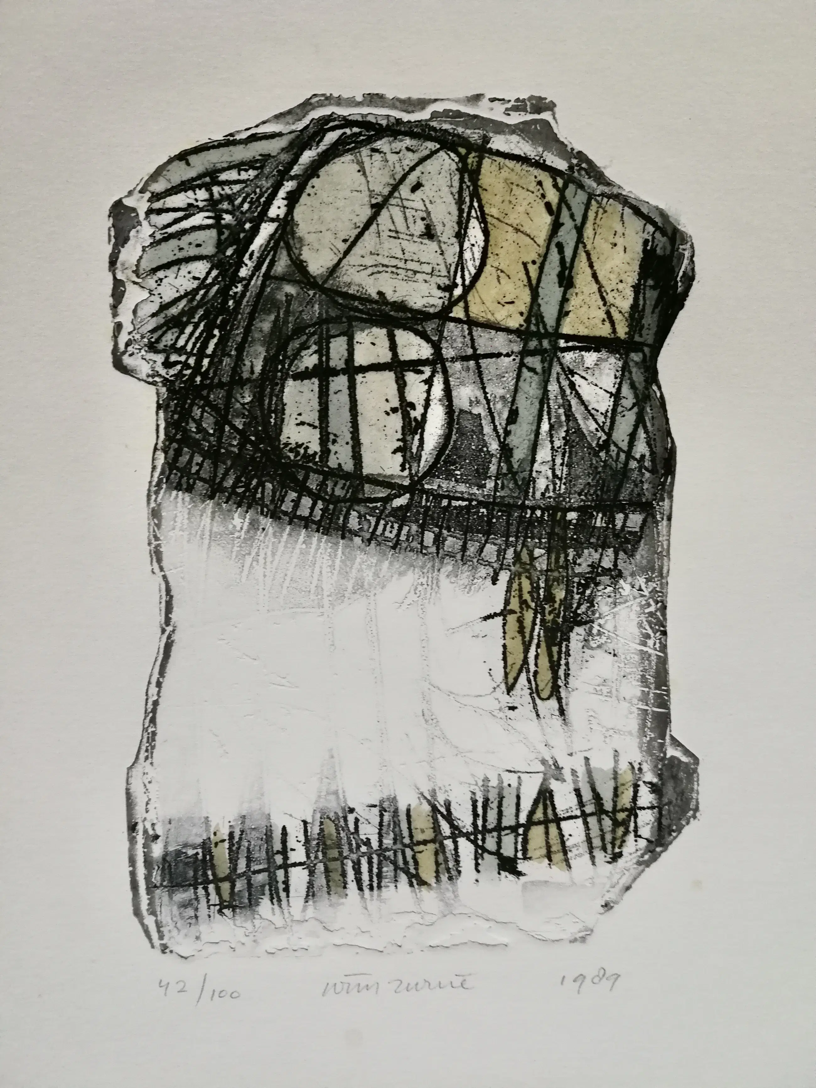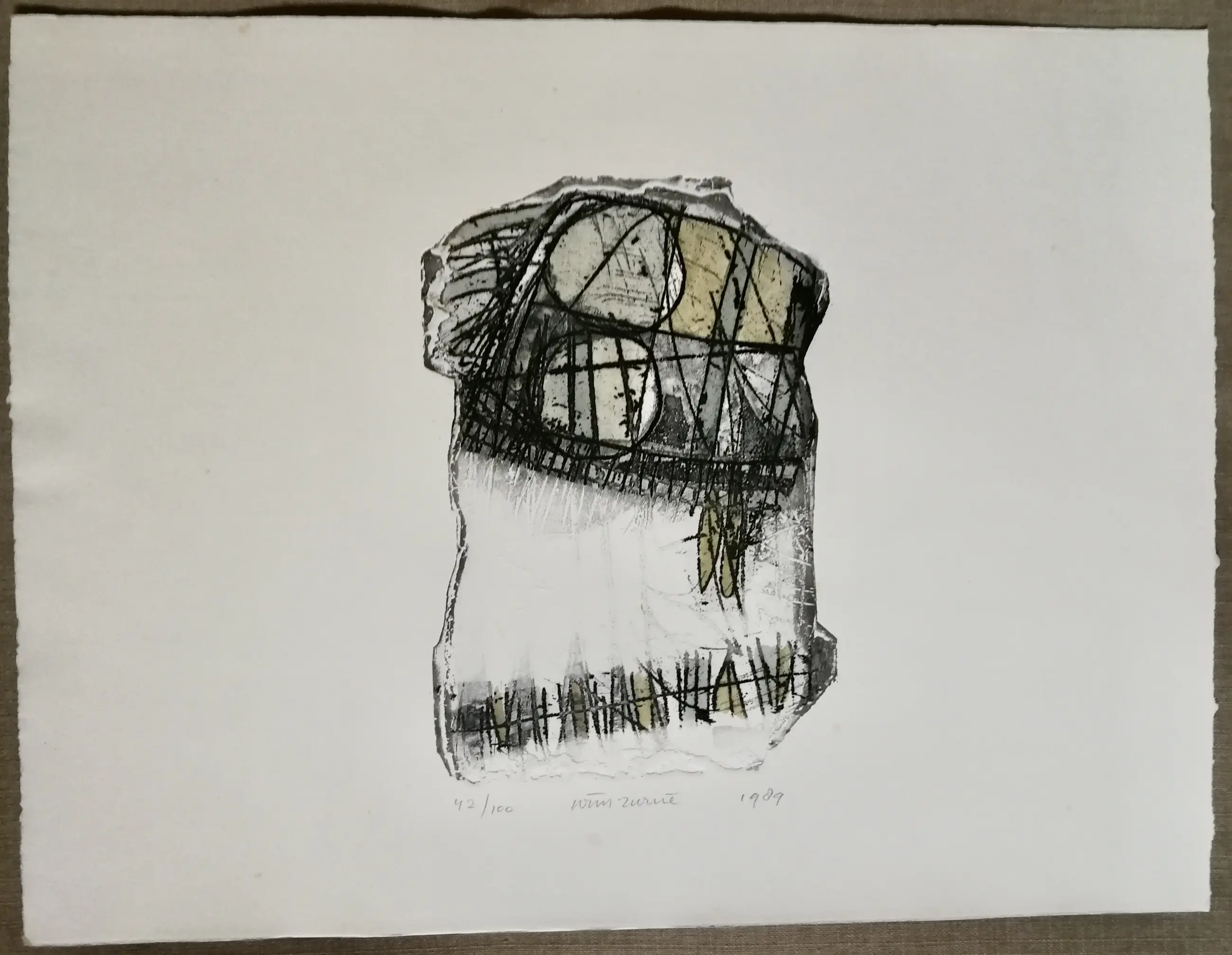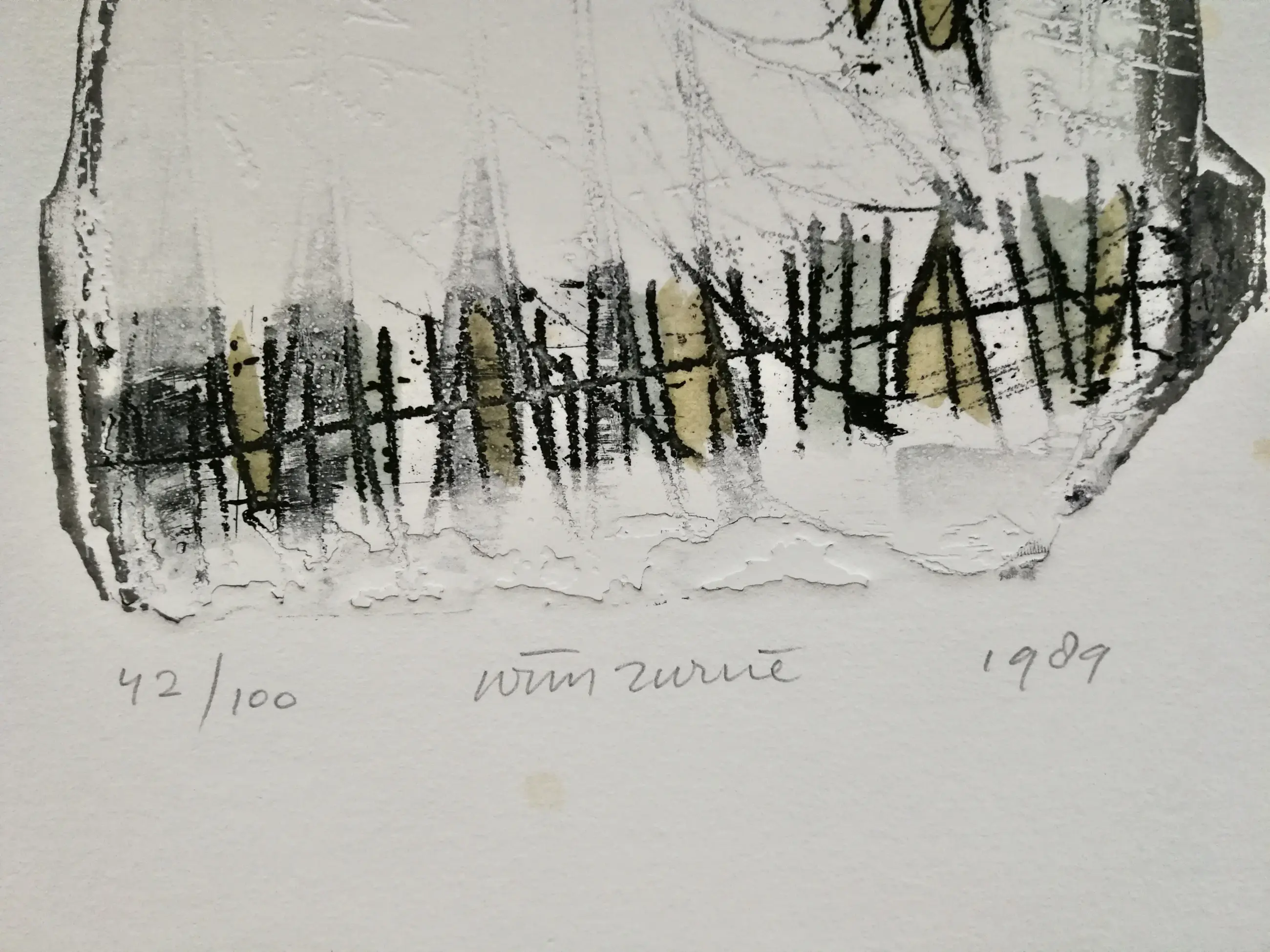 Ets van Wim Zurne op zwaar geschept papier, gesigneerd, gedateerd en genummerd in potlood. Verzending tussen twee platen, 10 euro, aangetekend 12,30
