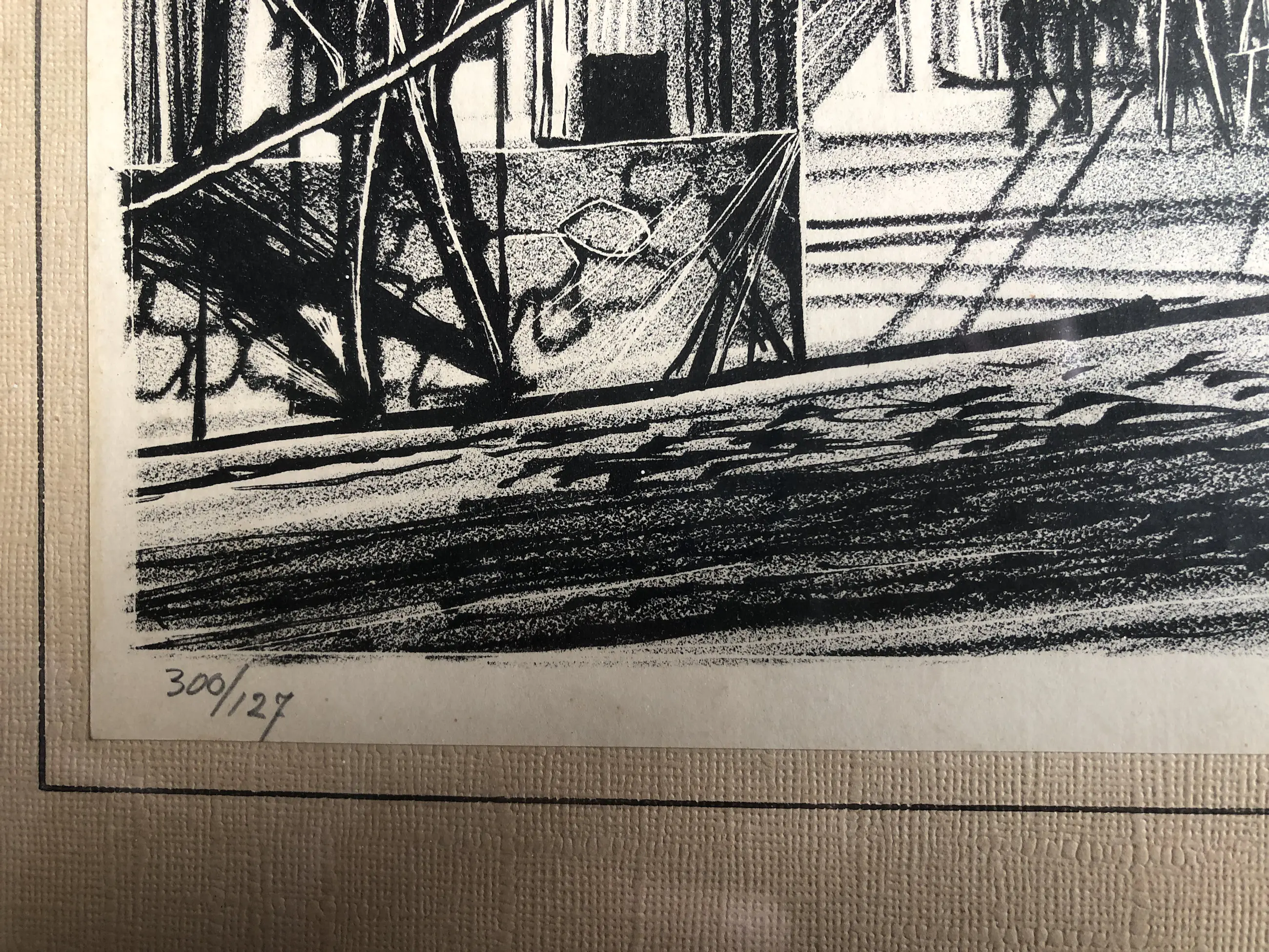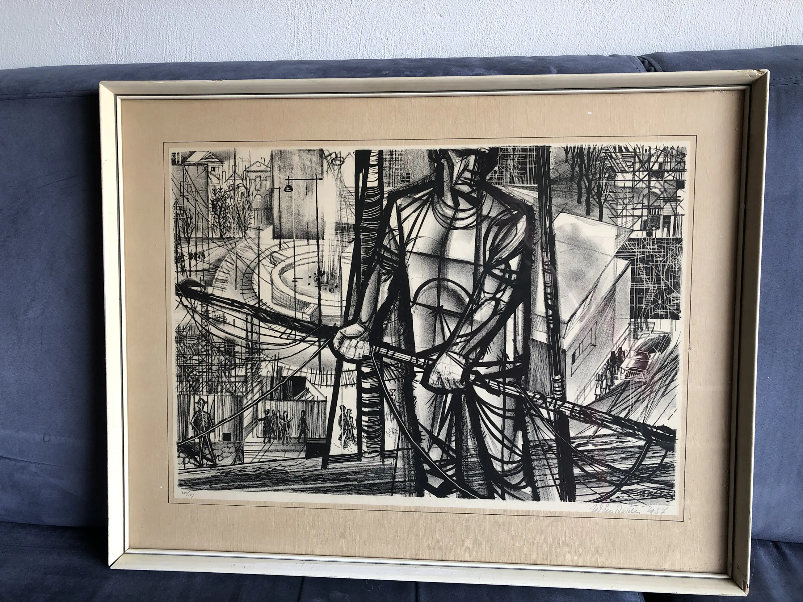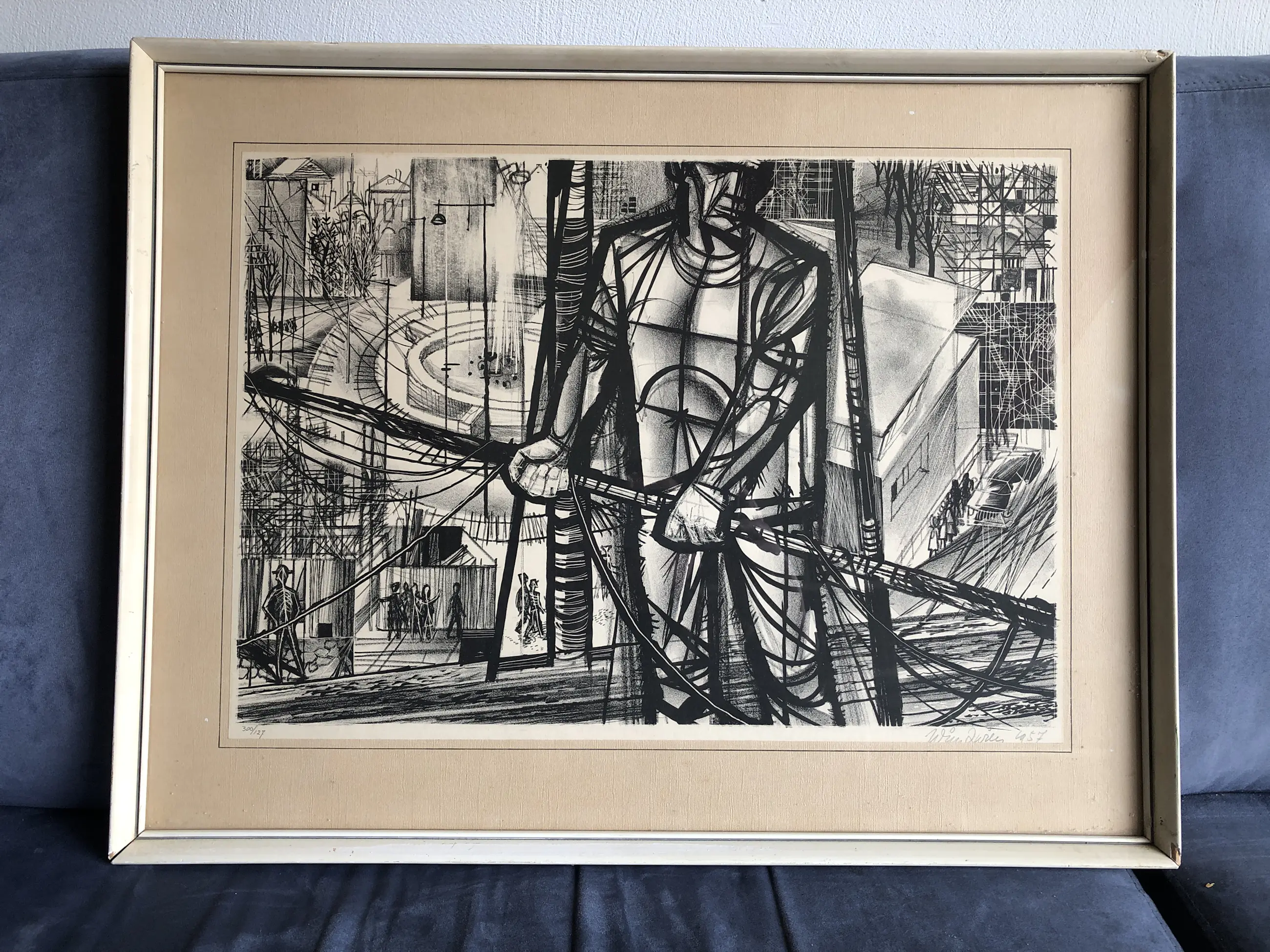 Een fraai werk van de bekende graficus Wim Zwiers. Zwiers was een bekend en veelzijdig kunstenaar die, reeds op leeftijd, de computer leerde gebruiken in dienst van zijn werk. Werken van hem zijn te vinden in o.a. Het Centraal Museum Utrecht. Hij overleed in 2019 De lijst is licht beschadigd