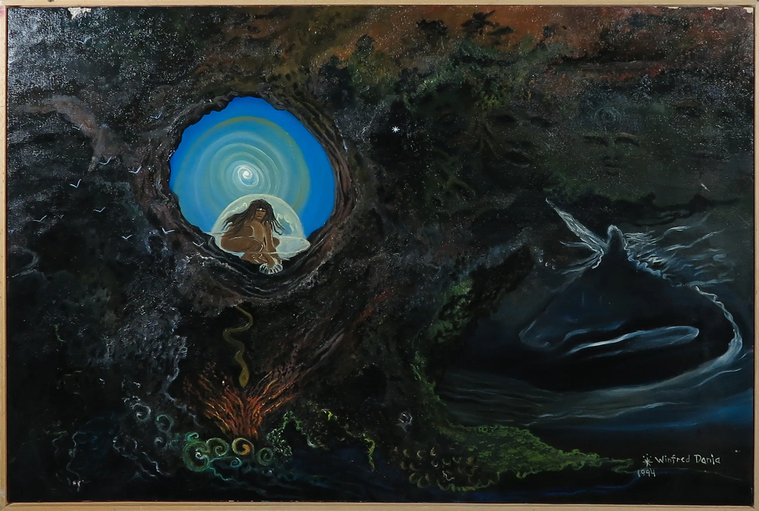 | Verfschade in de randen en hoeken van het werk. Links bobbelt het doek hier en daar. | |