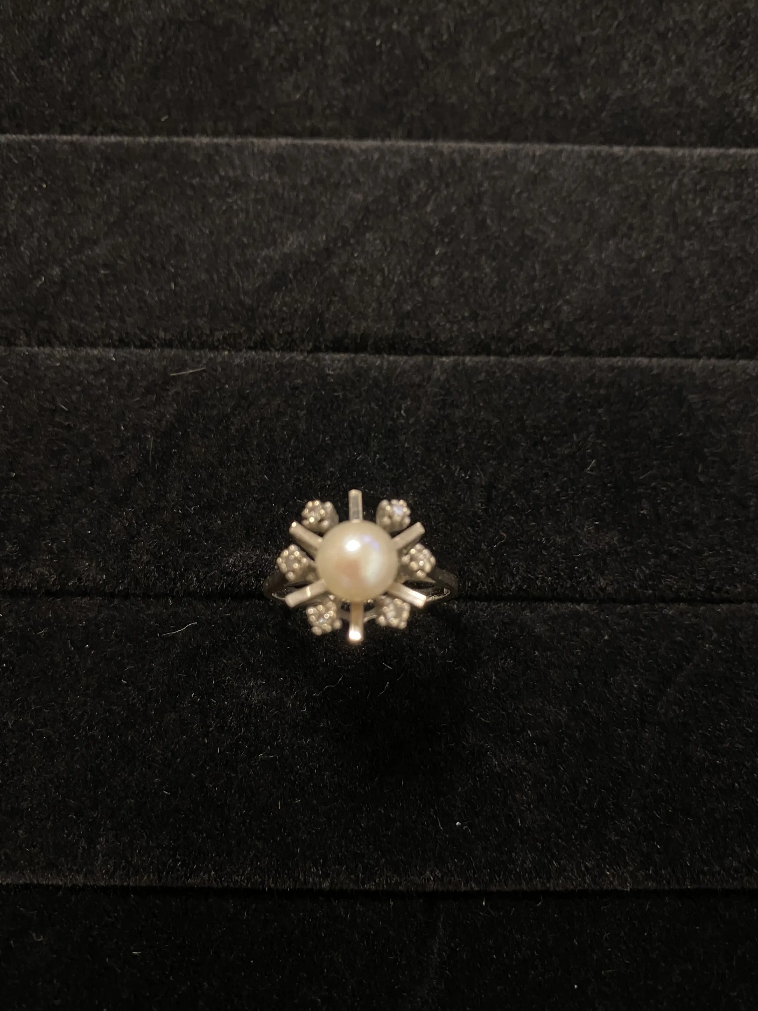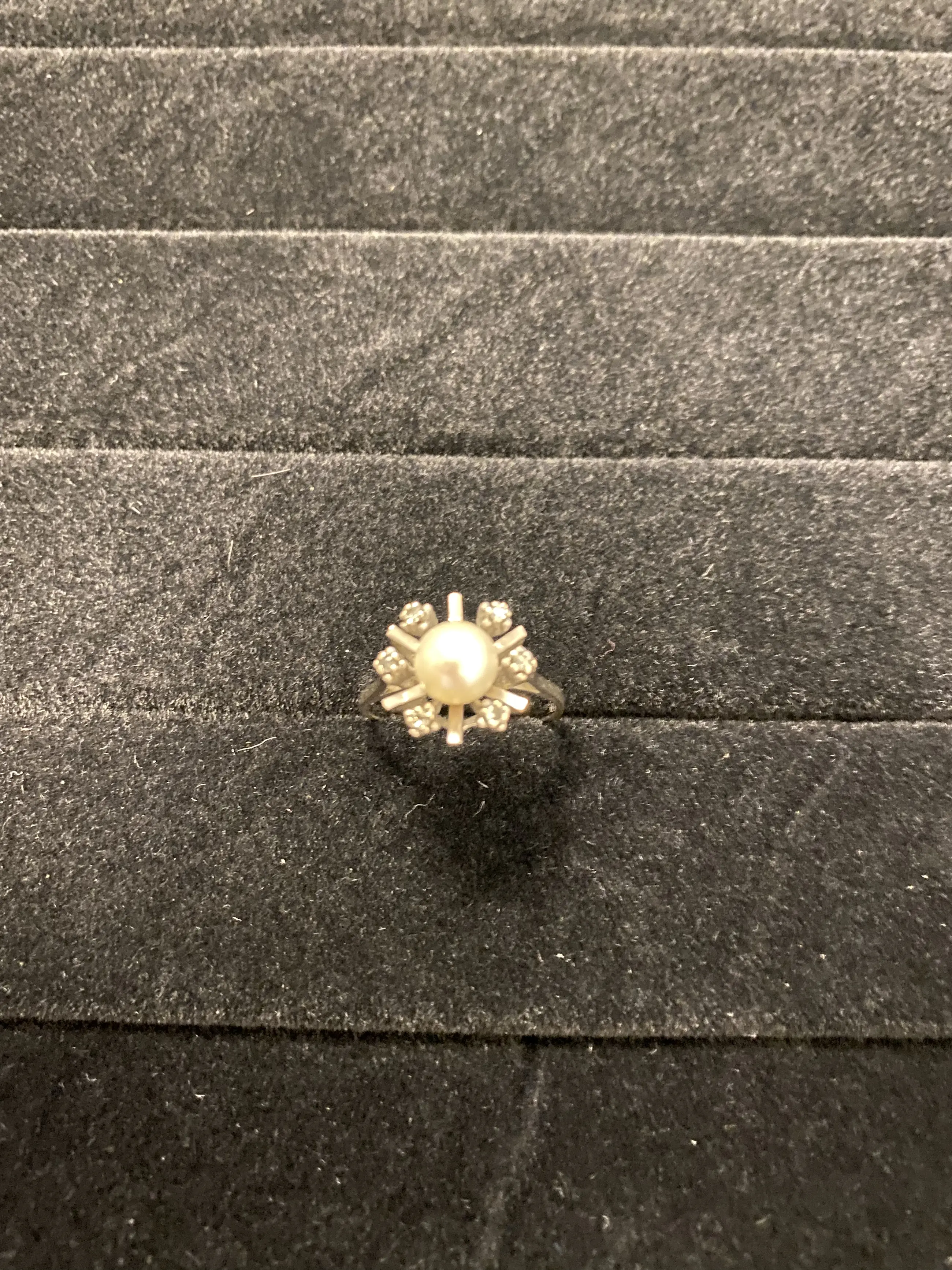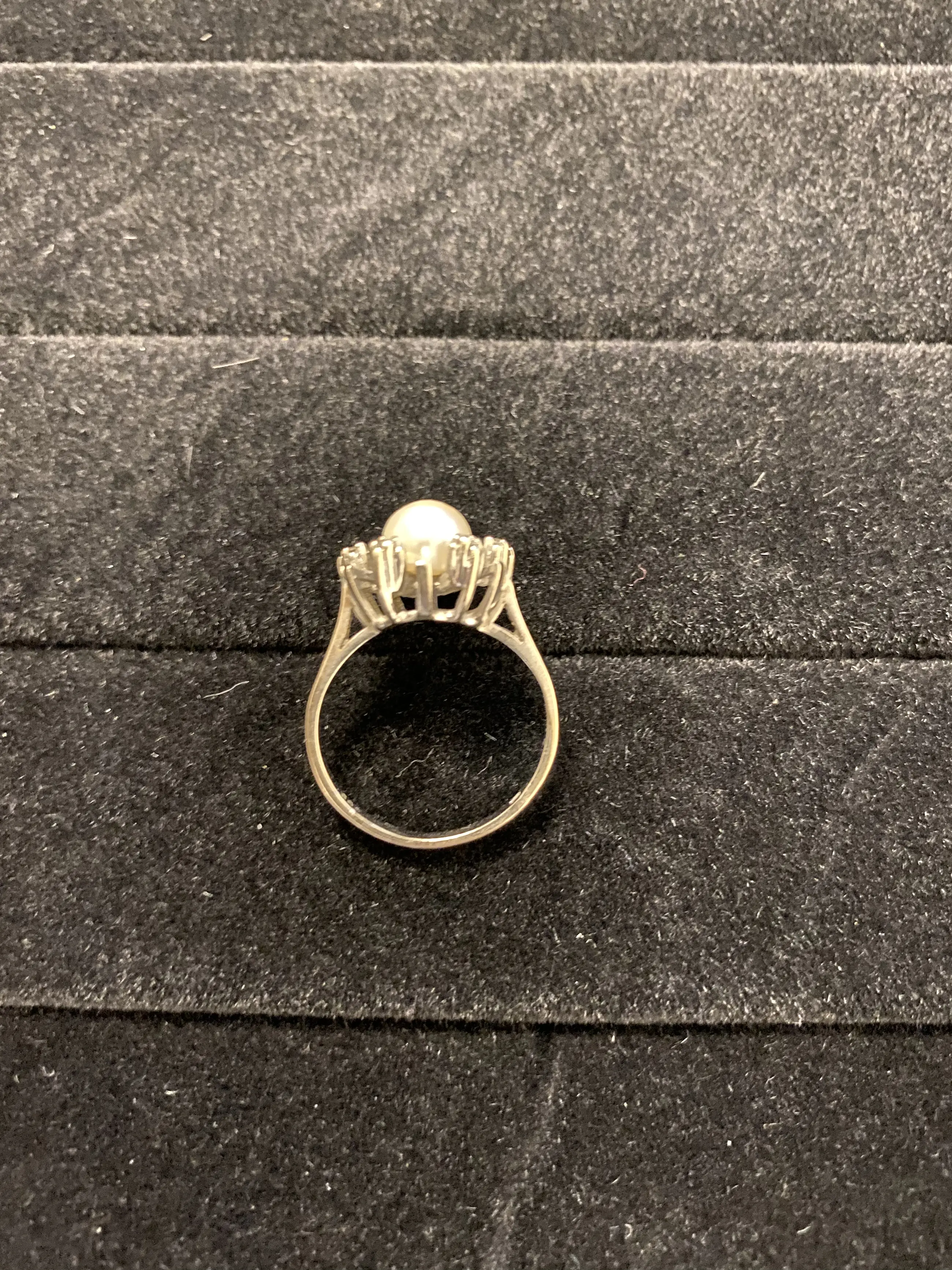 Witgouden rozet ring met parels en diamanten 6 x 0.02 .ct Ringmaat 16.5 mm Gehalte 585/1000 Artikelnummer 8533