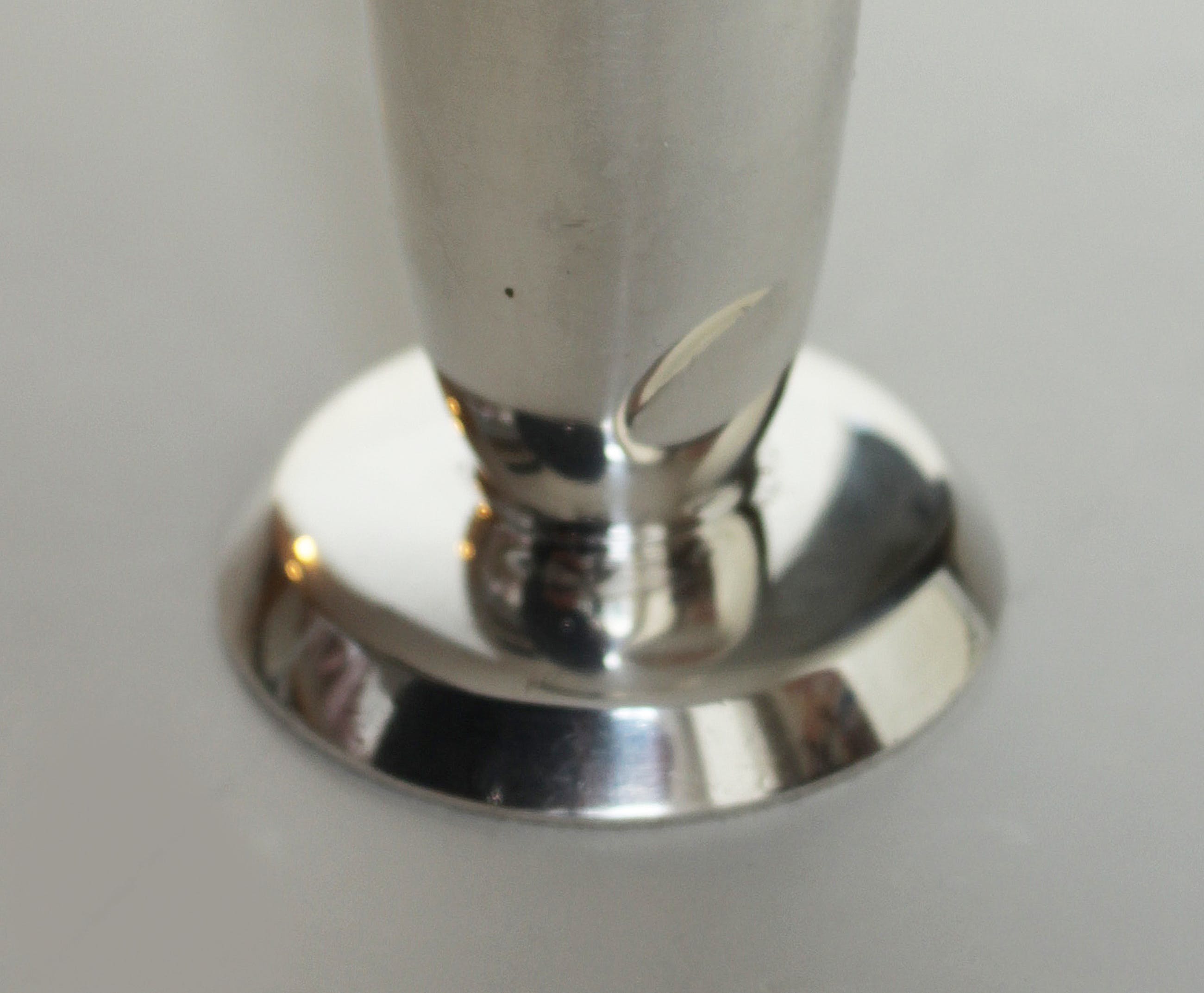 in goede gebruikte staat (lichte verpoetsing van het zilver en 1 vaasje heeft een deukje onder bij de voet, zie detailfoto)