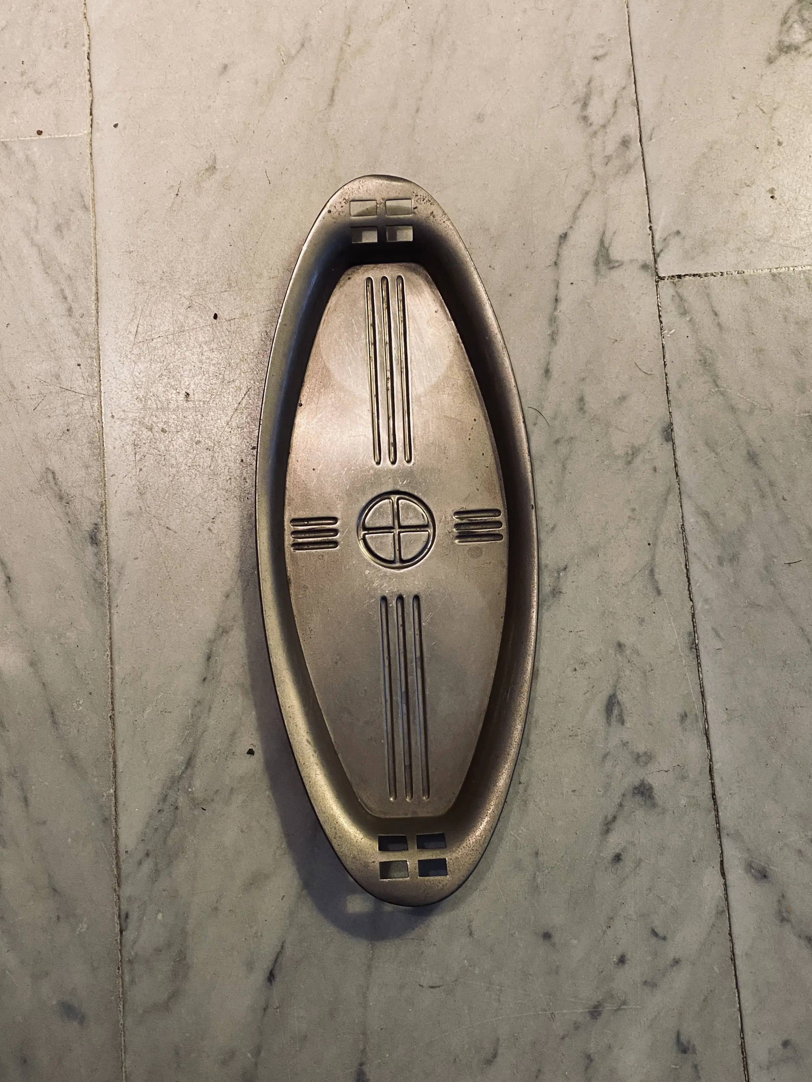 • Design: Geometrisch lijnenspel met centraal embleem en decoratieve uitsparingen