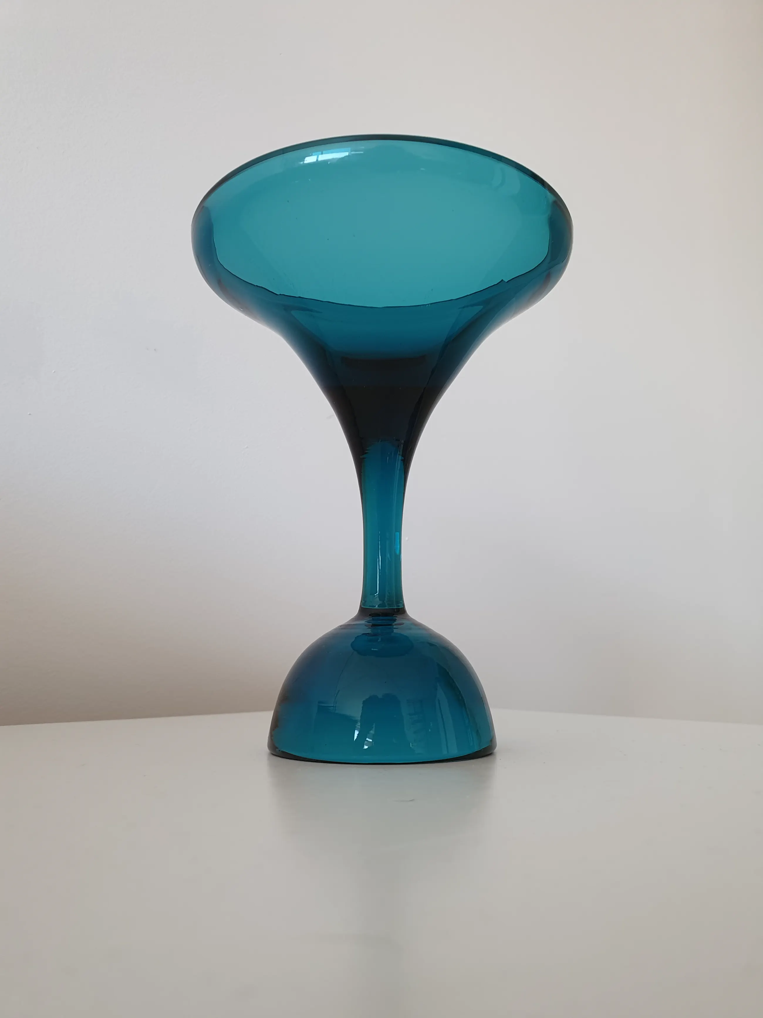 Dit is een prachtige vintage blauw-groene glazen kandelaar, ontworpen door Cari Zalloni voor WMF Duitsland, ongeveer 1970.