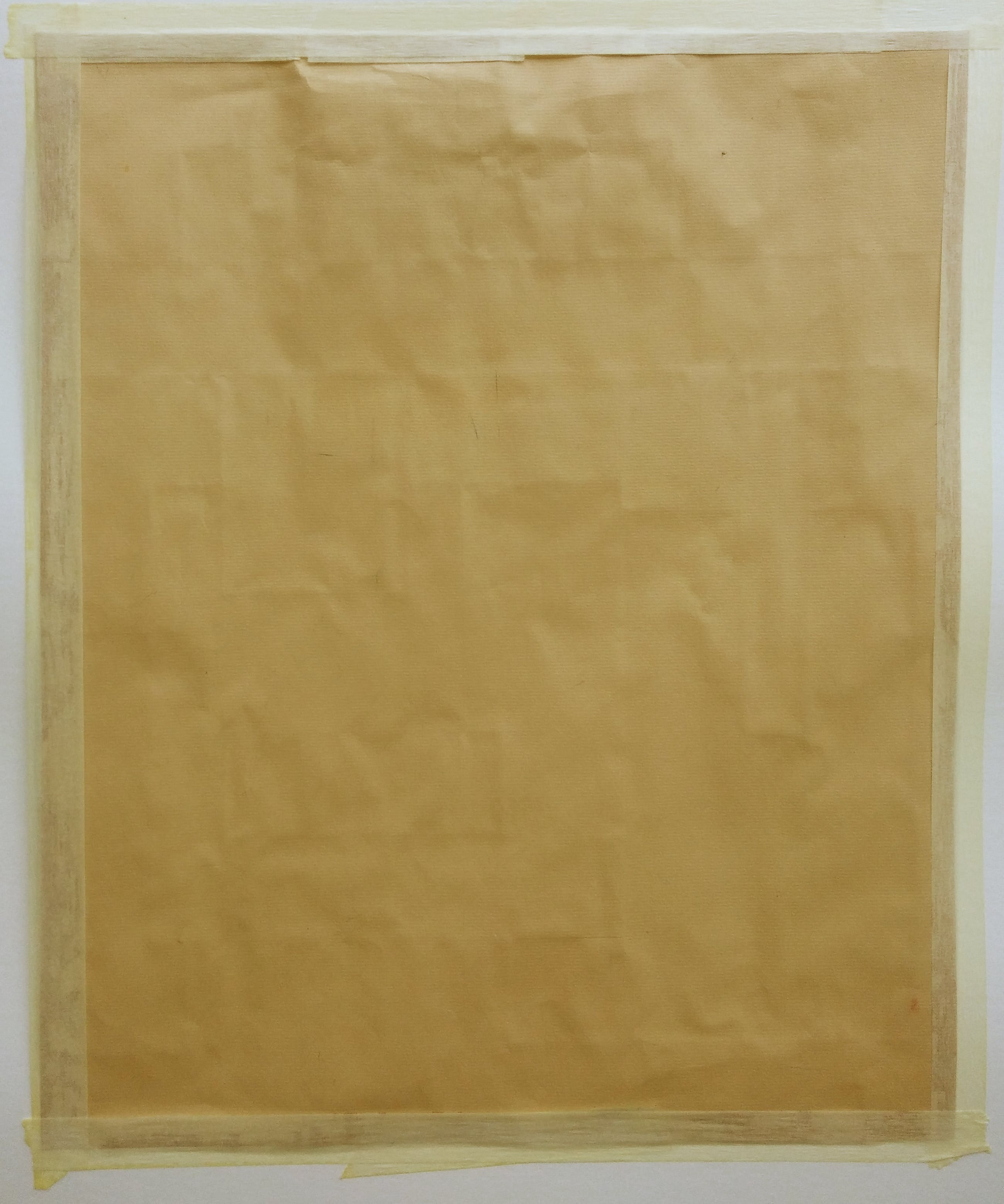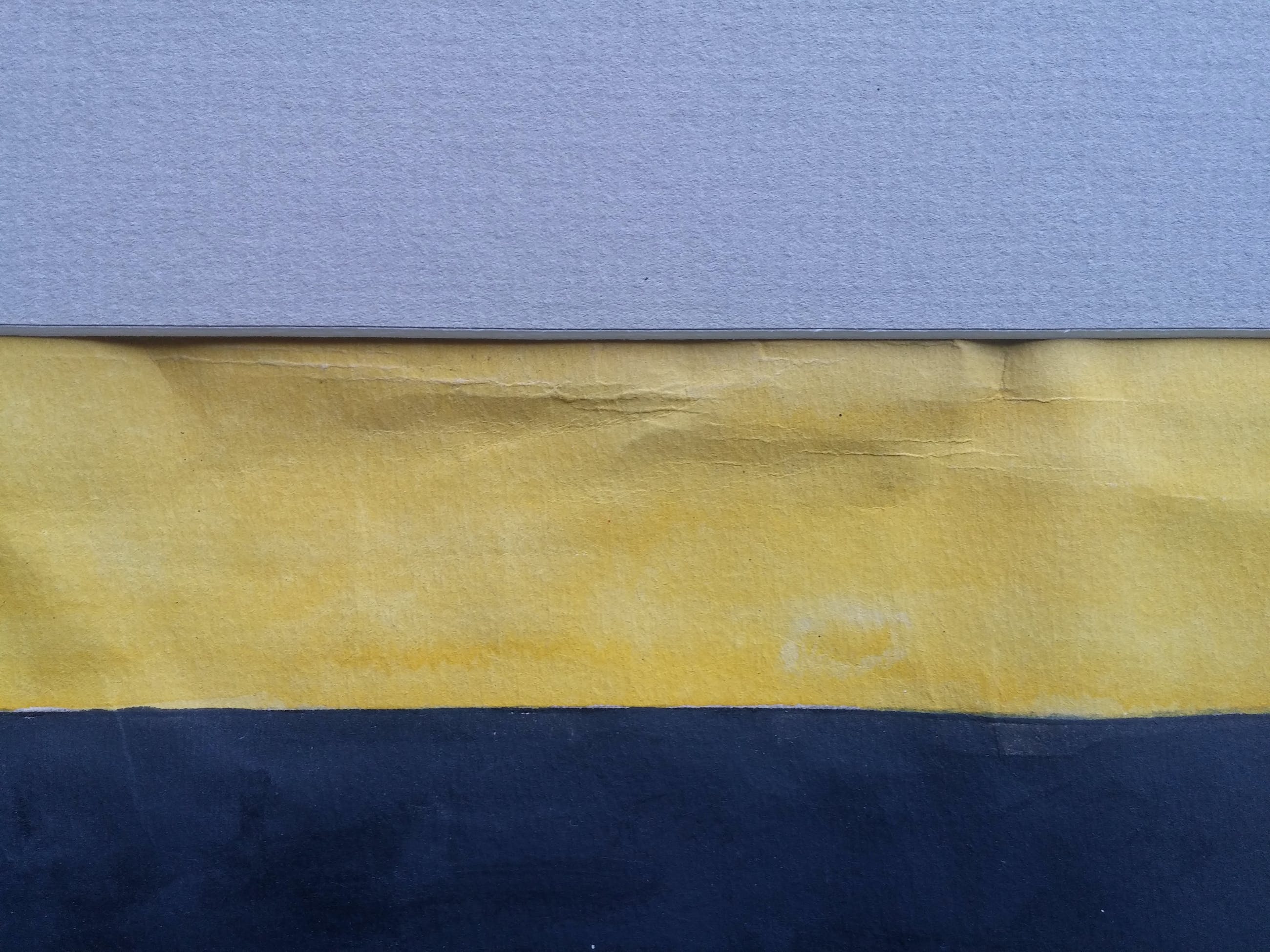 Papier hobbelt een beetje. Zit is passe-partout. Bij verzekerde verzending wordt de pp verwijderd en wordt het werk verzonden in een stevige koker. Afhalen verdient de voorkeur.