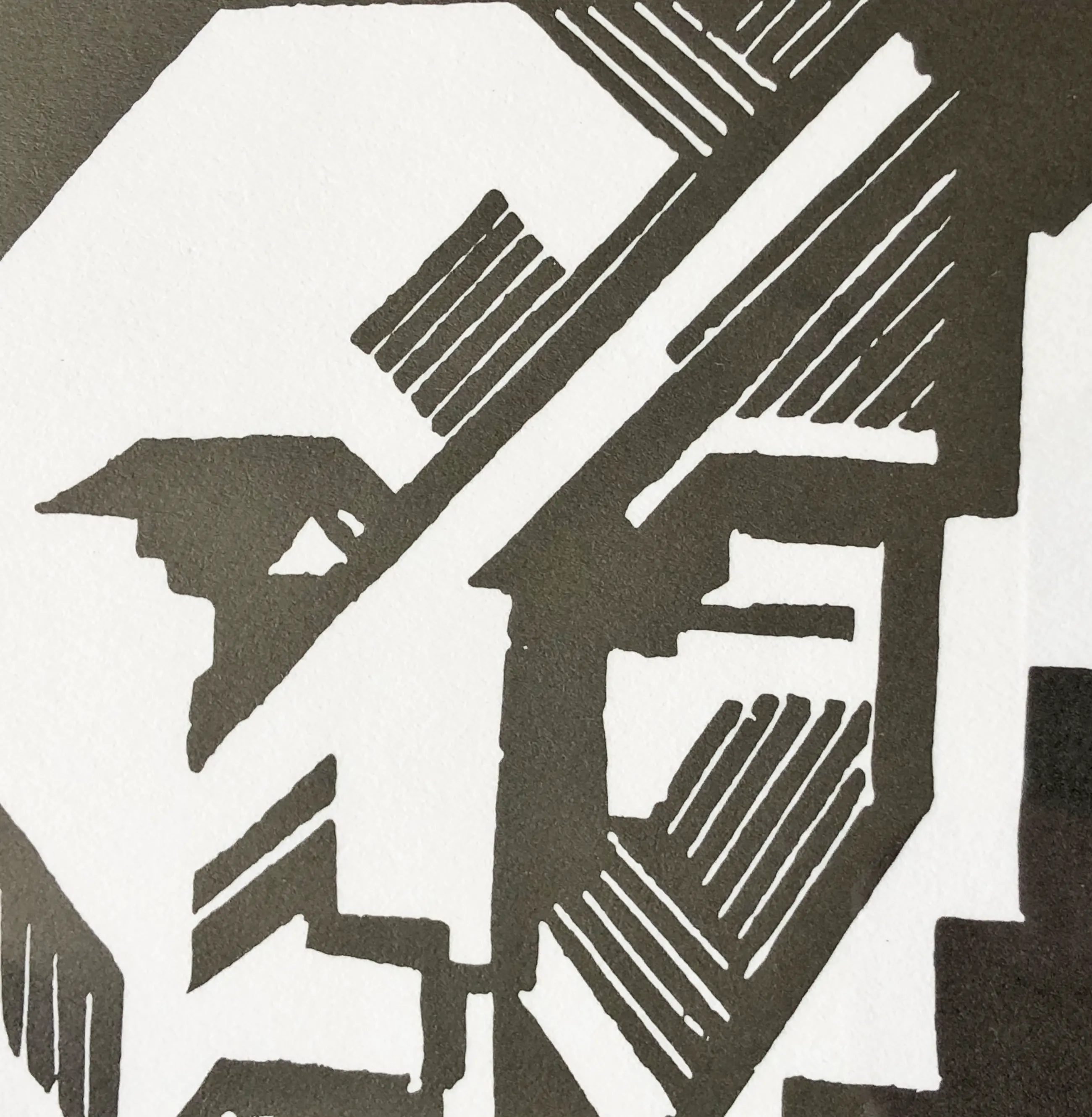 Linoleumsnede uit 1924. Hiervan geautoriseerde, genummerde en gesigneerde herdruk uit 1978 in een oplage van honderd.
