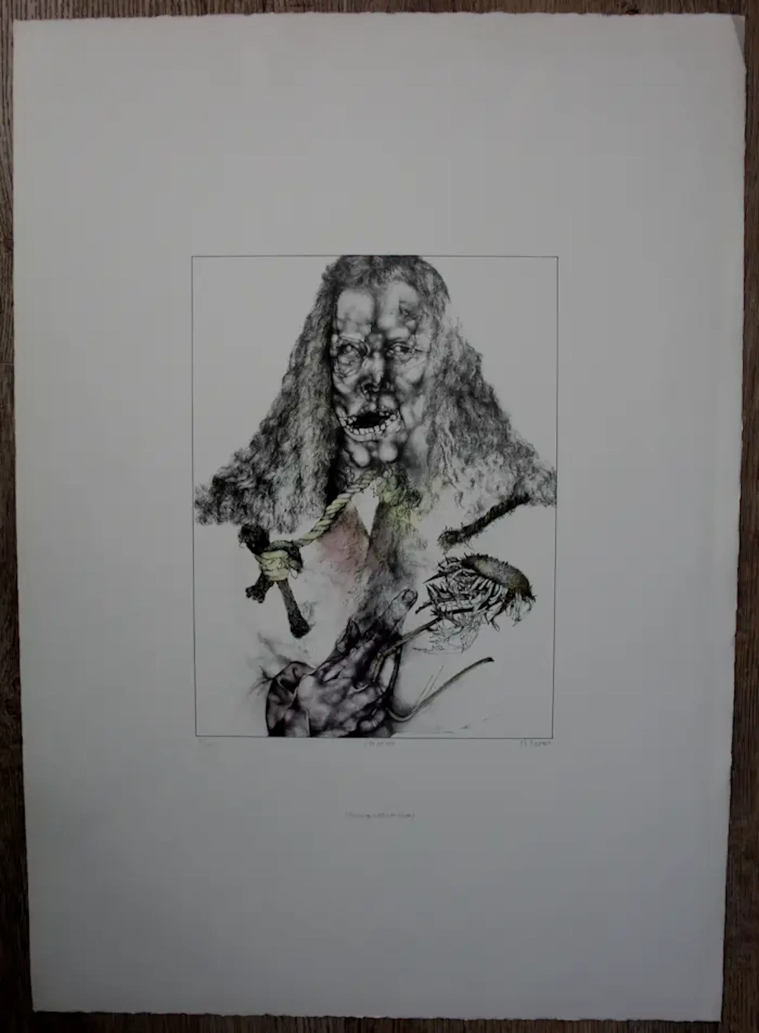 Litho van Petrick Wolfgang. Titel: Er ist tot. Nummer 60/100. Afmetingen blad H60 X b42.5 cm. Afmetingen voorstelling H28 X b21. Het werk is rechtsonder gesigneerd door de kunstenaar. De authenticiteit van het aangeboden werk wordt volledig gegarandeerd. Een certificaat van echtheid kan, op aanvraag worden gemaild.