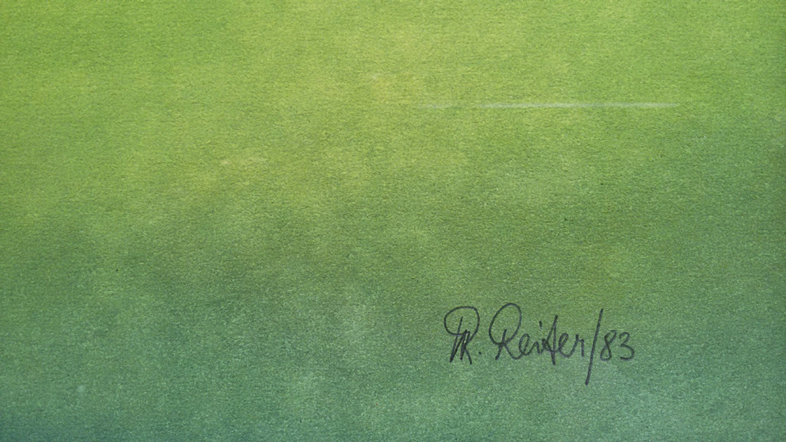 Kleurrijk werk van deze onbekende Duitse kunstenaar. Onbekende techniek (waarschijnlijk aquarel), gesigneerd en gedateerd (83) rechtsonder, achter glas en in houten lijst. In goede conditie.