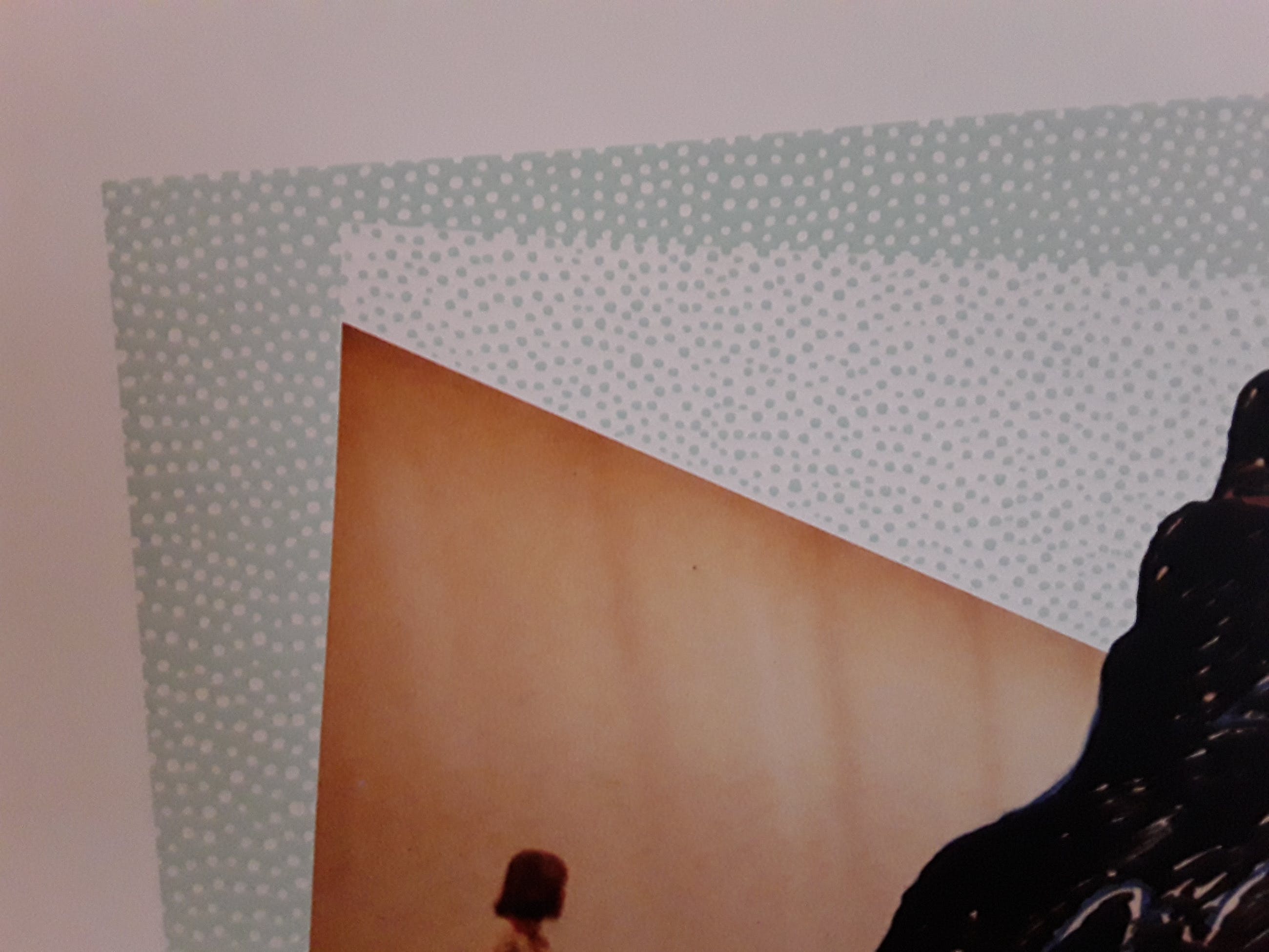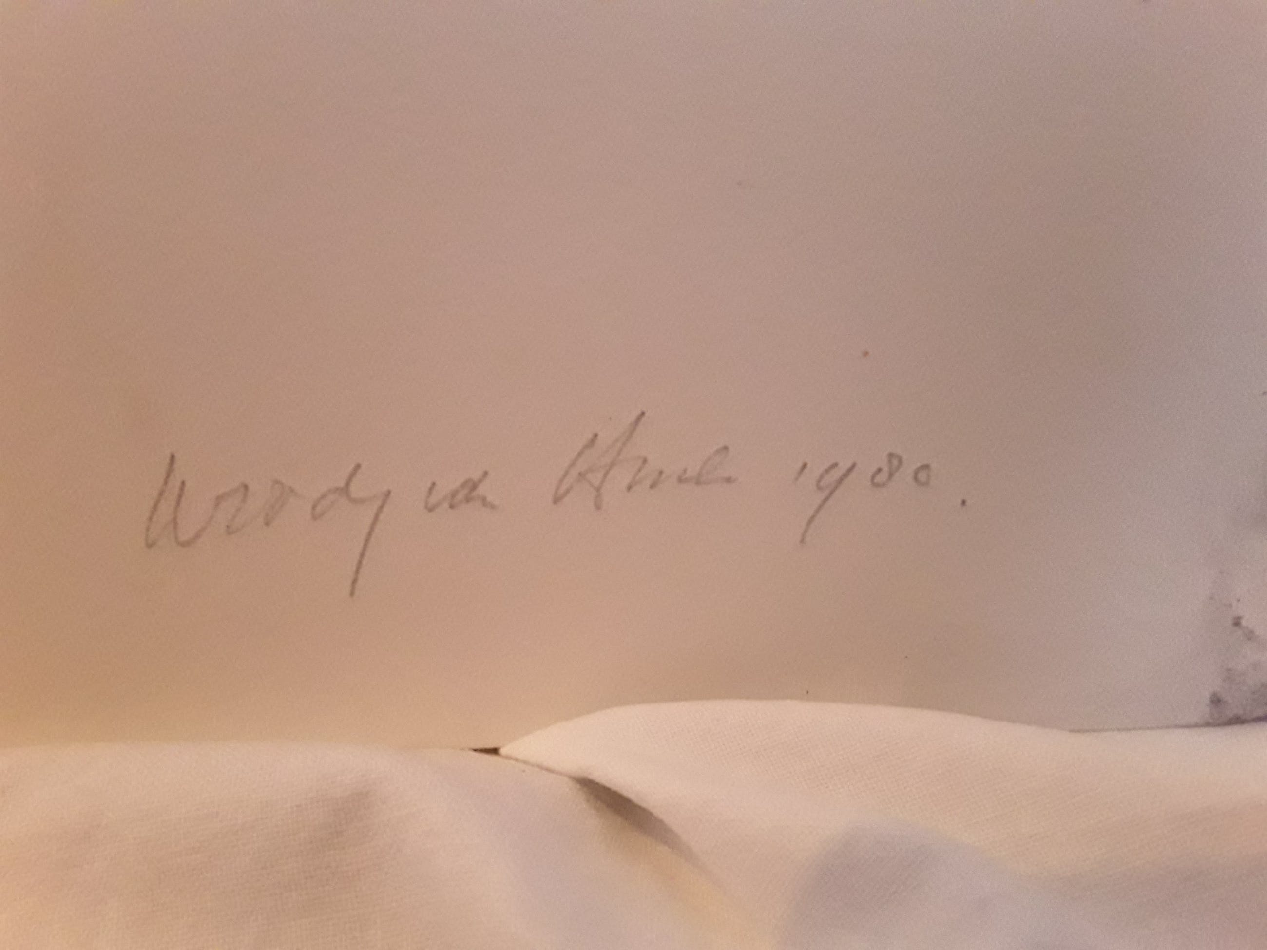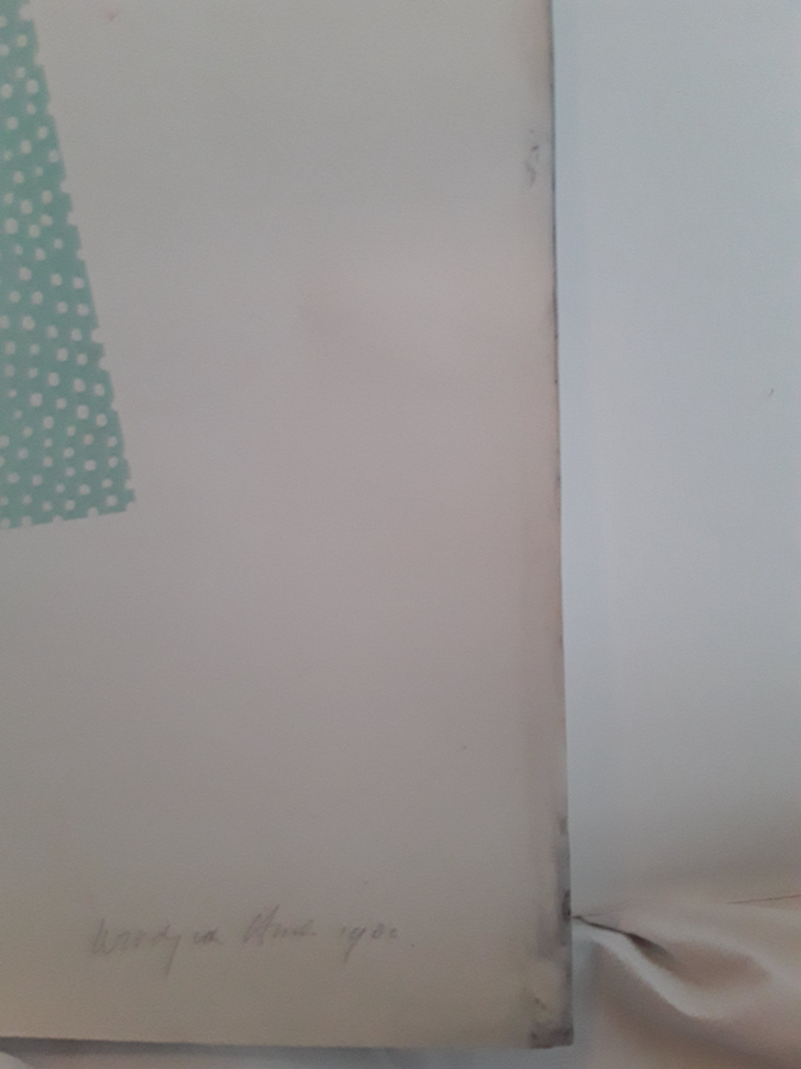 Lichte vlekjes en rechts zijkant in het wit is moezelig , met inlijsten valt het onder het passepartoe ,zie foto,s