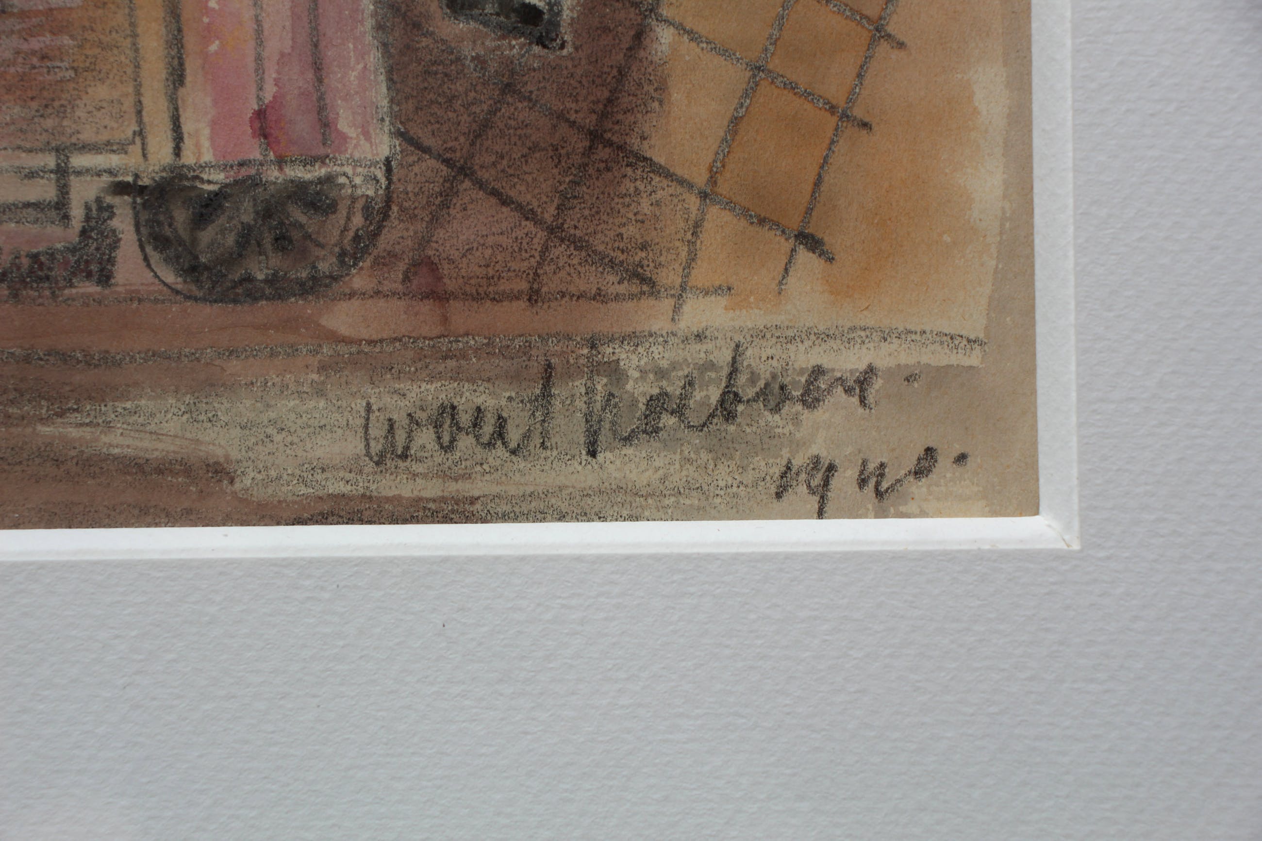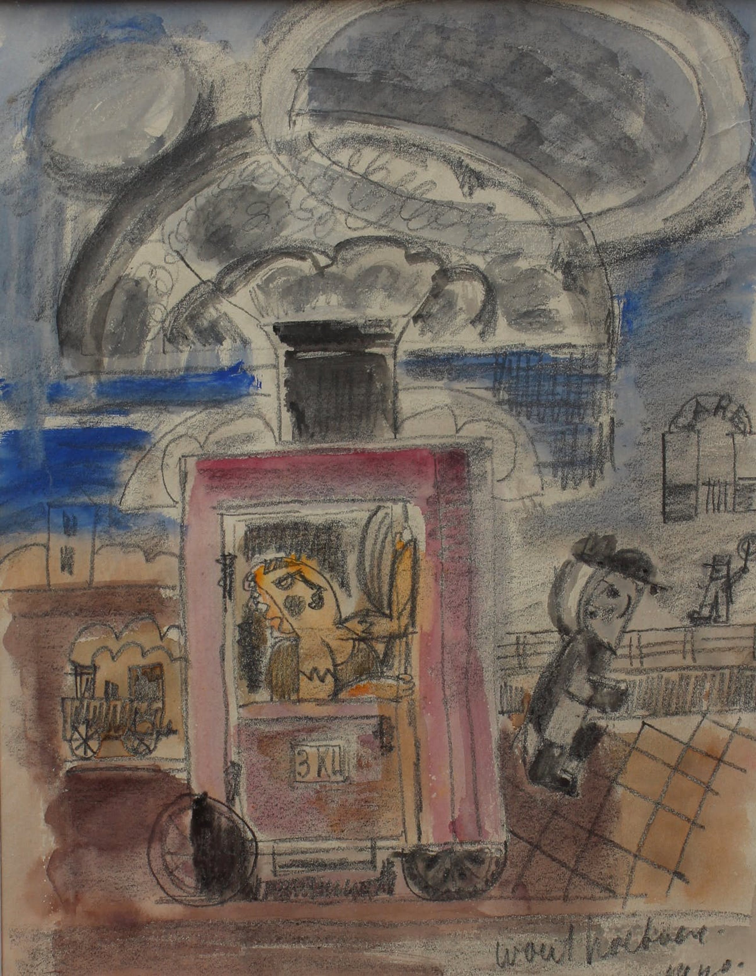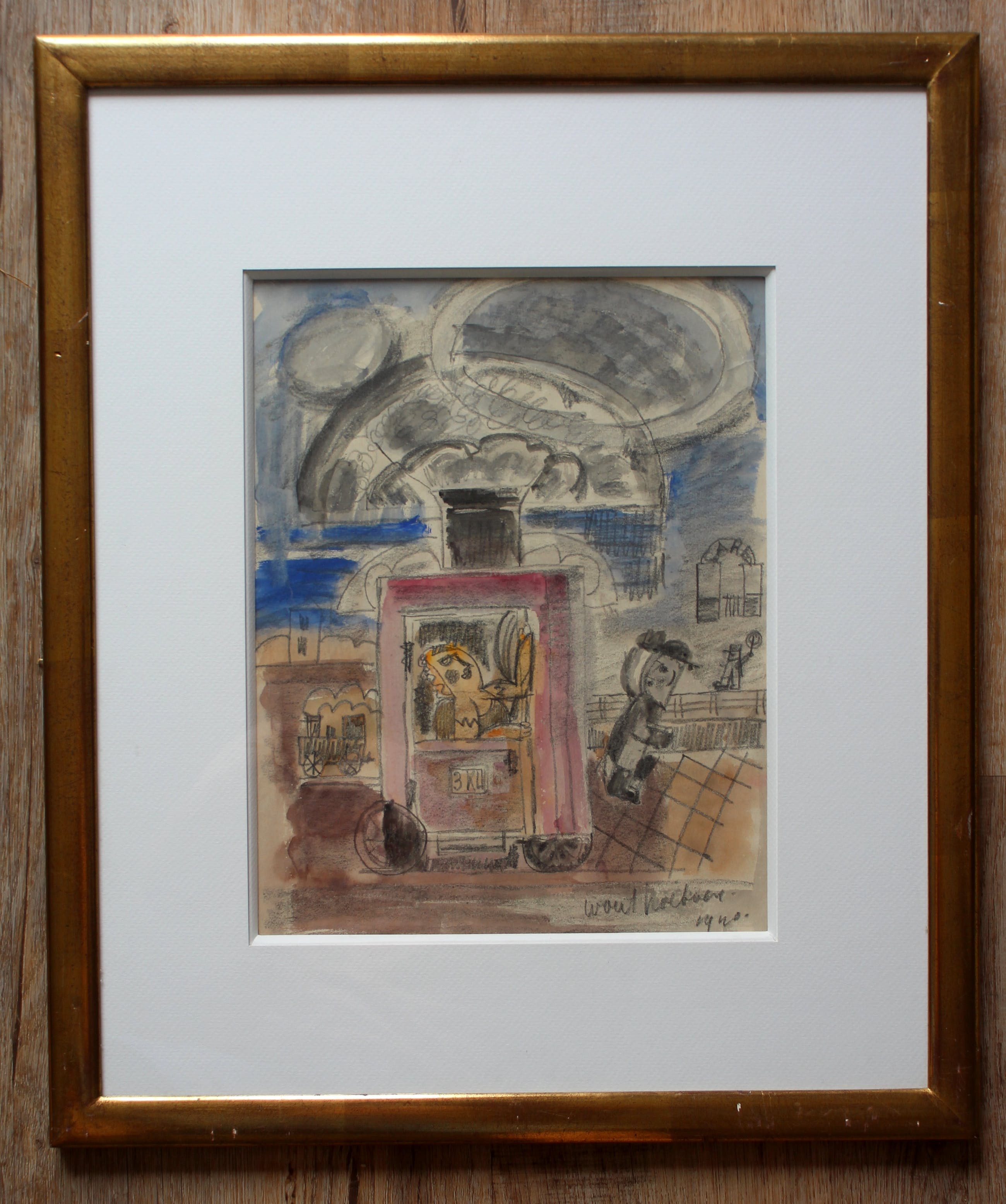 Ingelijst Aquarel/potlood werk van Wout Hoeboer. Titel: Het station. Jaar: 1940. Afmetingen incl lijst: H44 x b52cm. Afmetingen voorstelling: H31 x b24cm. Het wek is rechtsonder, met potlood, gesigneerd. De authenticiteit van het aangeboden werk wordt volledig gegarandeerd. Een certificaat van echtheid kan, op aanvraag, worden gemaild.