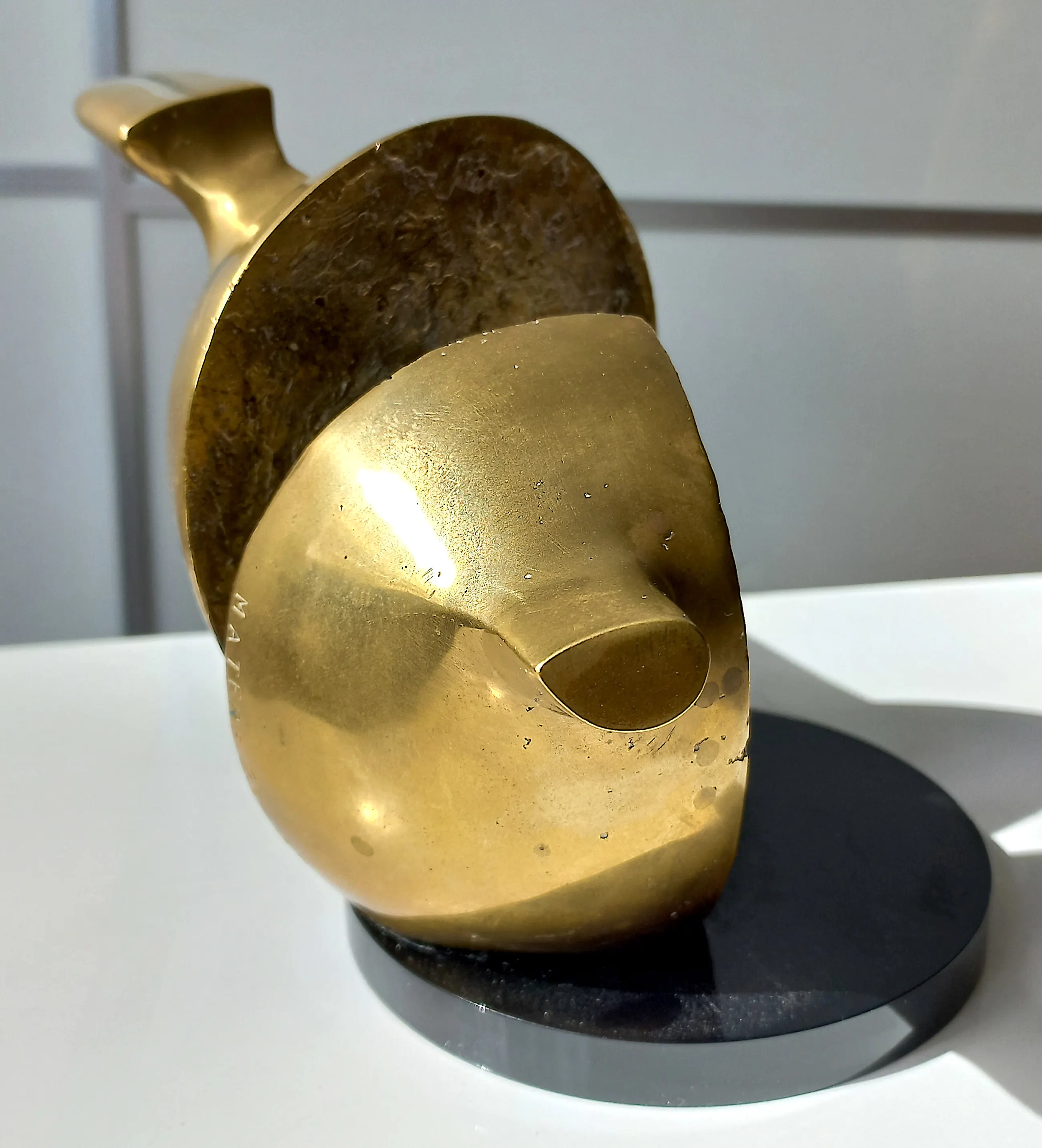 Zeer mooie, karakteristieke sculptuur van Wout Maters. Bronzen beeld, gesigneerd en genummerd (25/32), gemonteerd op kunststof sokkel. Gewicht rond de 2kg. In zeer goede conditie.