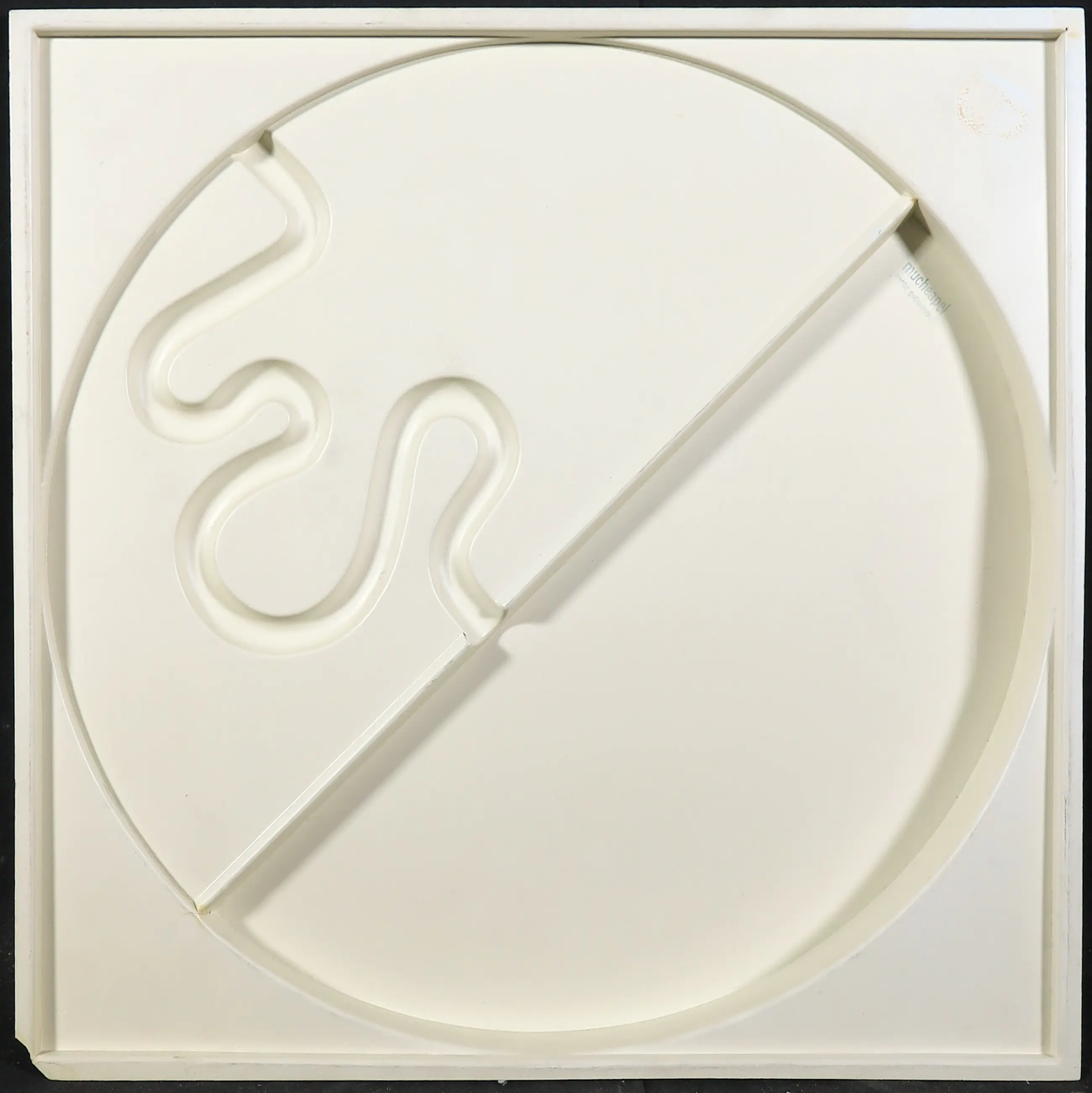 Redelijk tot goede conditie, met enkele mankementen. Het hoekje rechtsonder is afgebroken, waardoor een gedeelte van het signatuur is weggevallen. Het werk oogt een beetje vuil. Hier en daar oppervlakkige slijtage, zoals op de rond van de halve circkel en bovenop de 'slang' rechtsboven. | |||||||||||