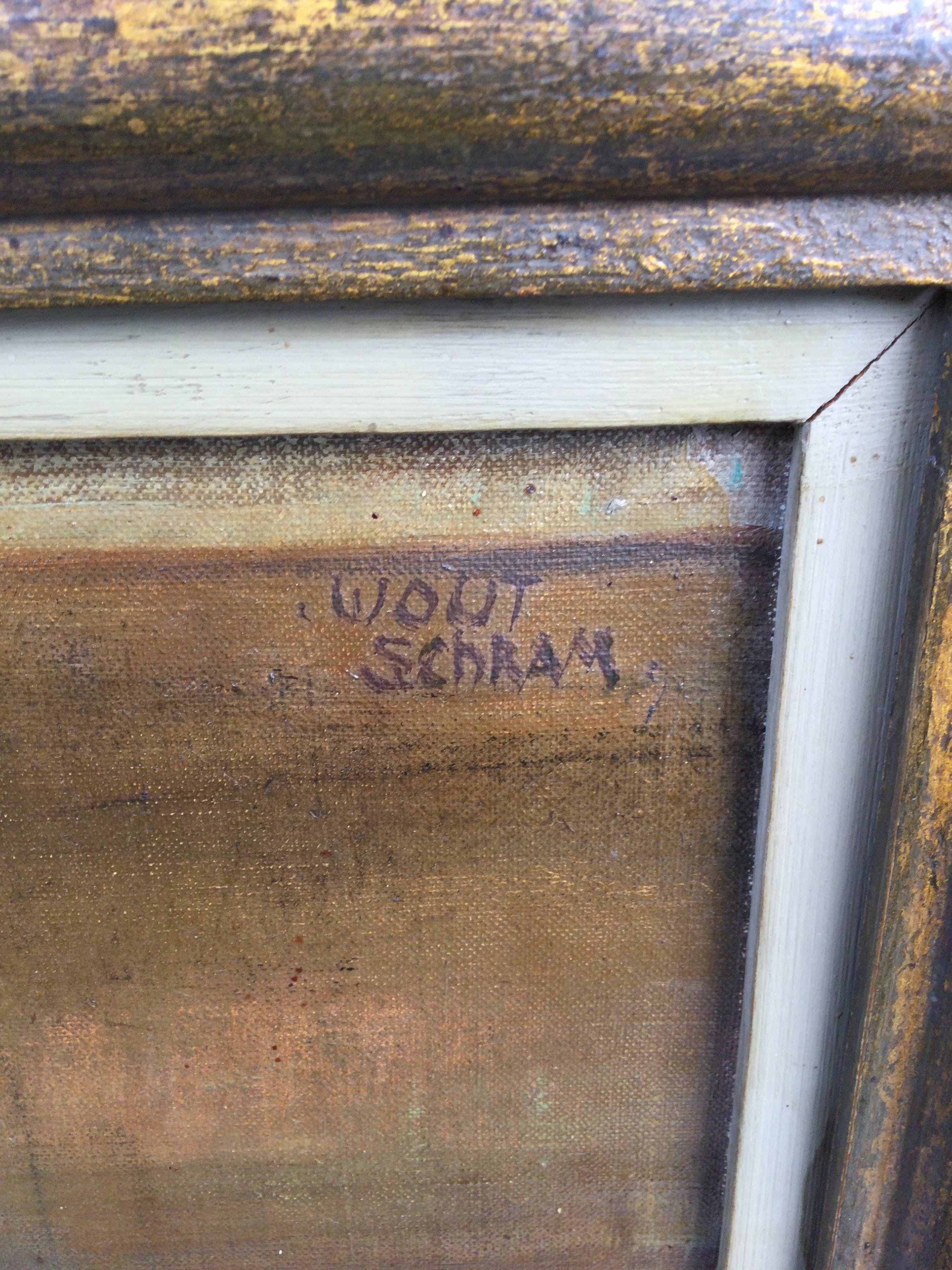 | Doek bevat oppervlaktevuil en verkleurde vernis door de tijd, de lijst bevat oppervlaktevuil en slijtschade door de tijd | |