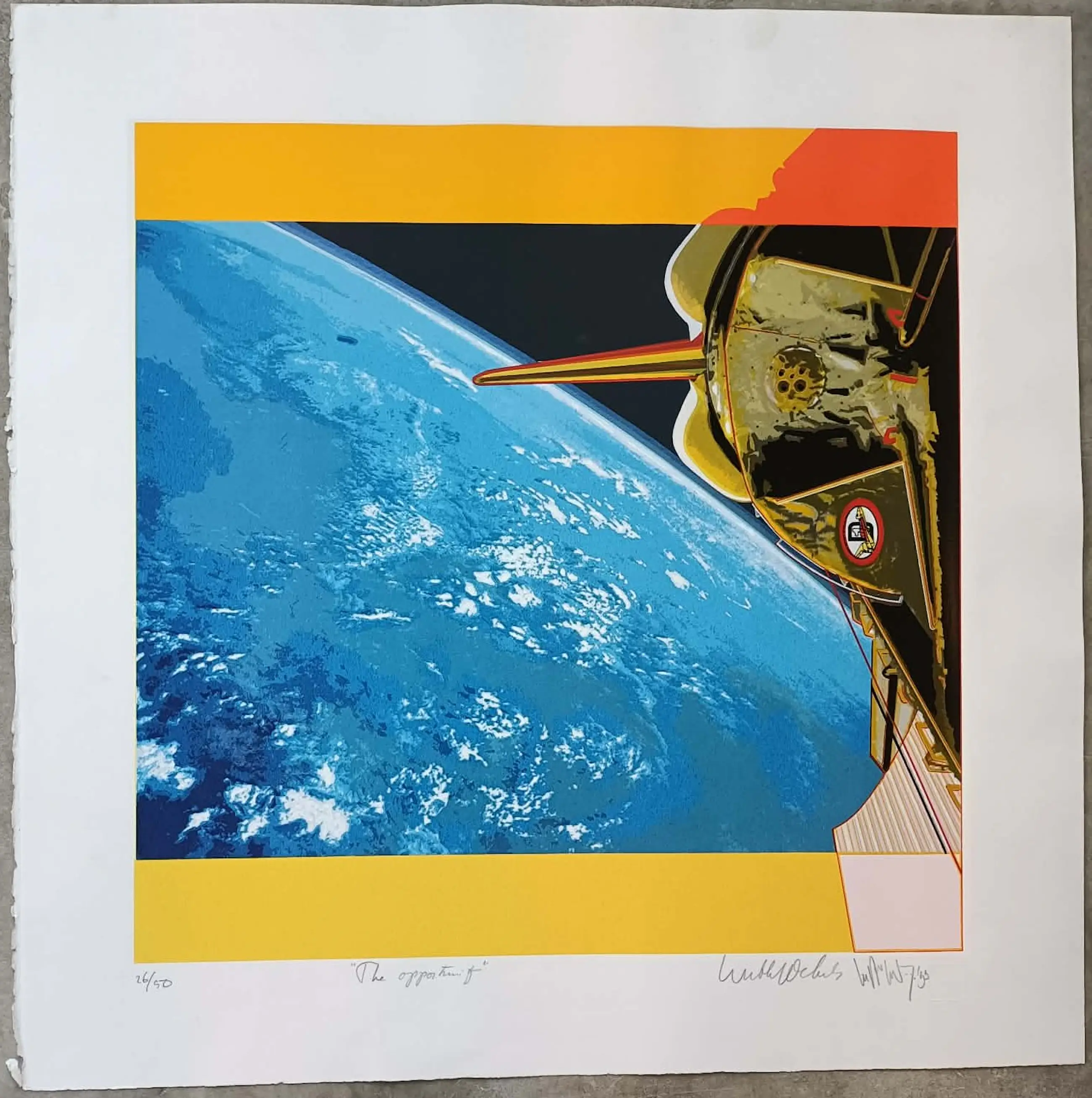 Unieke samenwerking tussen de meester van de Nederlandse zeefdrukkunst en astronaut Wubbo Ockels. In totaal zijn en vier verschillende zeefdrukken gemaakt om het jubileum van Ockels ruimtevlucht te markeren, dit is ´The Opportunity´. De zeefdruk is door zowel Van der Vet als Ockels gesigneerd. Wordt in koker verstuurd.