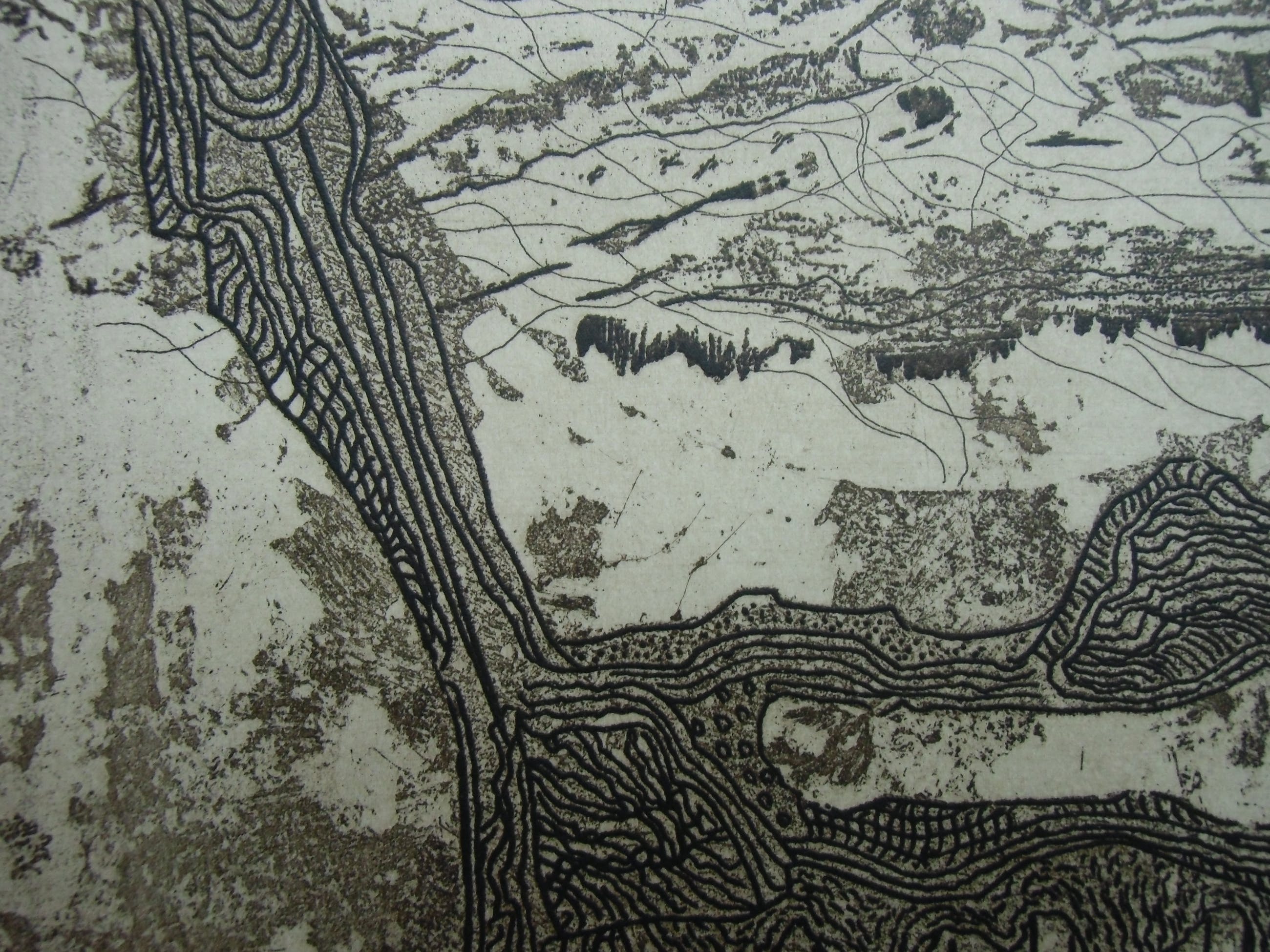 Deze ets met de titel Ontmoeting is gedrukt op Simili Japon 225 grs. door Piet Clement. Afmetingen van het blad: 42 x 32 cm. Jaar 1977. Oplage 35 plus 9 proefdrukken. Onberispelijke staat.