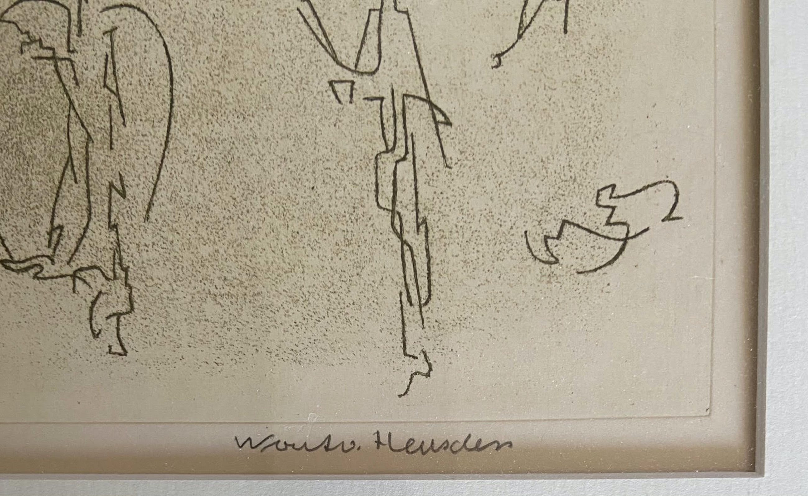 Twee mooi ingelijste etsen van de hand van Wout van Heusden. Beide in potlood gesigneerd. Het grote werk is 24 cm x 34 cm van formaat het kleinere 23 cm x 20 cm.