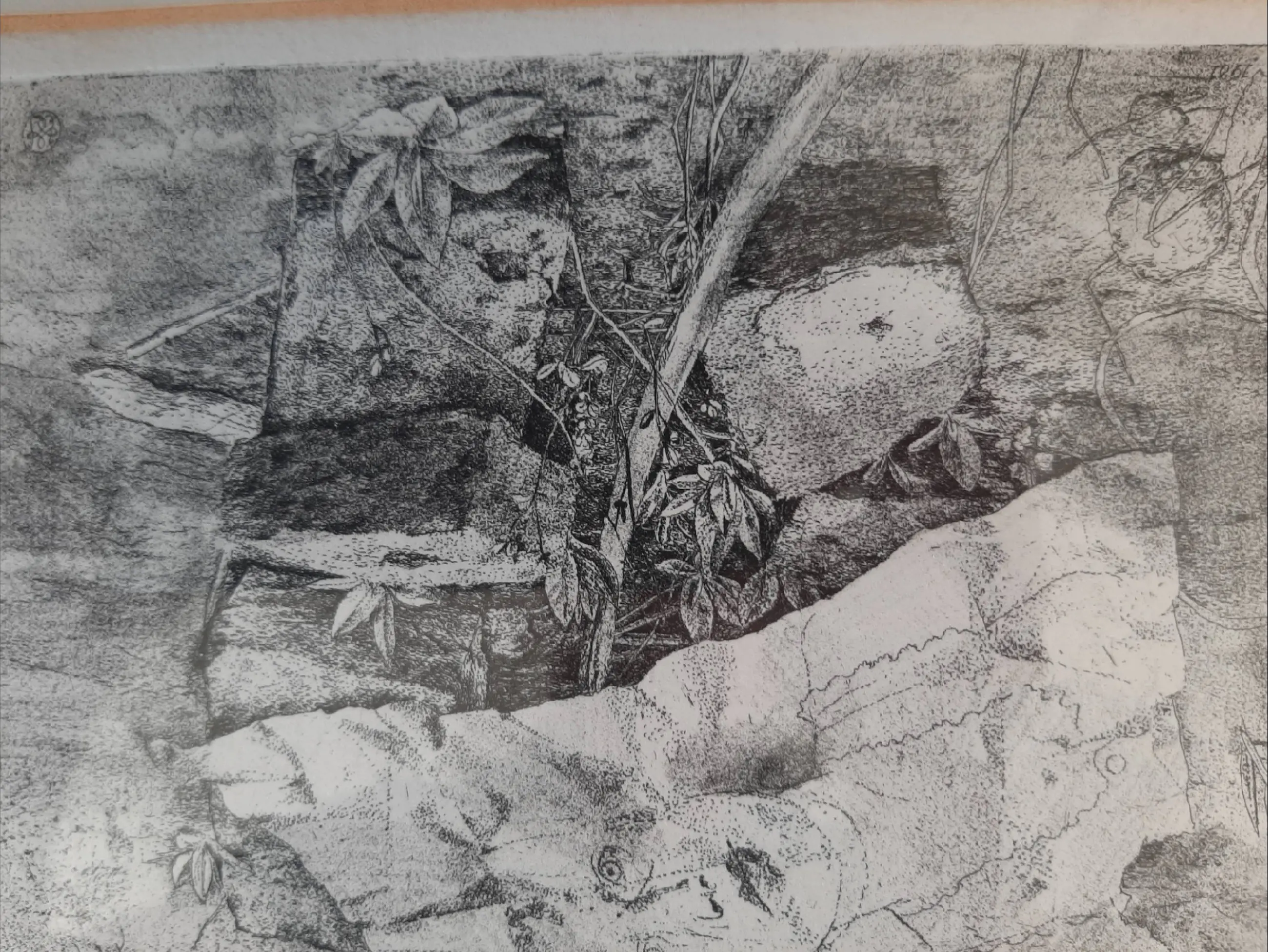 Beeltenis van stuk papier met getekend portret dat op de grond ligt.