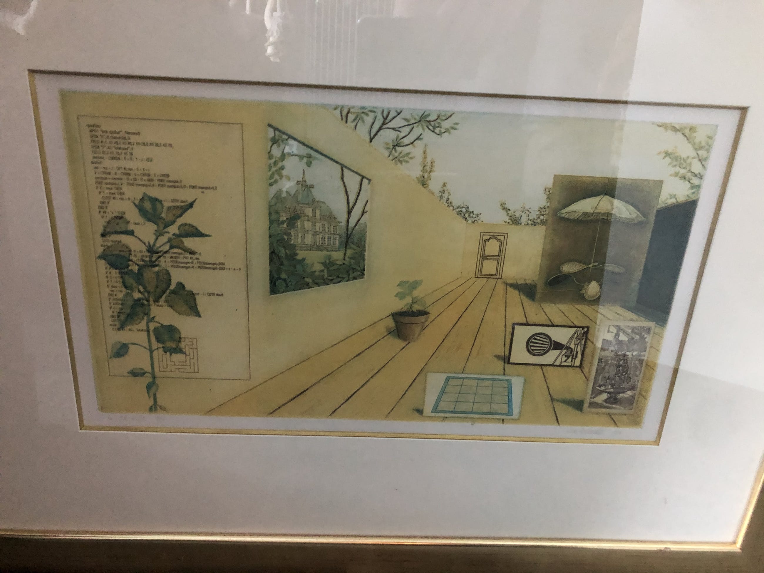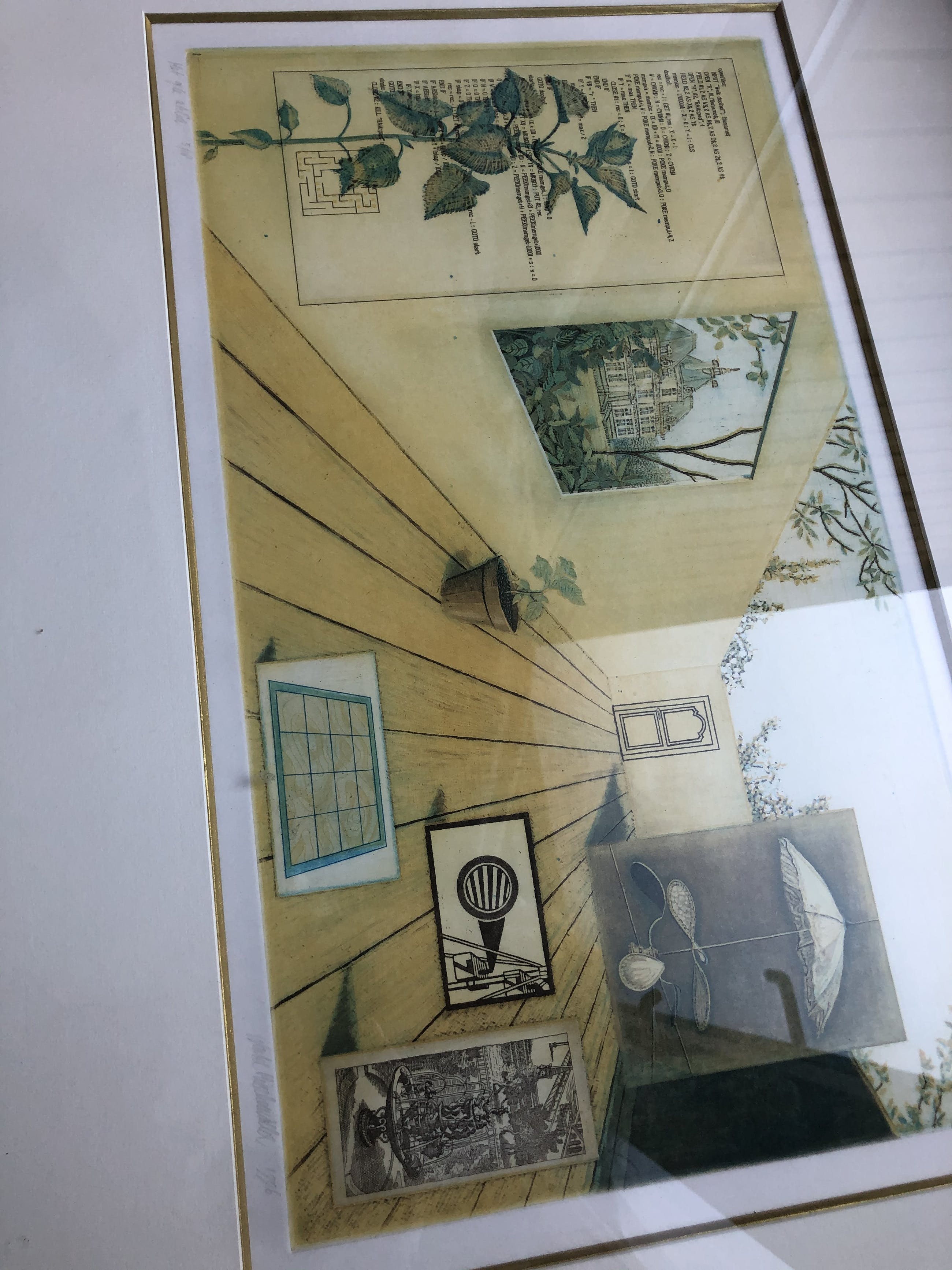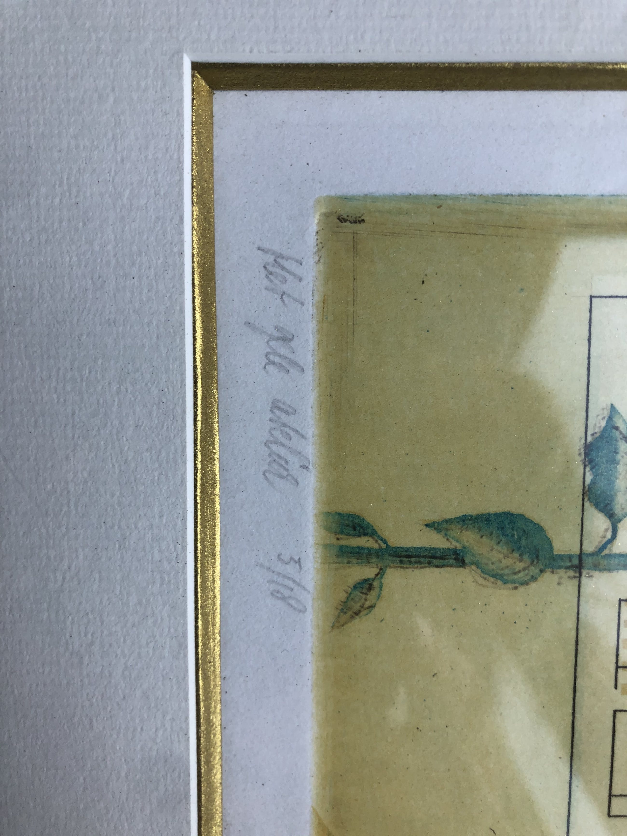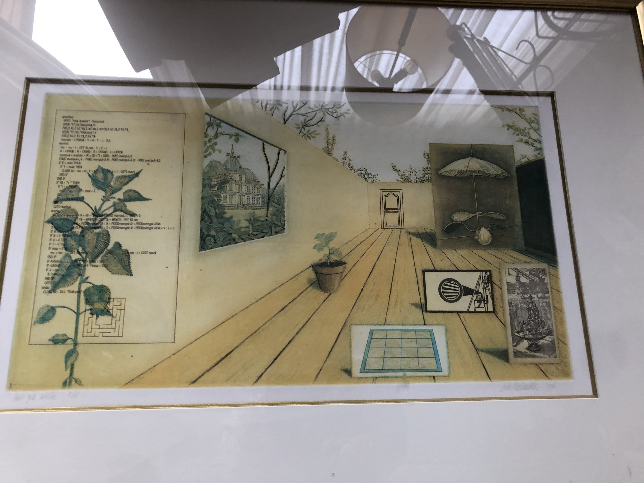 Kunstwerk is in zeer goed staat achter glasplaat, lijstrand is beschadigd.
