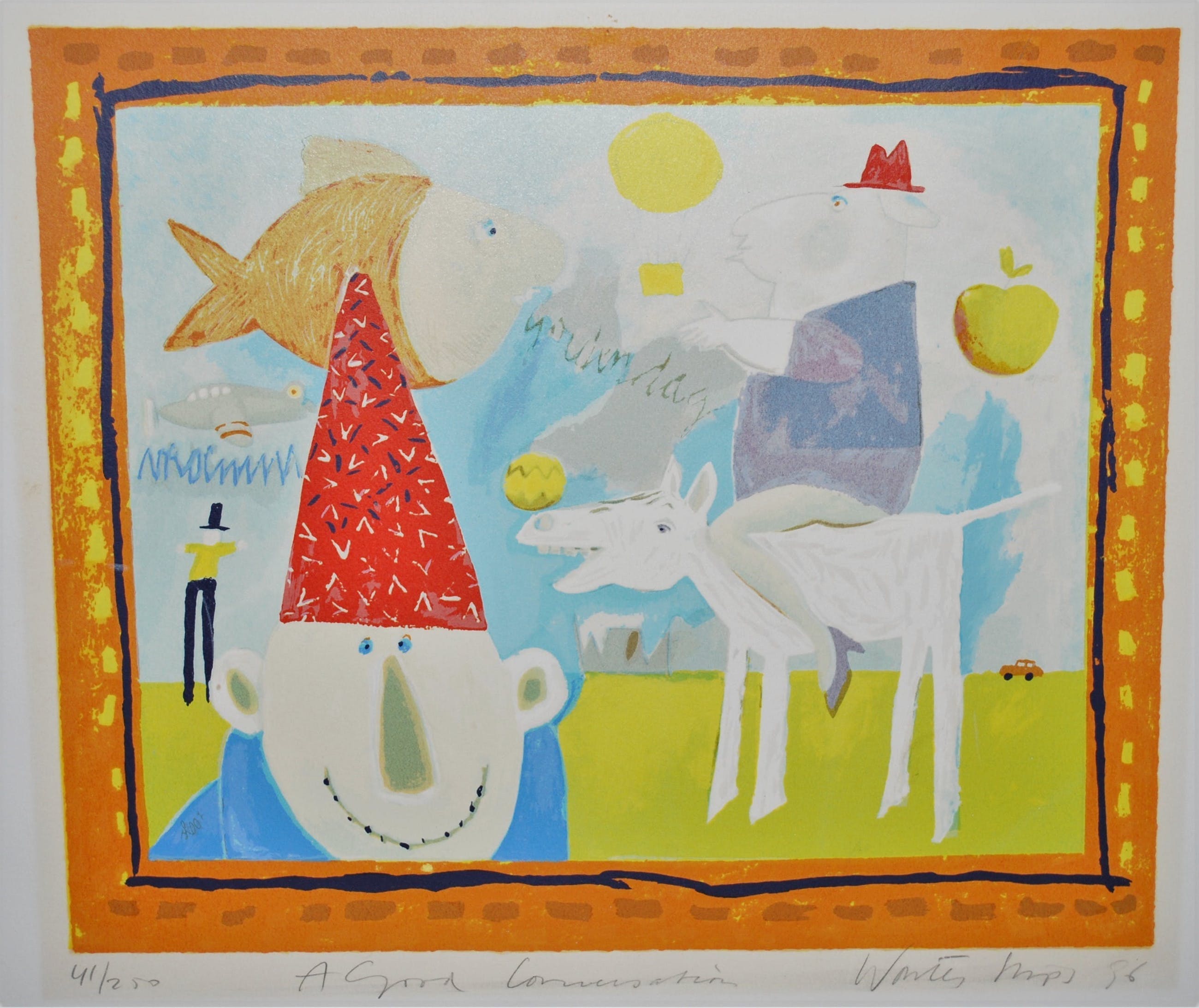 Gezeefdrukt via 26 drukgangen door meesterdrukker Wout van der Vet, gesigneerd aan de achterzijde.